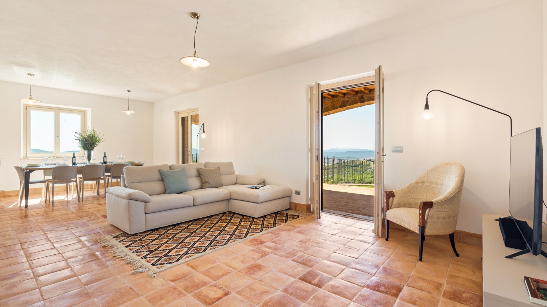 Casale Grottini, ganz aus lokalem Stein gebaut, ist das Ergebnis einer kürzlichen, sorgfältigen und geschickten Renovierung, bei der der Charme und die Besonderheiten des Hauses in vollem Respekt vor der lokalen Tradition bewahrt wurden. Es wurde eine einladende, familiäre Atmosphäre geschaffen, mit zeitgemäßen stilistischen und logistischen Entscheidungen, die sowohl auf Komfort als auch auf Nachhaltigkeit ausgerichtet sind.