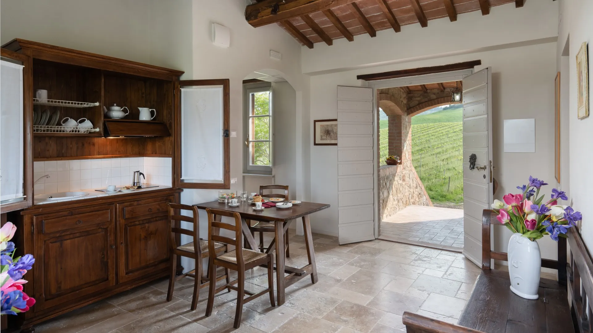 Le Colombelline befindet sich in einer privilegierten Lage, umrahmt von einer außergewöhnlichen Landschaft mit Weinbergen: auf der einen Seite Montepulciano, auf der anderen Montefollonico und Pienza mit dem malerischen Val di Chiana im Hintergrund und mit dem Apennin am Horizont. Jahrhunderts als Bauernhaus erbaut, das dem Anbau von Getreide, Olivenbäumen und Weiden gewidmet war, haben die jüngsten Restaurierungsarbeiten, die das Ergebnis einer sorgfältigen und geschickten Renovierung sind, dem Haus Charme und Eigenschaften verliehen, die die lokale Tradition mit bedeutenden zeitgenössischen architektonischen Entscheidungen verbinden und es ideal für den Urlaub unserer Gäste machen, sei es mit der Familie, mit Freunden oder zu zweit.
