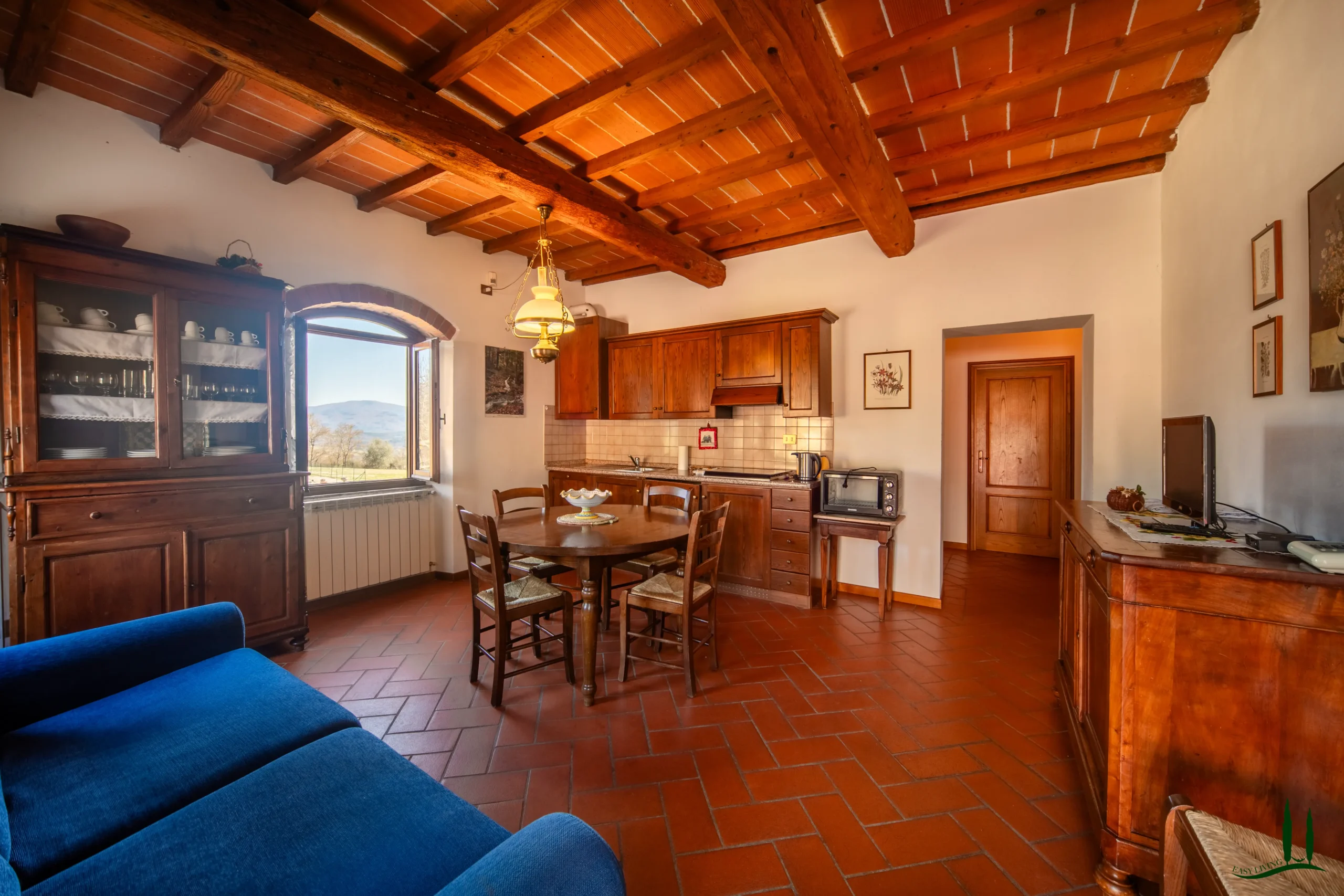 Jedes der neun Apartments ist im klassischen toskanischen Stil gehalten, mit Terrakottaböden, freiliegenden Holzbalken und warmen, einladenden Innenräumen. Alle Wohnungen sind mit Fliegengittern, voll ausgestatteten Küchen und unabhängige Heizsysteme (wird separat nach Verbrauch abgerechnet). Wöchentlicher Wäschewechsel, Energie- und Wasserversorgung sowie Babybetten sind im Aufenthalt inbegriffen.