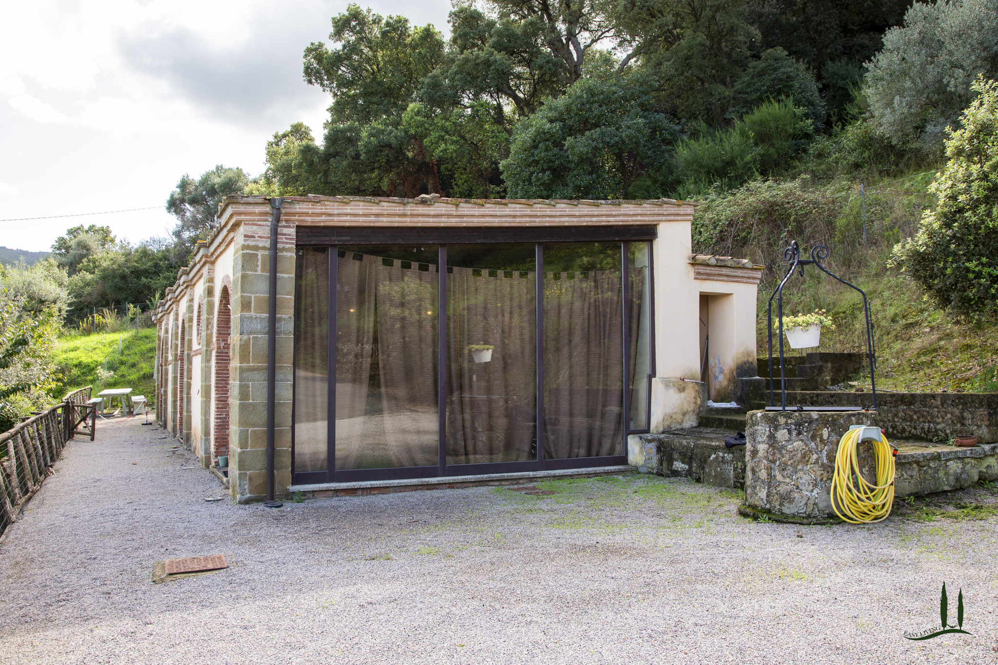 Das Anwesen umfasst auch ein landwirtschaftliches Gebäude von 58 qm mit einem 25 qm großen Portikus.