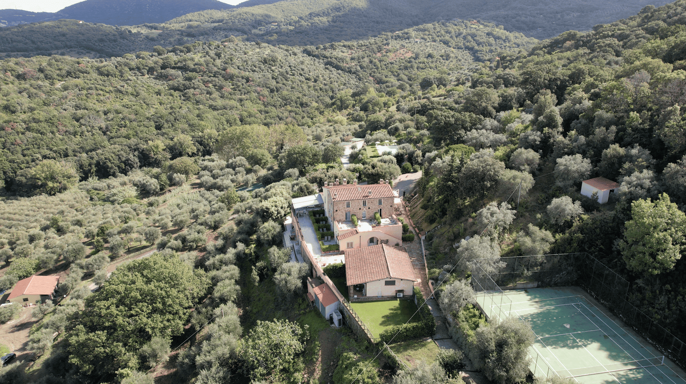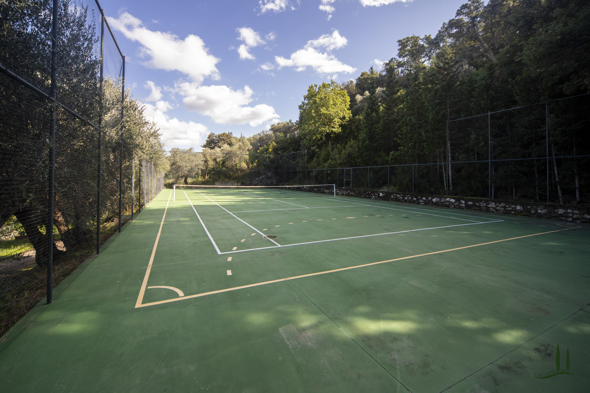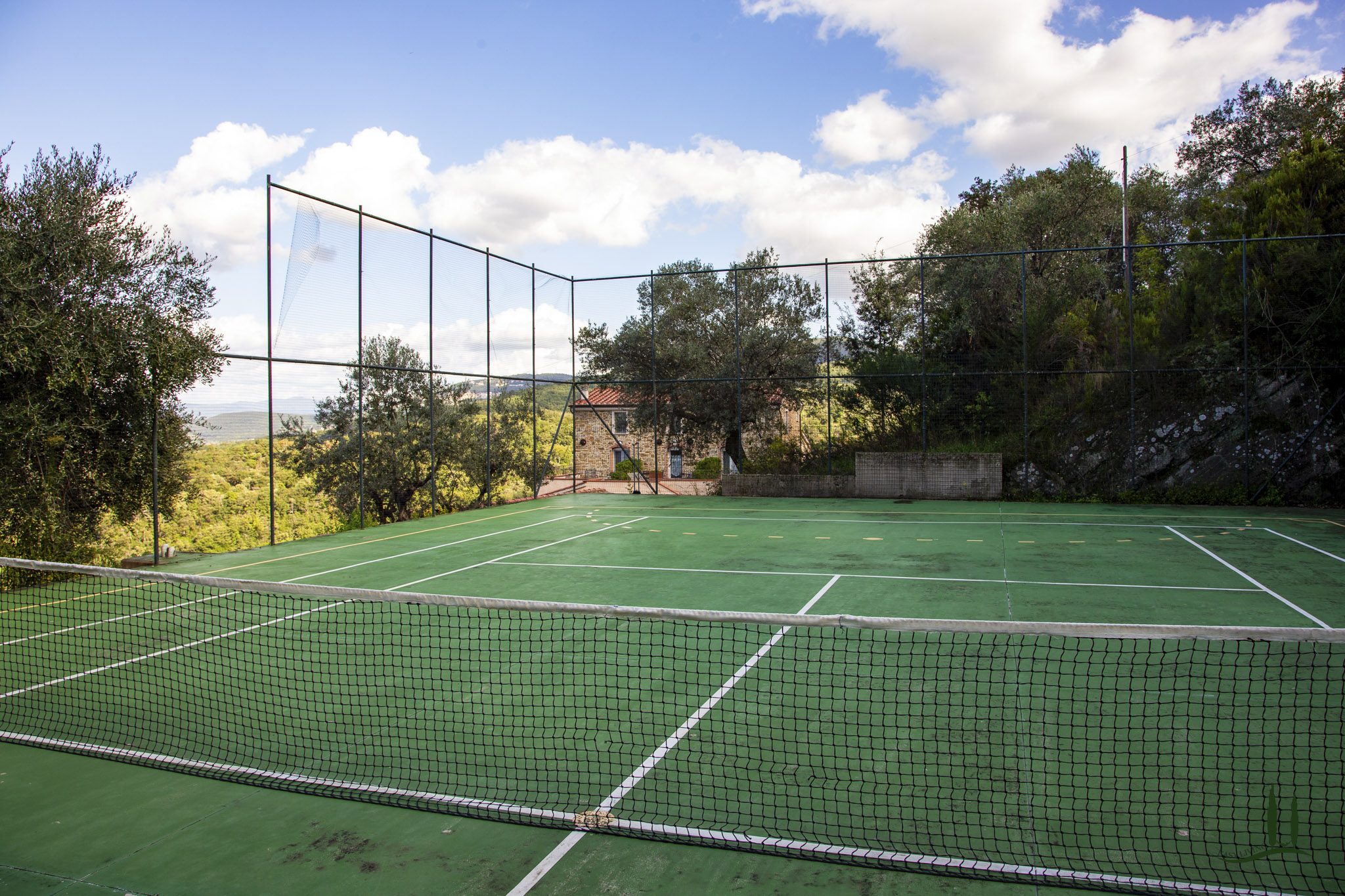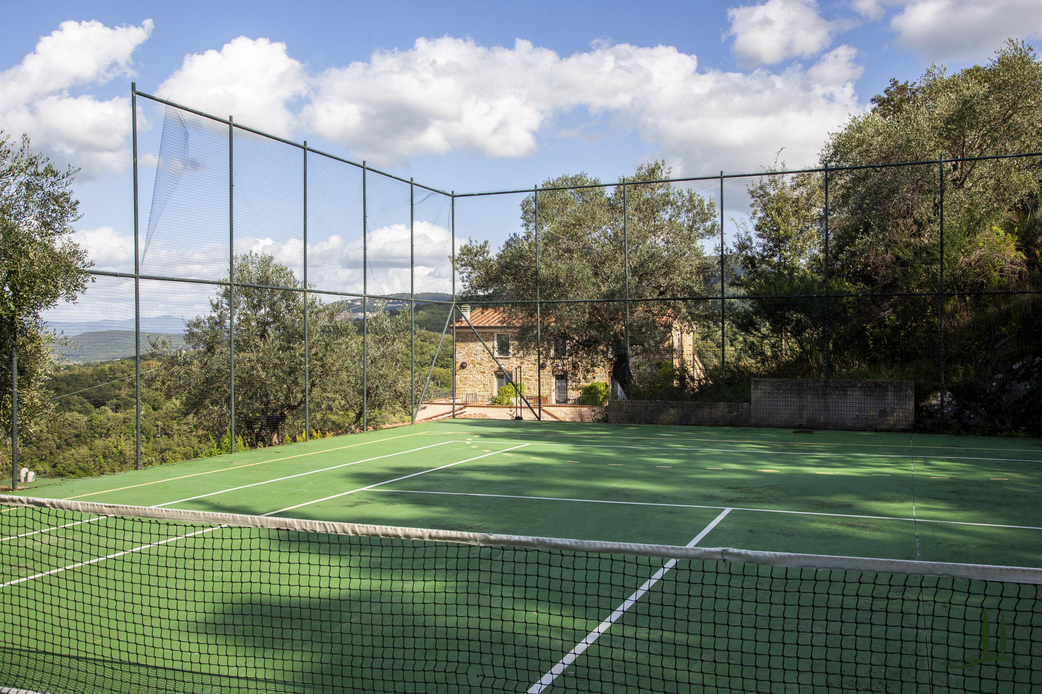 Das Anwesen ist so konzipiert, dass es das ganze Jahr über Komfort und Wohlbefinden bietet. Es verfügt über einen 100 m² großen, automatisierten Swimmingpool mit Panoramablick, der von einem englischen Rasen mit freiem Blick auf die sanften Hügel umgeben ist, sowie über einen privaten, umzäunten Tennisplatz, der auch für Fußball und Basketball geeignet ist.