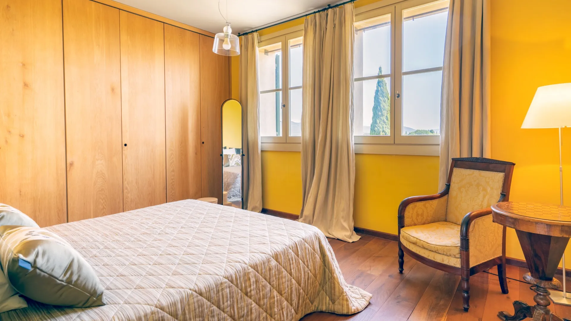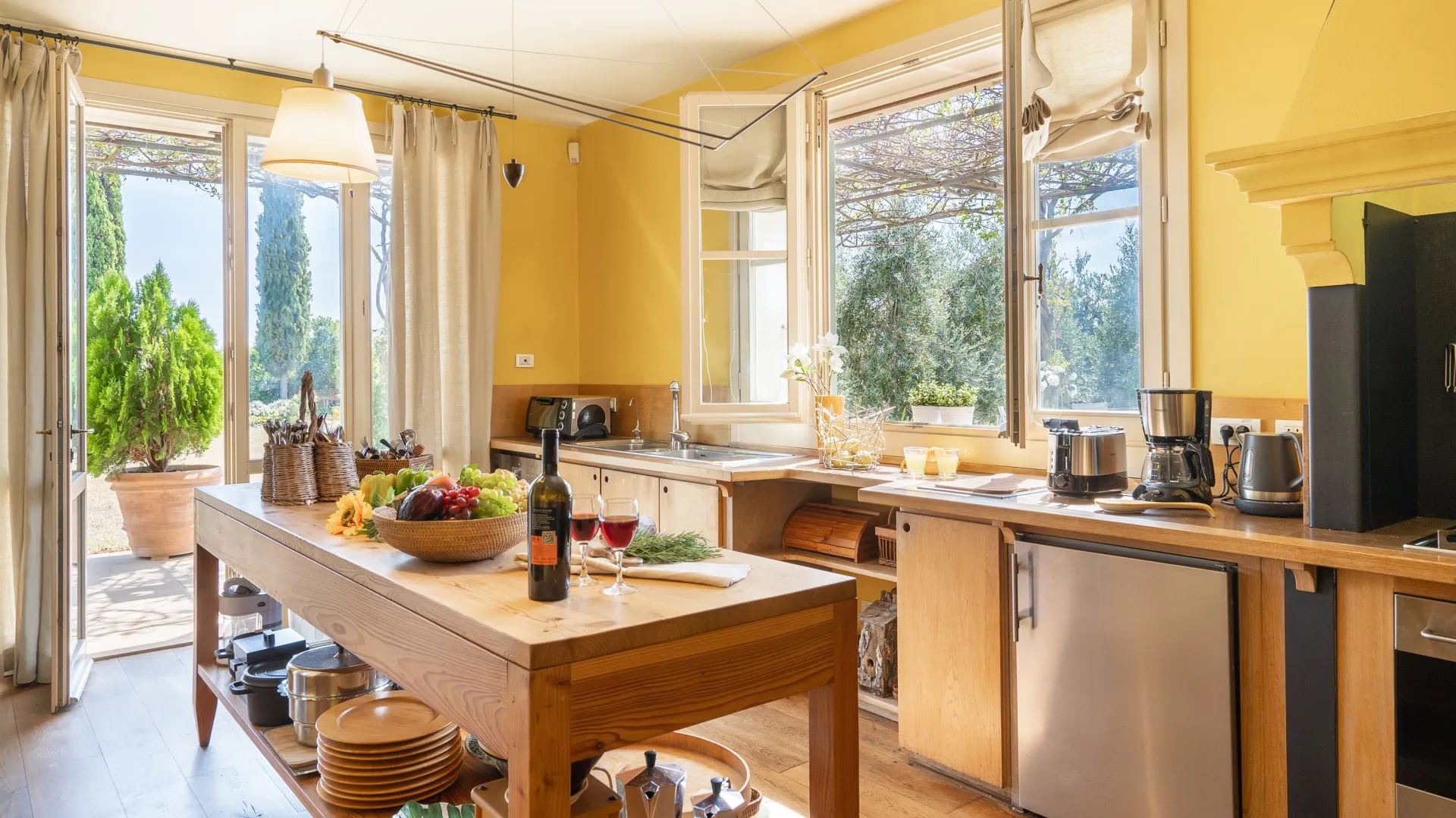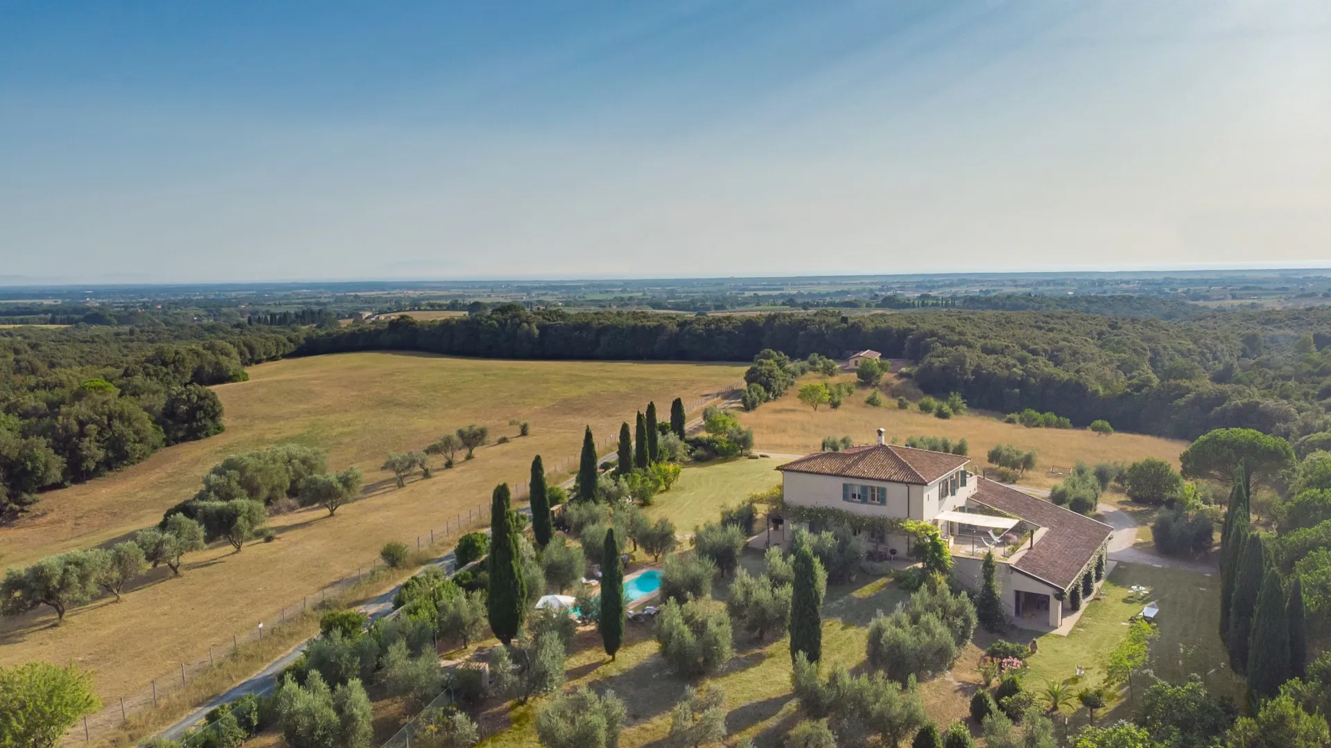Casa del Vento is located about 3 km from the borgo of Casale Marittimo, and about the same distance from the borgo of Bibbona, at the end of a road that plunges into an incomparable panorama. The villa has two floors above ground and a basement, for a total of 438 sq m; it was built in 2002 but despite 18 years having passed since then it seems newly built, thanks to the high quality of the construction techniques used then and to the fact that it has always been inhabited by only one family member. Just its name alone expresses all the nature that the house contains within itself and the benefits it derives from that same nature that surrounds it.