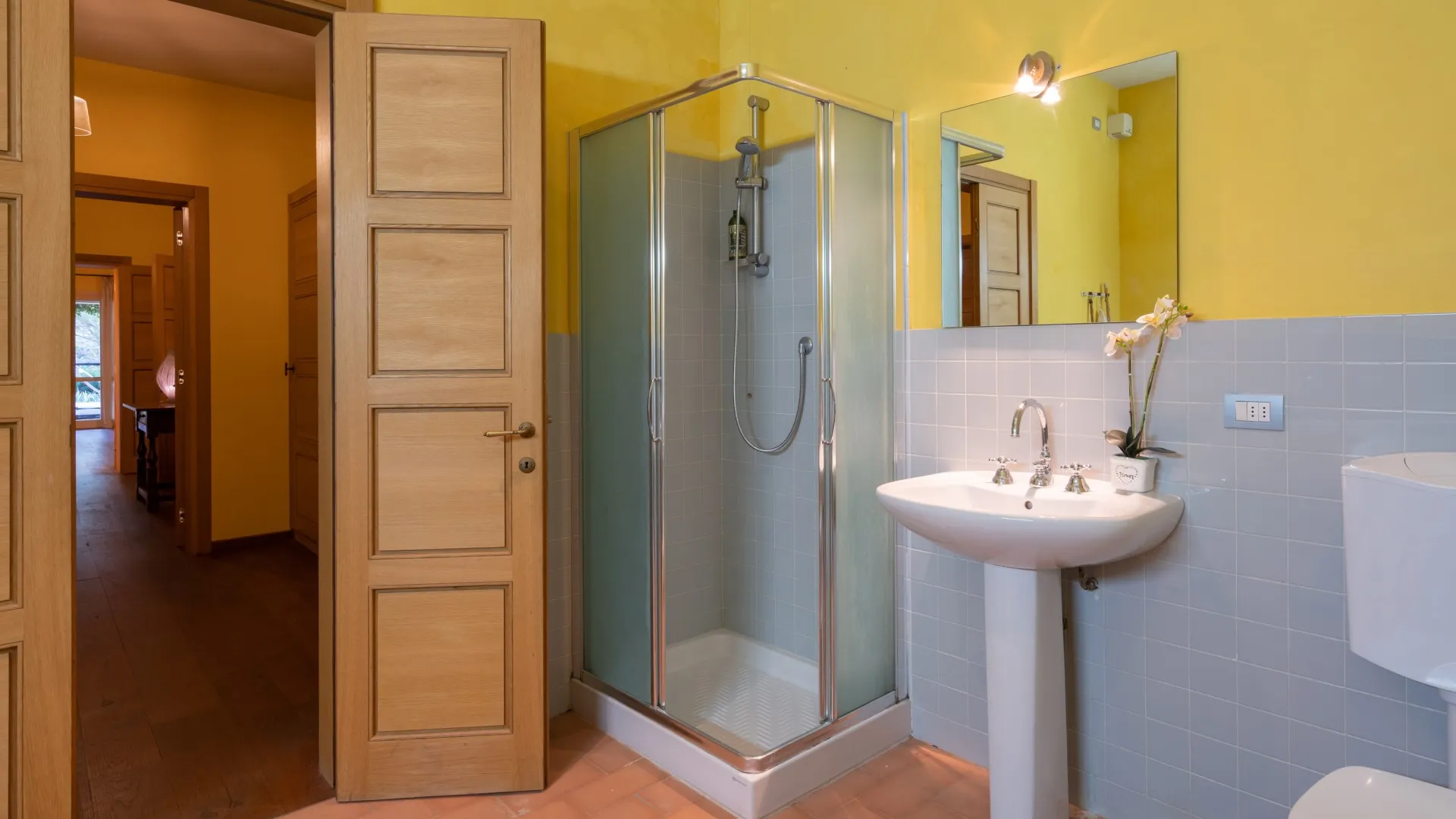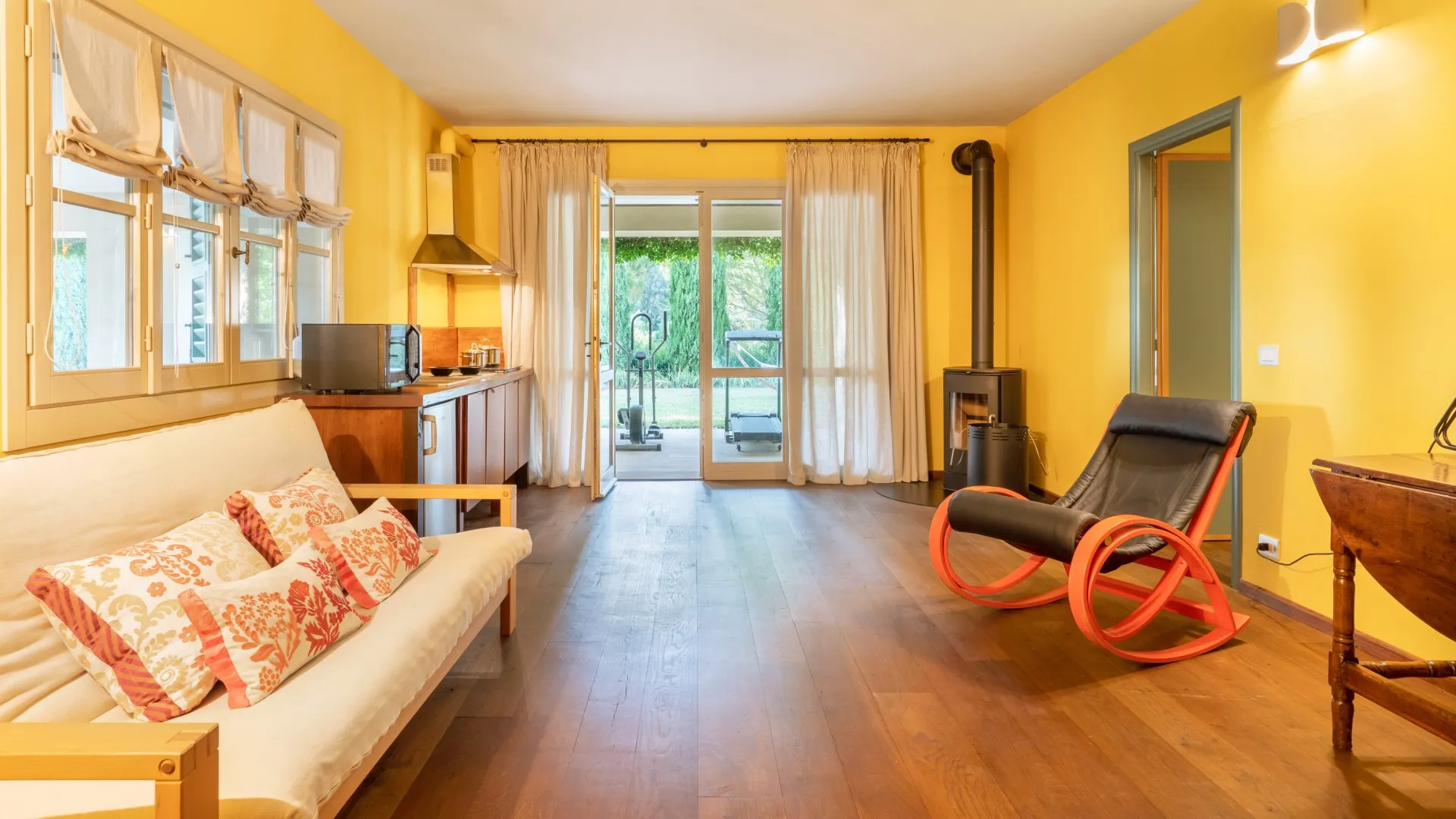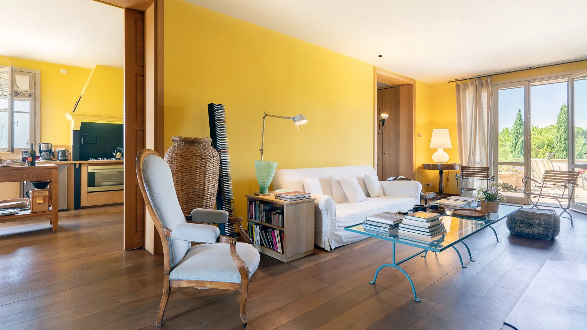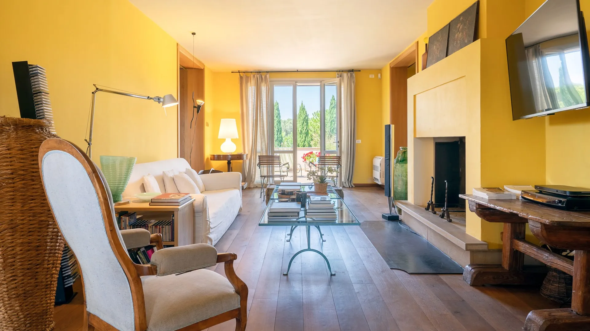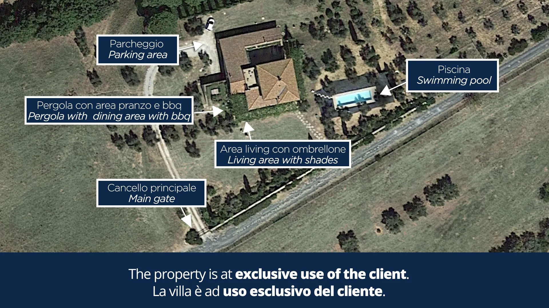 The rectangular swimming pool, measuring 11 x 3 m, is located just a few metres from the house, hidden from it and surrounded by olive trees that guarantee the privacy for those using it and maintain peace and quiet for those who decide to remain in the house. Ht is reached across the lawn and is purified with ozone. The solarium terrace, approximately 23 sq m , is equipped with sunbeds, deck chairs and umbrellas so that you can fully enjoy this exclusive area. The pool is open from the last Saturday of April until the first Saturday of October.