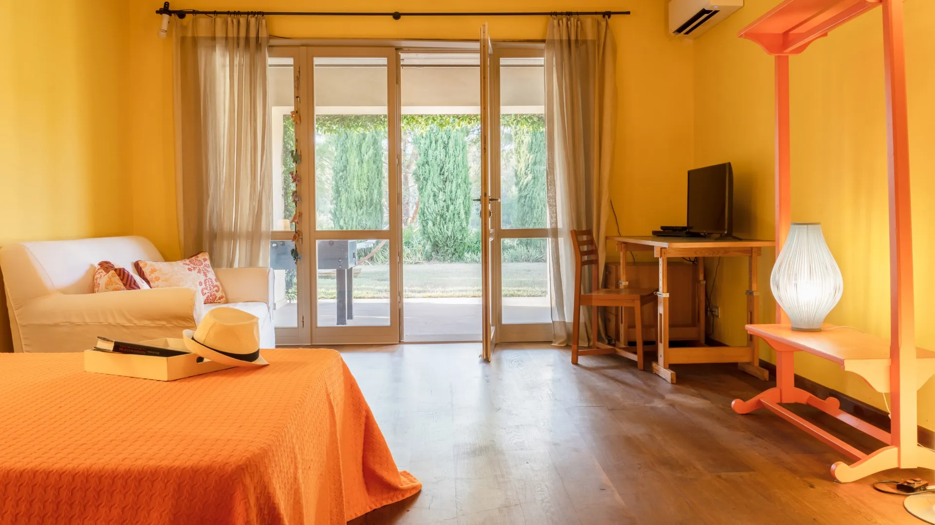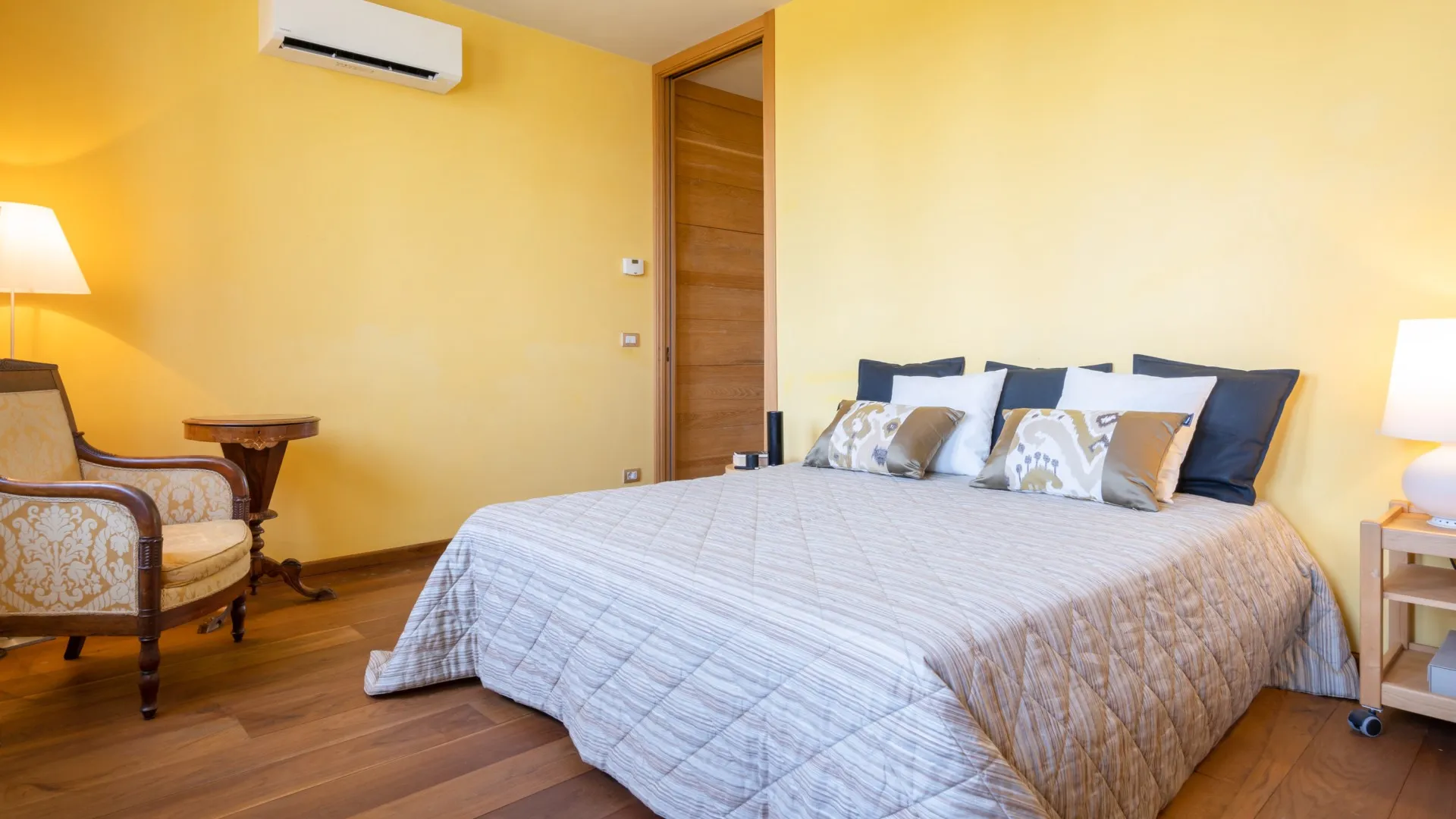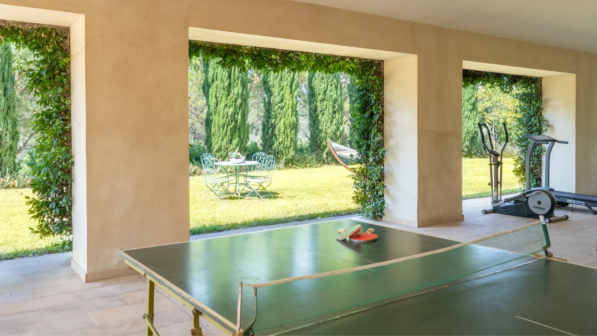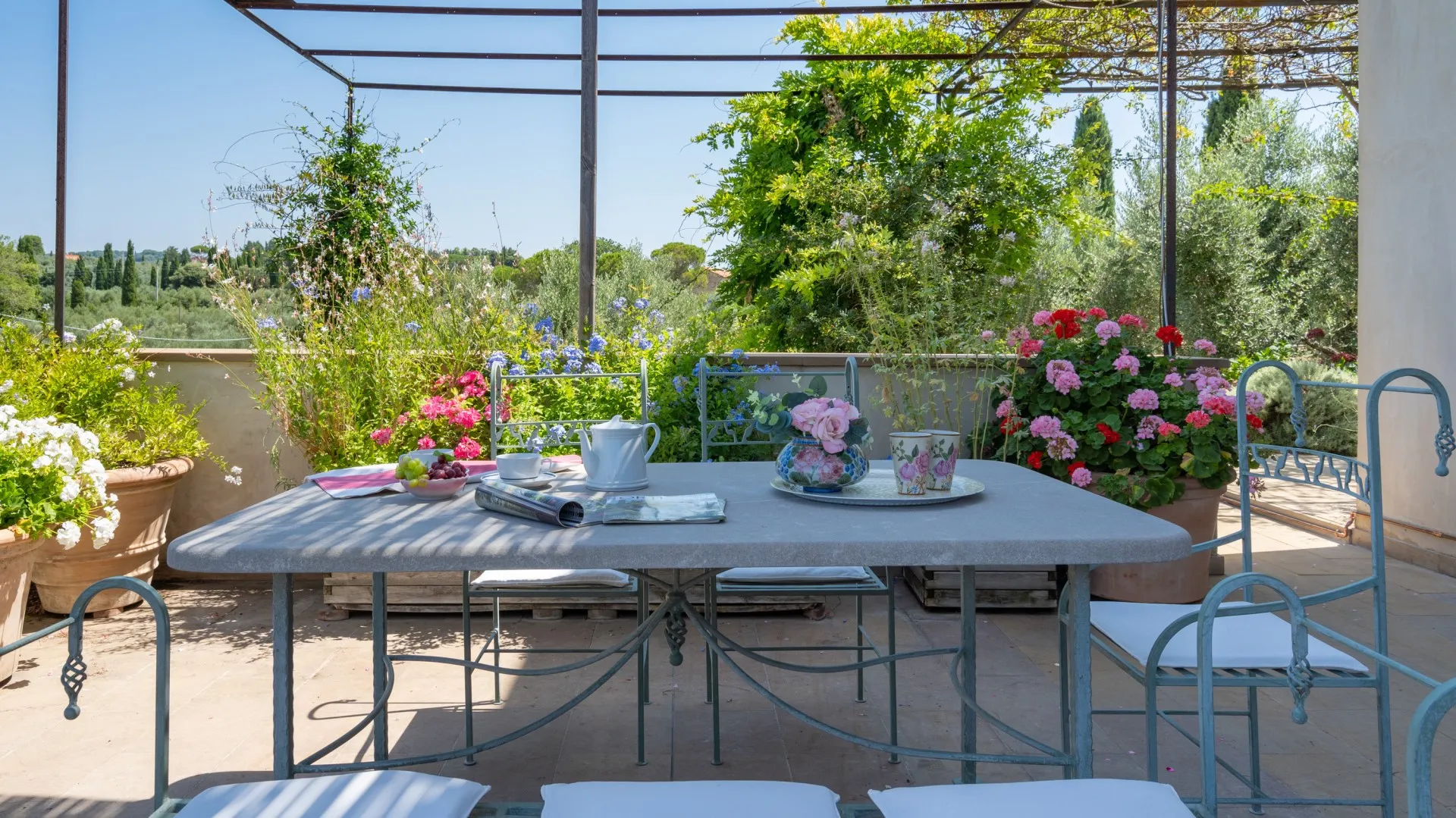 The villa is surrounded by a green park which extends for a total area of six hectares, of which one hectare around the house is used as the garden. Natural grass and olive trees are the undisputed protagonists. Patches of flowers, stones and creepers give the finishing touches to the nooks and crannies along the way to the swimming pool. A beautiful corner portico faces, first, the lawn and then the sea; reading, relaxing and seating areas are dotted here and there in the garden; the pergola next to the dining area is set up for outdoor dining, with a handy barbecue.Please notice that photos are taken in spring, therefore flower blossoming, and the colours of the gardens' grass could be different at the moment of your arrival at the villa.