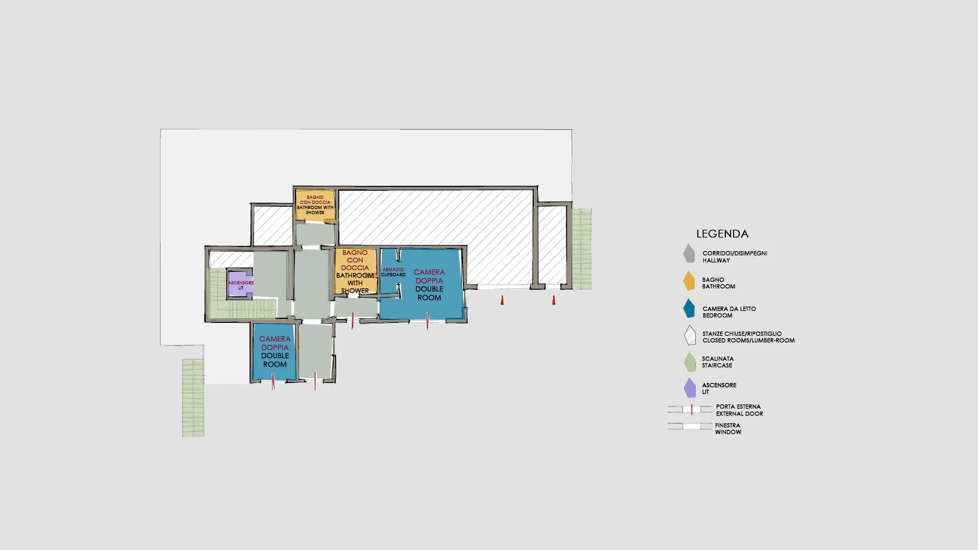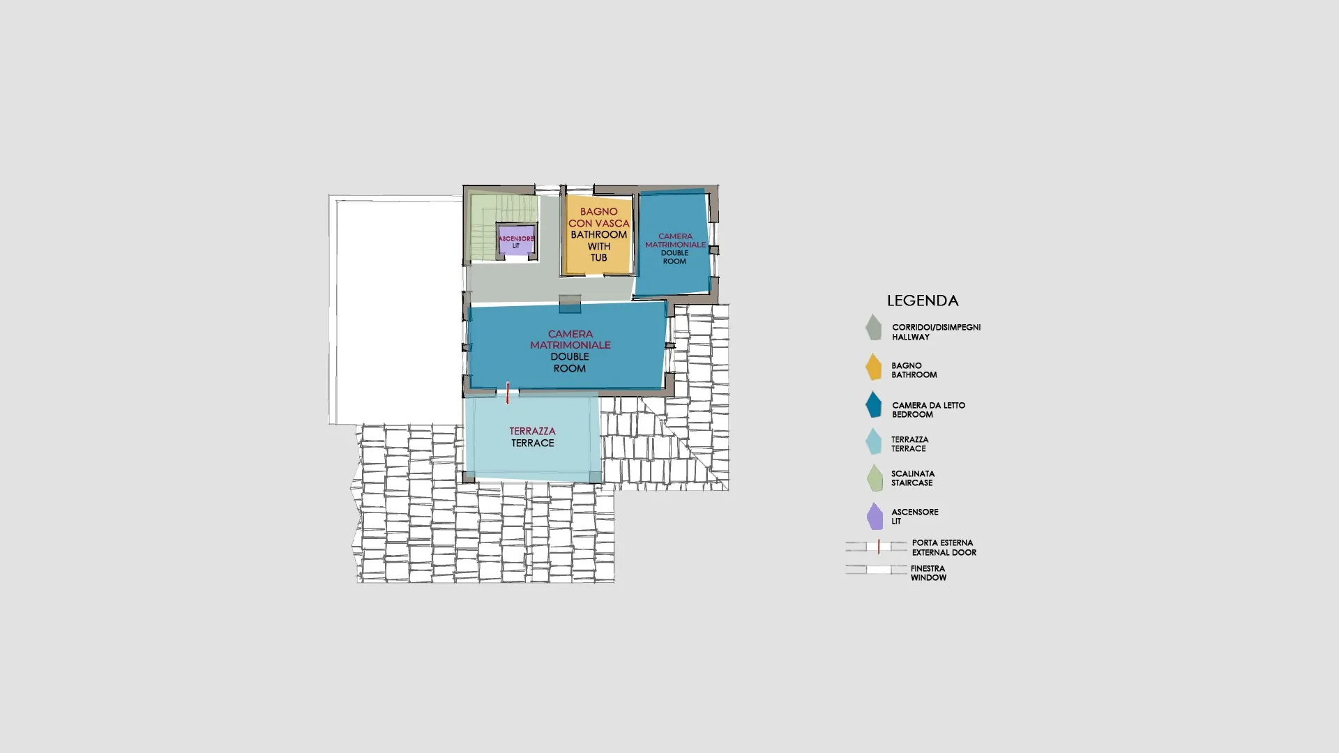 For more technical details and layout of spaces, see "Planimetries"