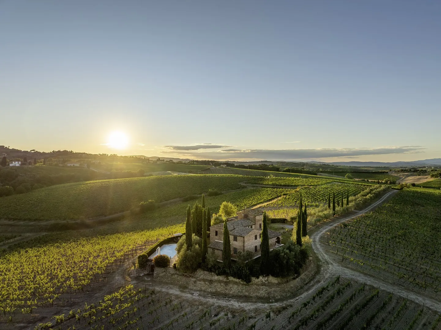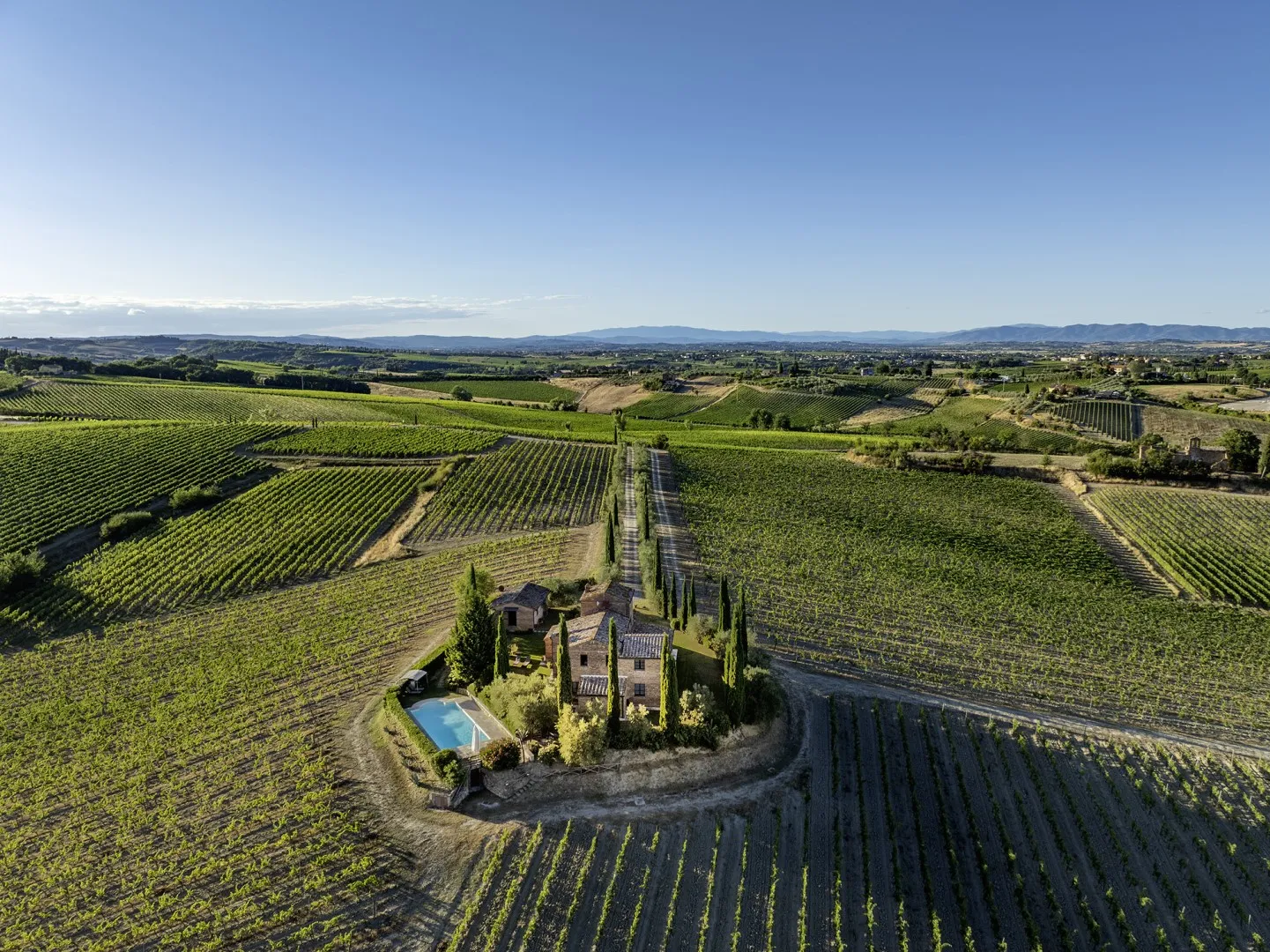 To get to Casale Dei, just follow the dirt track flanked by olive trees and guarded by boundless garrisons of vines that wind rapidly through the distinctive and stunning scenery that frames this typical Tuscan farmhouse, perched on the hills of Montepulciano at 320 m above sea level and part of one of the largest and most prestigious farms in the area, whose cultivations of olives and grapes produce an exceptional extra-virgin olive oil and the prestigious nectar which, in this fertile land, is labeled Vino Nobile di Montepulciano, which you can taste in the exclusive rooms that form the underground cellar, completely constructed in travertine and with an extraordinary spiral-shaped entrance: a true architectural masterpiece, located about 5 chilometres form the farmhouse, not to be missed!
