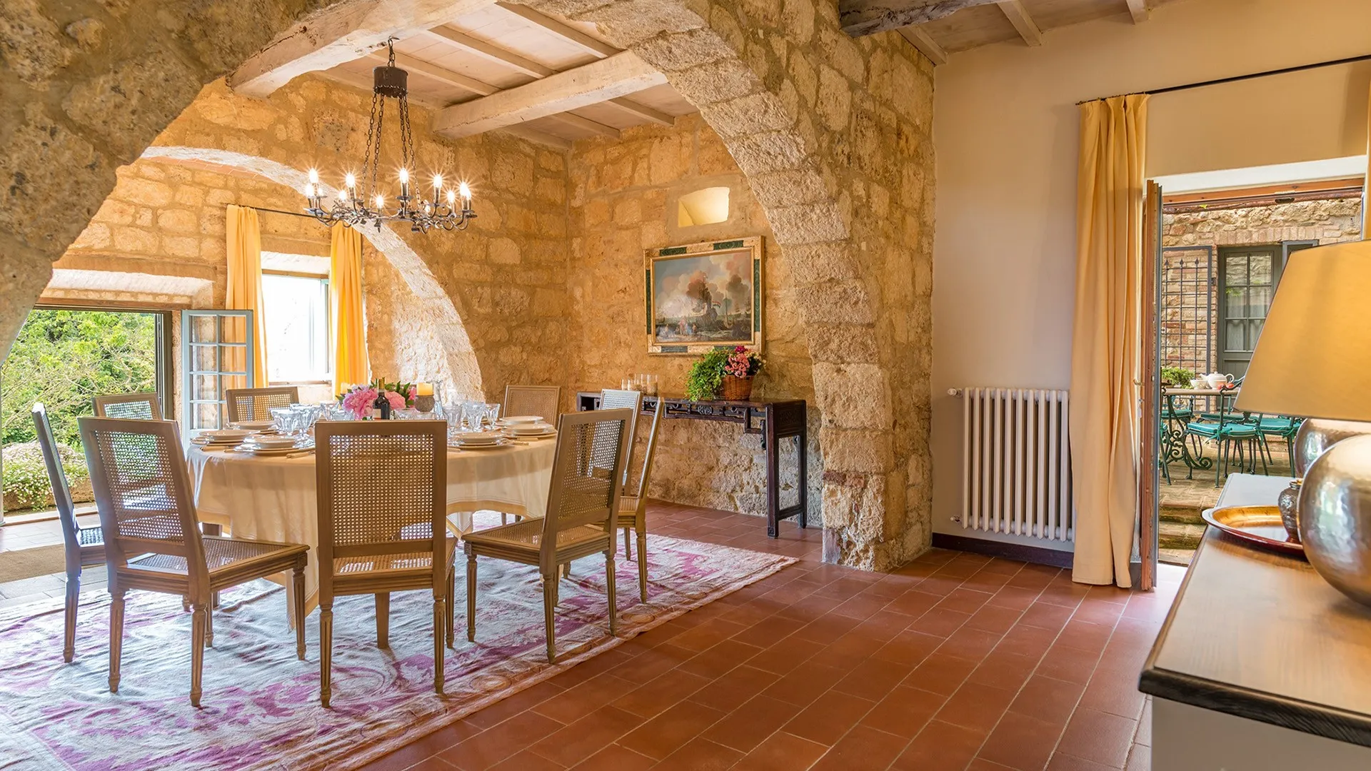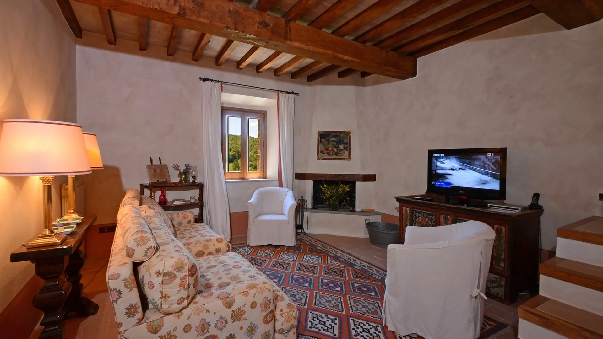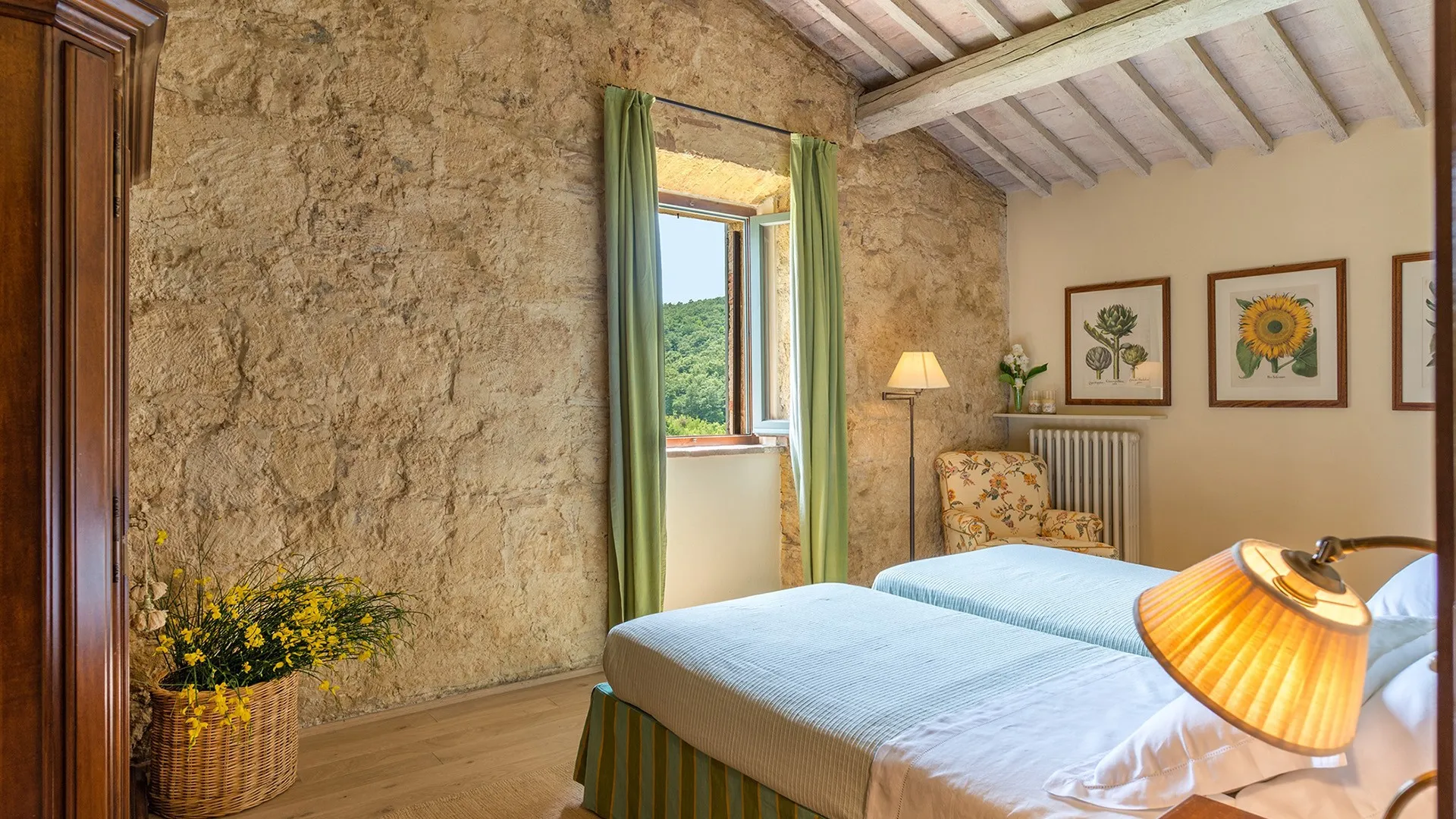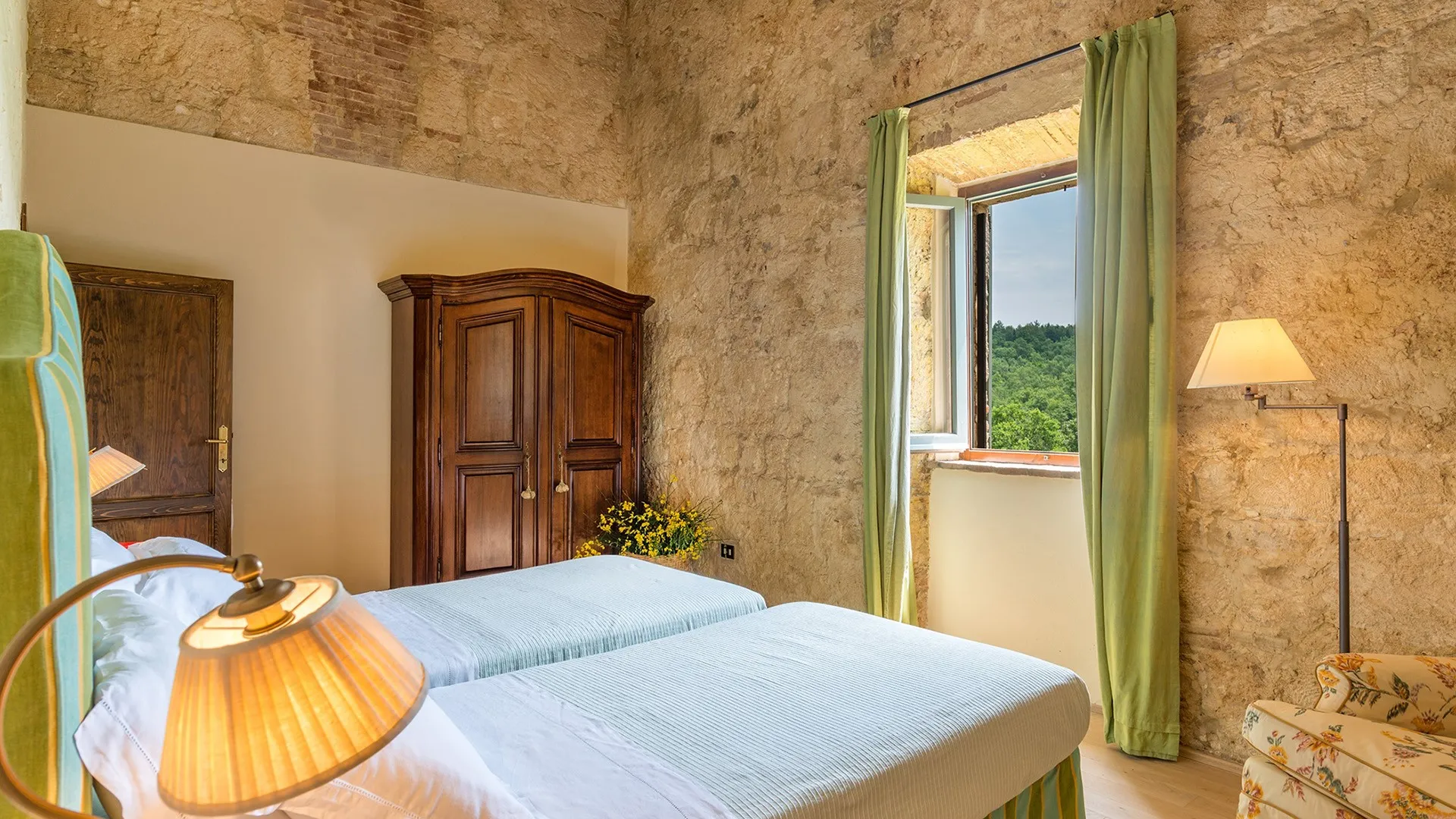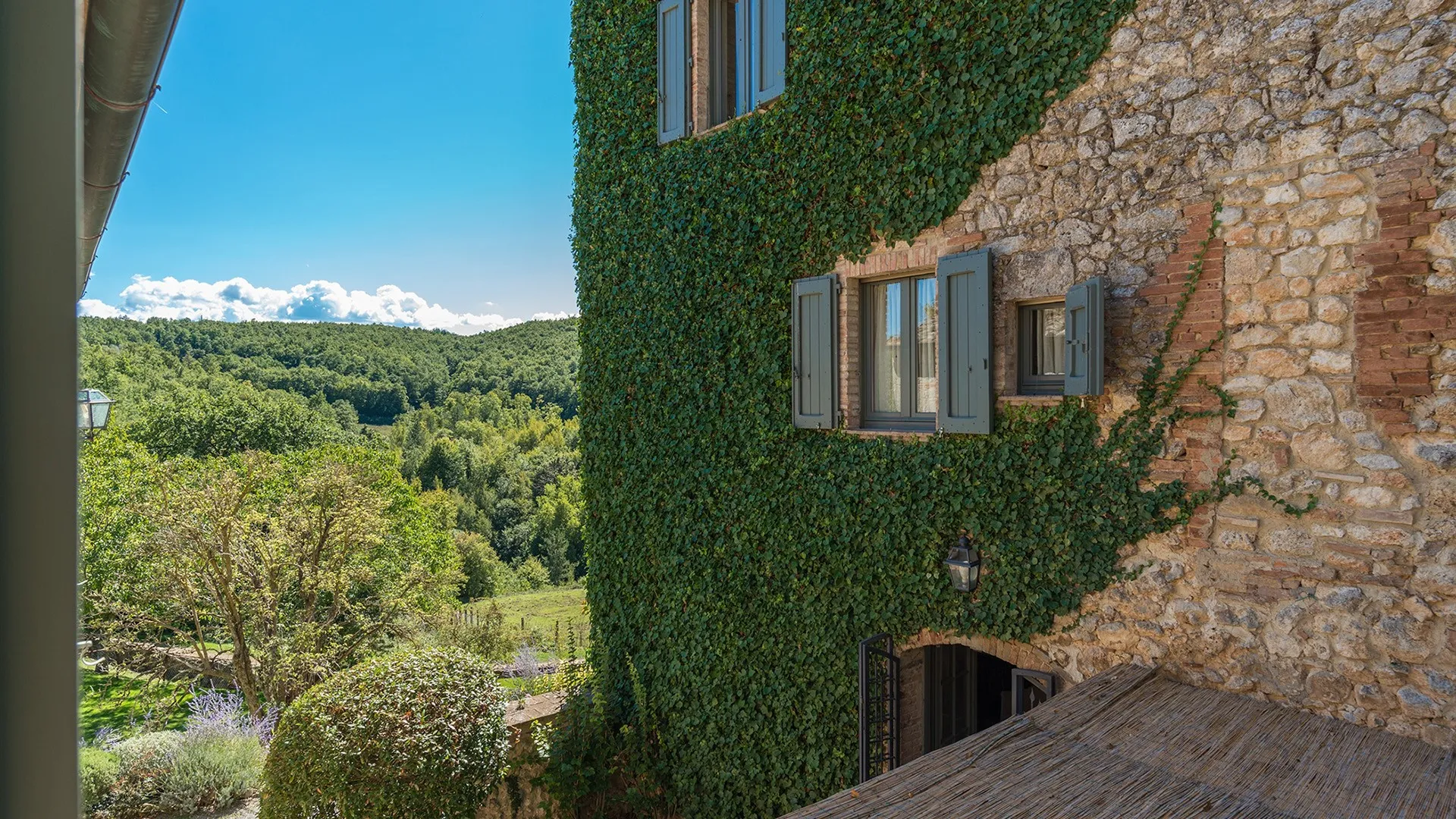 Monticchia is a beautiful house set inside quiet, green woodland in the hilly area of Sarteano. This charming property with its romantic, characteristic scenery is appreciable in every season of the year. The stone structure fits in perfectly with the surrounding countryside, giving guests the fairy tale impression of a dream home.
