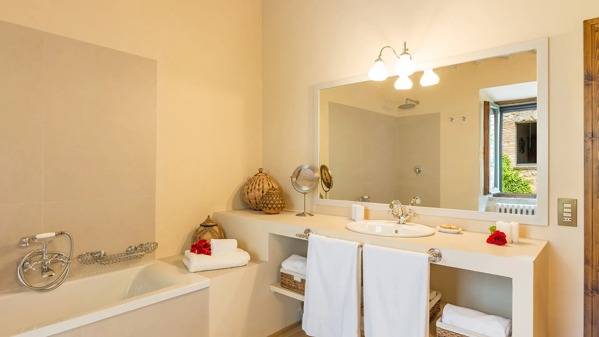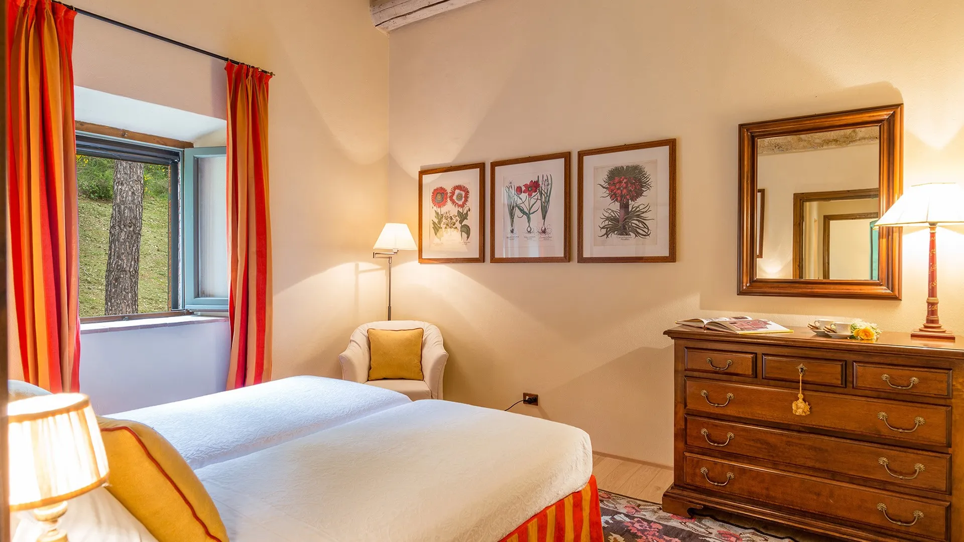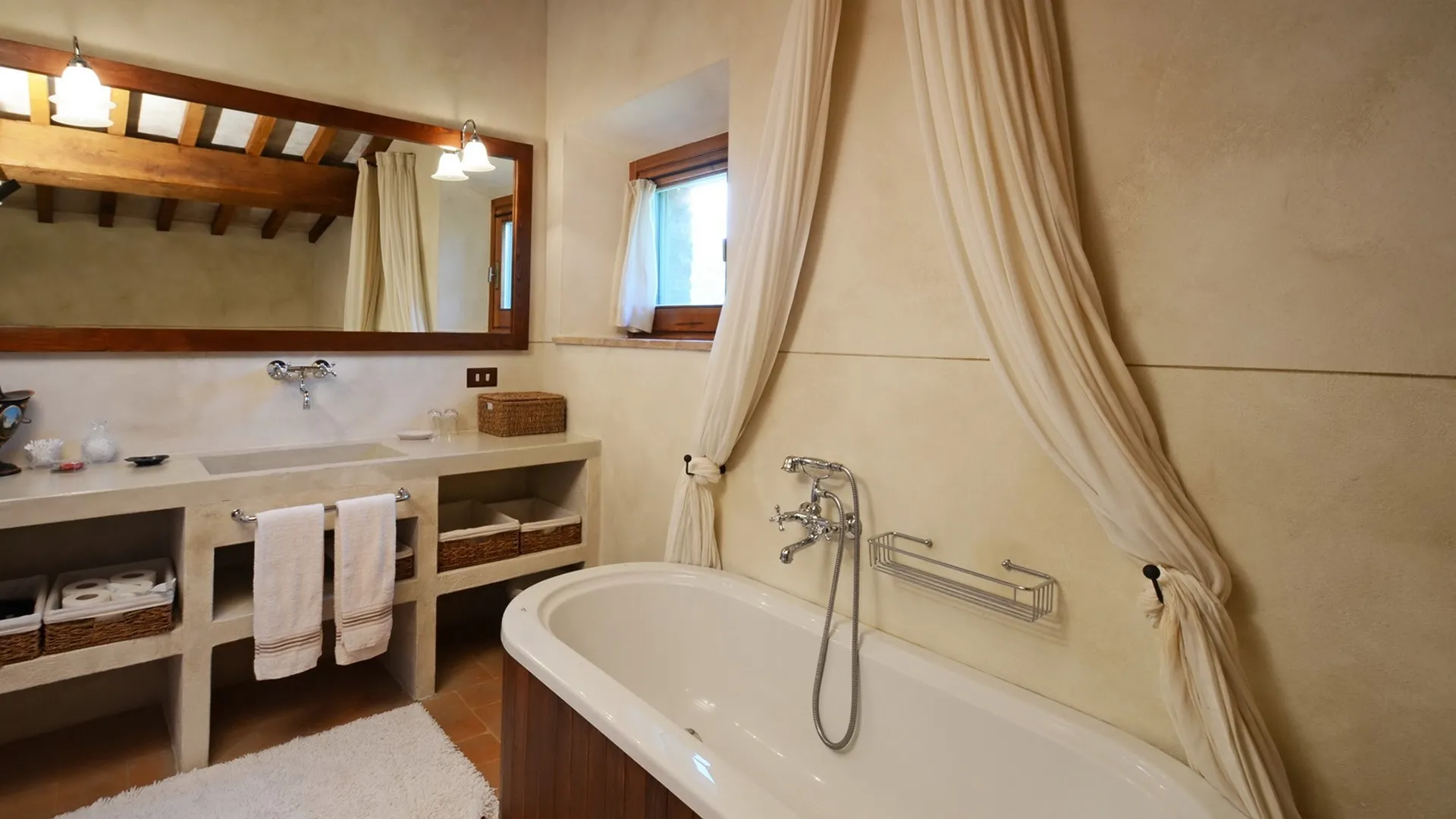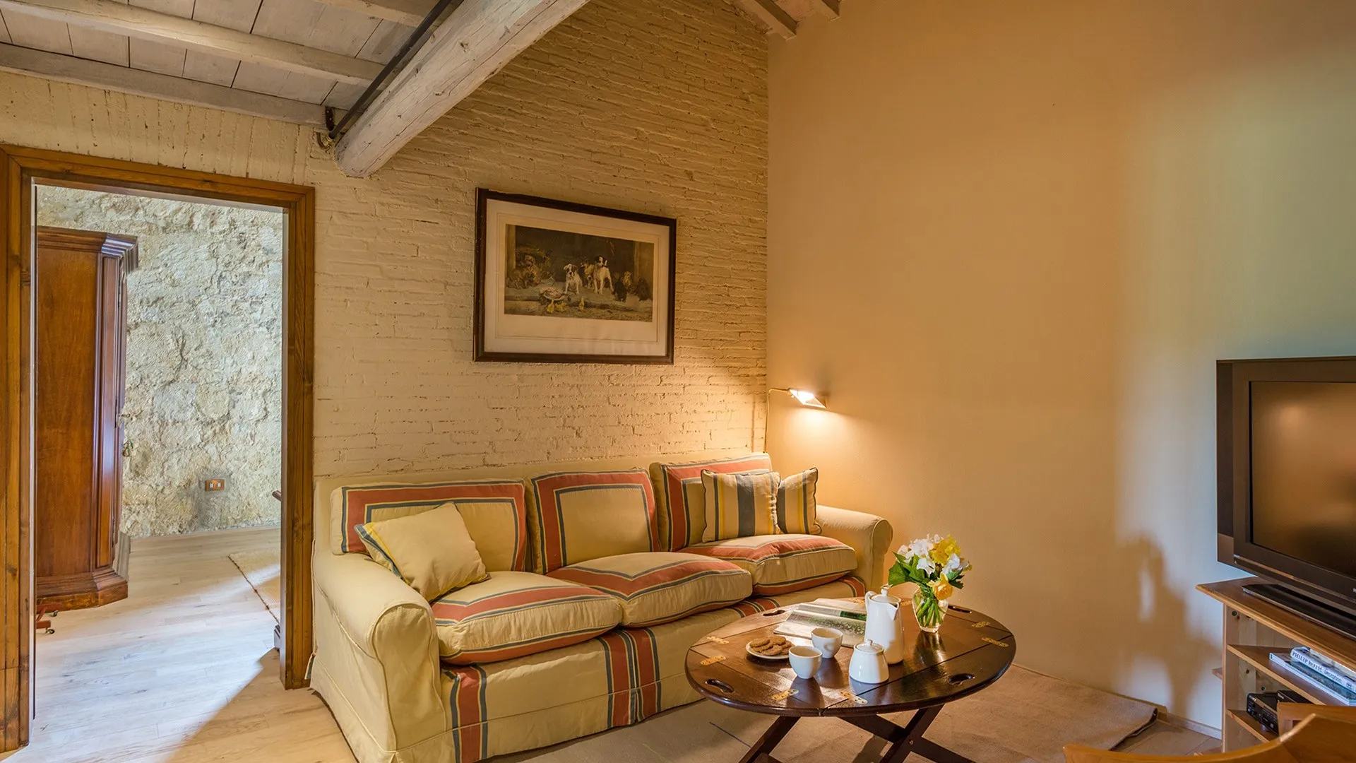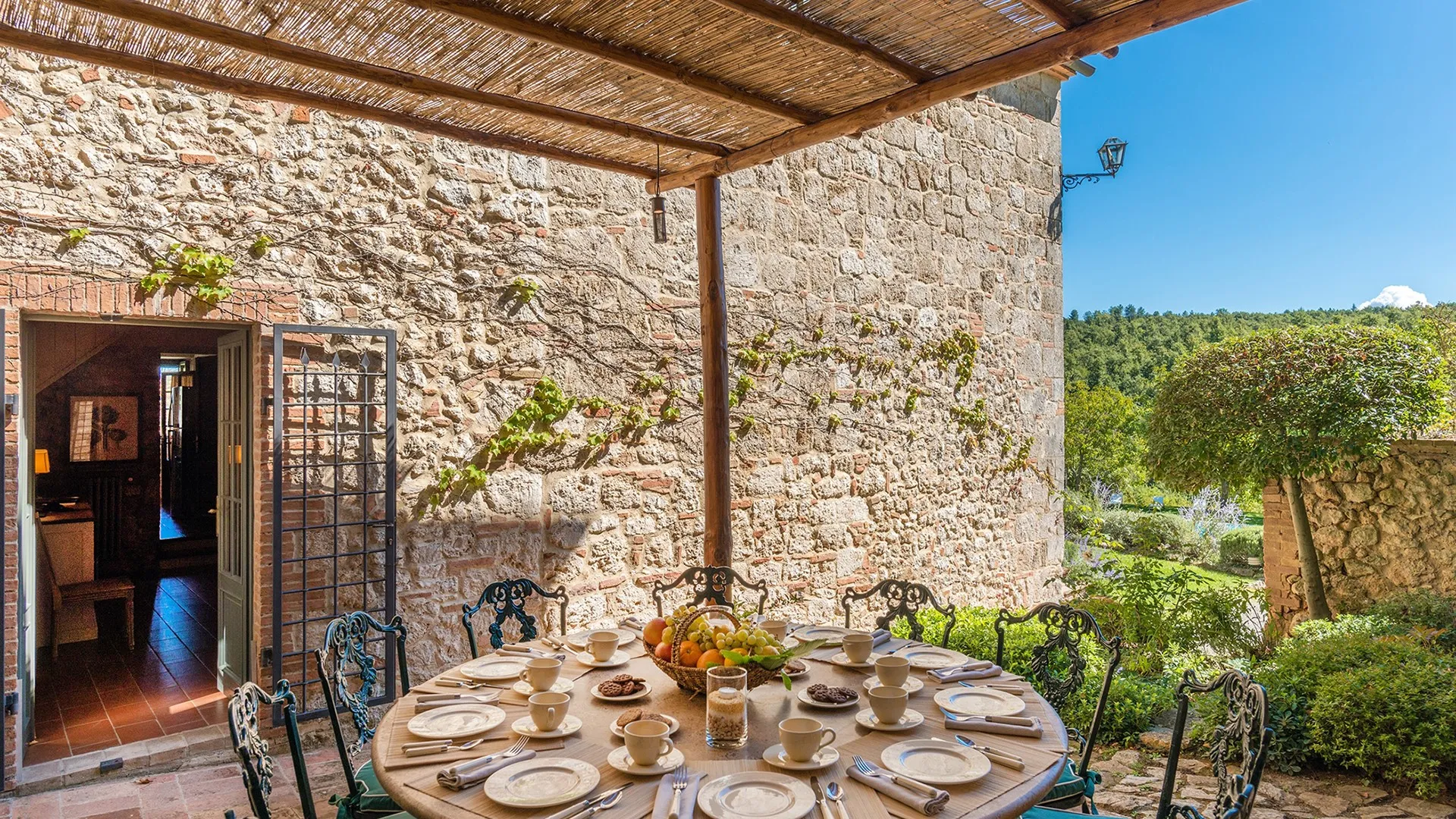 Monticchia is a beautiful house set inside quiet, green woodland in the hilly area of Sarteano. This charming property with its romantic, characteristic scenery is appreciable in every season of the year. The stone structure fits in perfectly with the surrounding countryside, giving guests the fairy tale impression of a dream home.