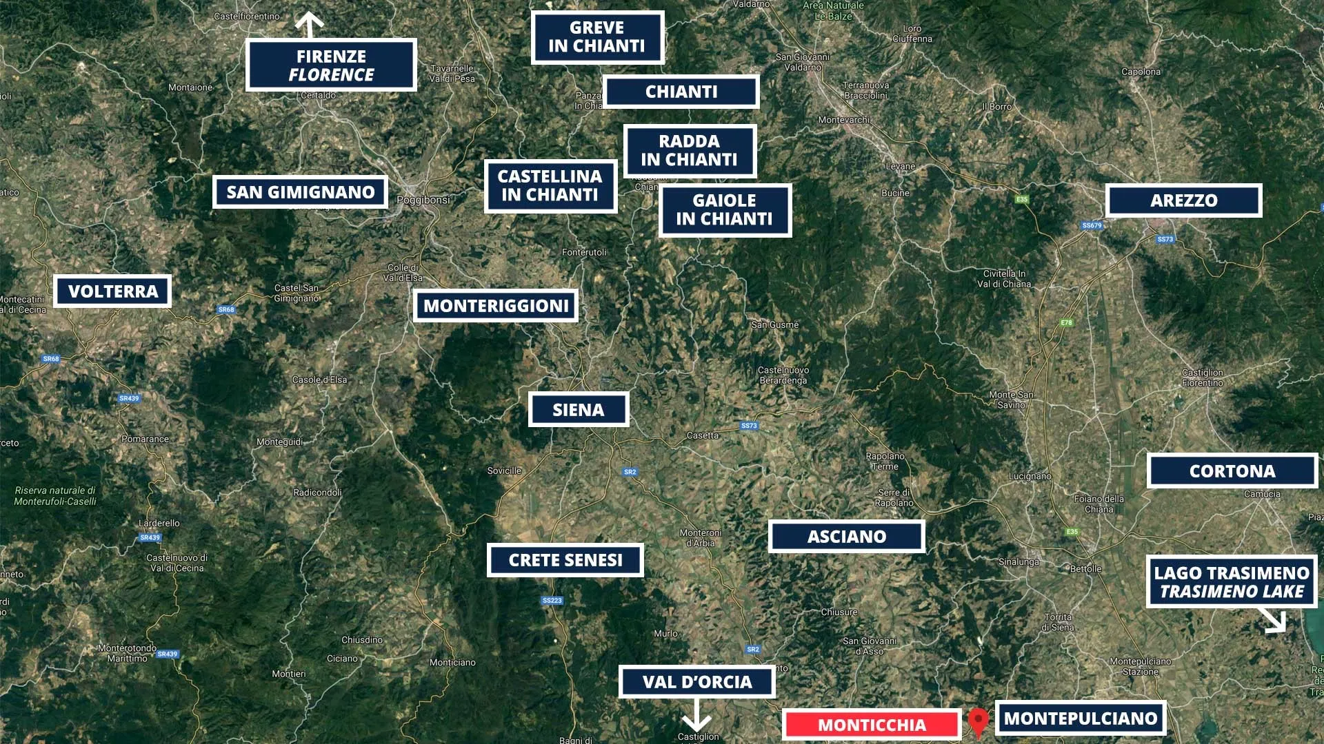 Airport: Perugia 103 km, Firenze 148 km, Roma 197 km, Pisa 208 km, Milano 428 km