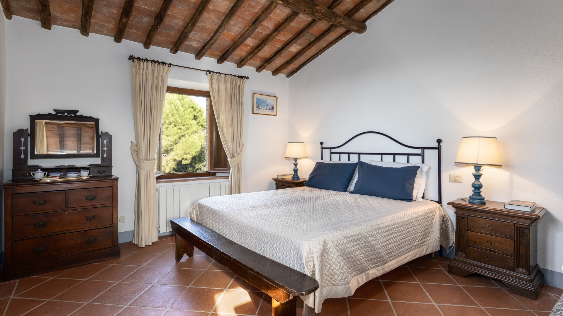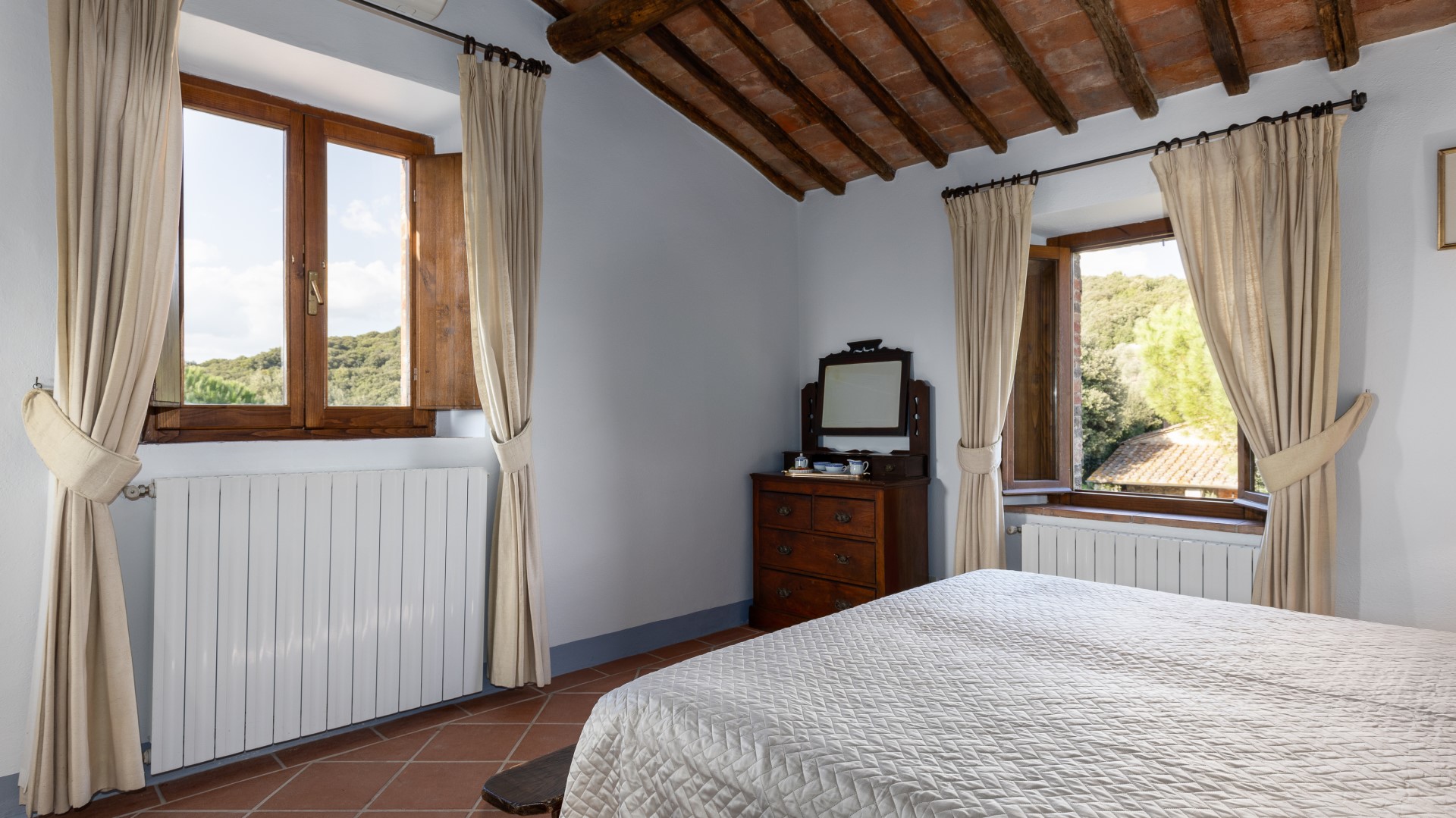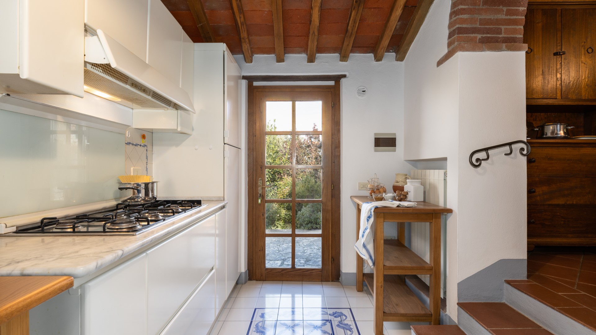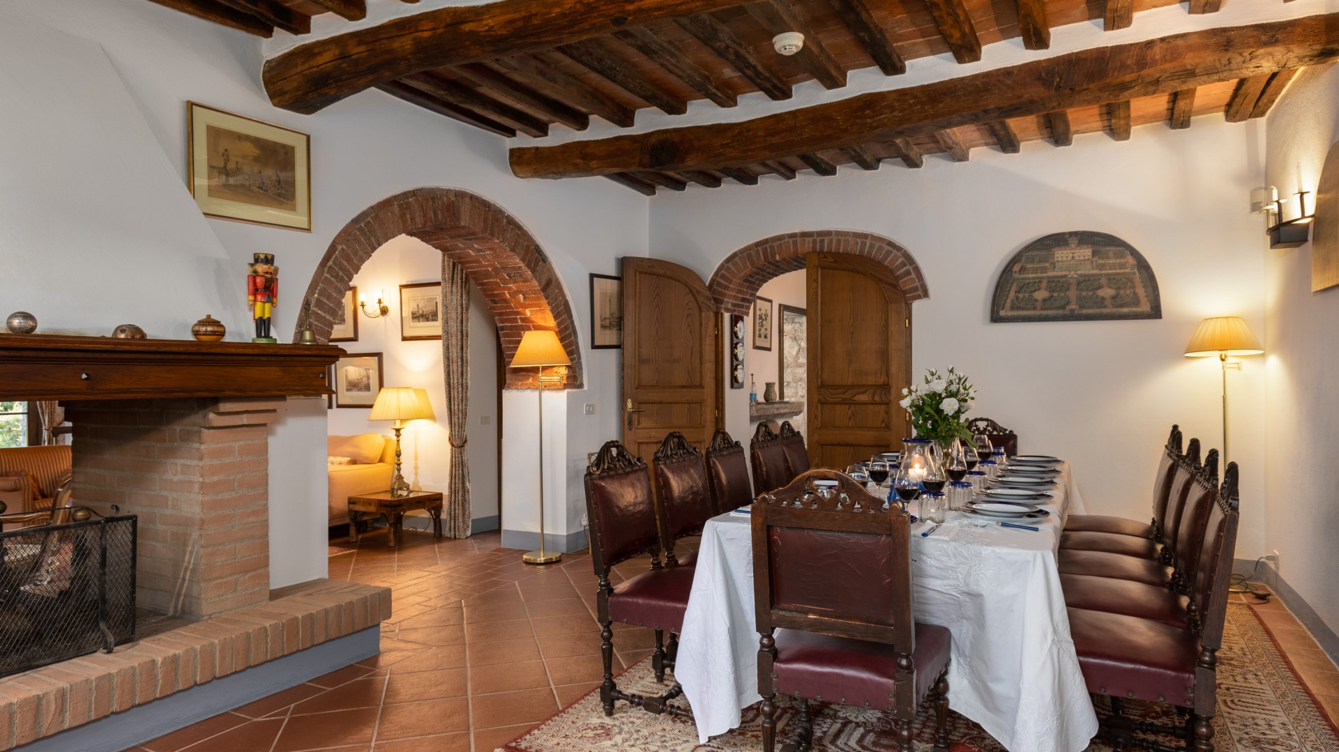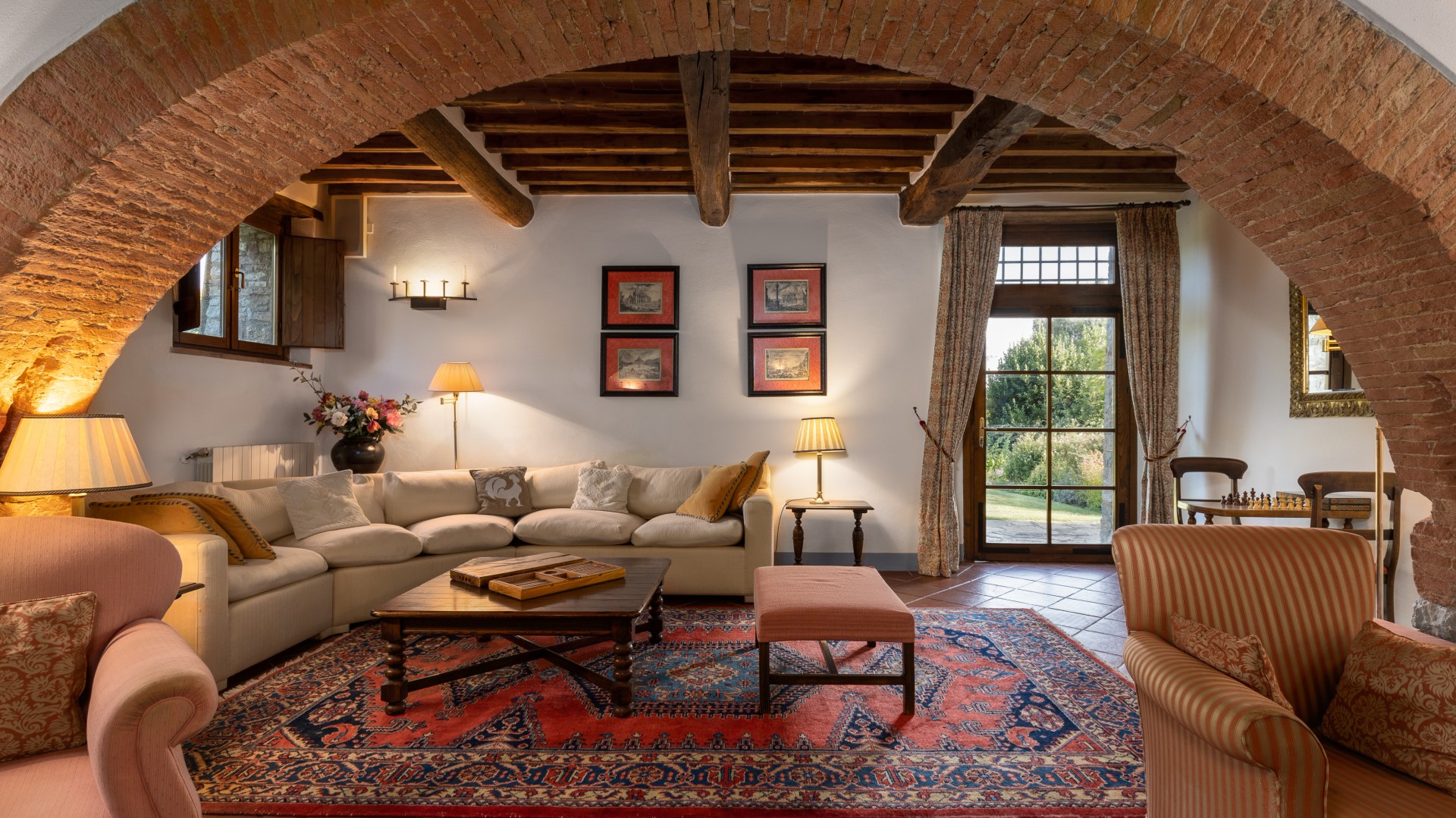 Scandelaia has two floors connected by an internal staircase, with the addition of a tower. The main entrance leads into the spacious living room, organised with a dining area, a large fireplace and an ample sitting area with sofas and television. Proceeding along a short corridor, you come to the kitchen, divided in two areas and connected to the pantry/laundry room. The floor is completed by two double bedrooms (one with divisible bed) with ensuite bathroom with tub. All the rooms on this floor lead directly into the garden; the living room and kitchen have access to the external terrace with a living area for relaxing and eating outdoors. The first floor is composed of the elegant master bedroom with private bathroom with tub and shower, a double bedroom with ensuite bathroom with tub and shower (reached down four steps), another double bedroom (with divisible bed) with ensuite bathroom with tub, a study, a sitting room and a bathroom with tub and shower serving the bedroom located in the tower, which is reached up a flight of stairs.