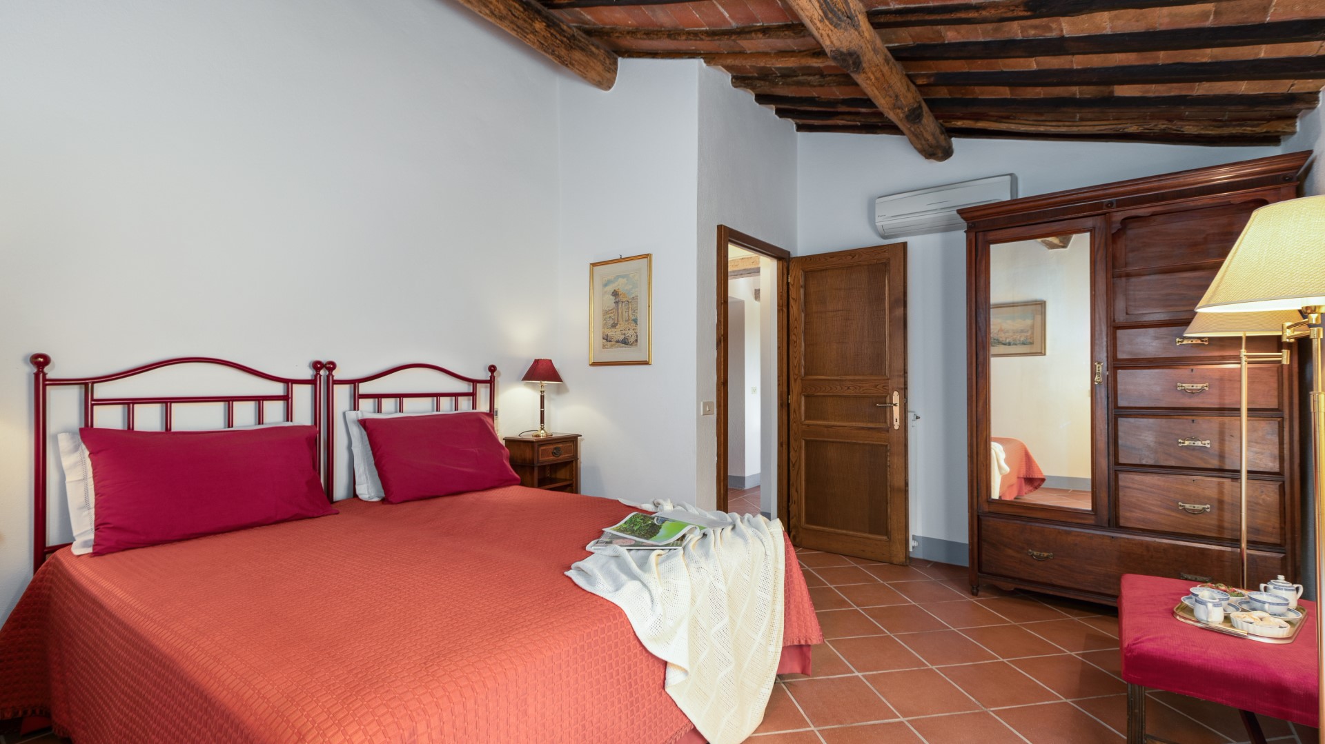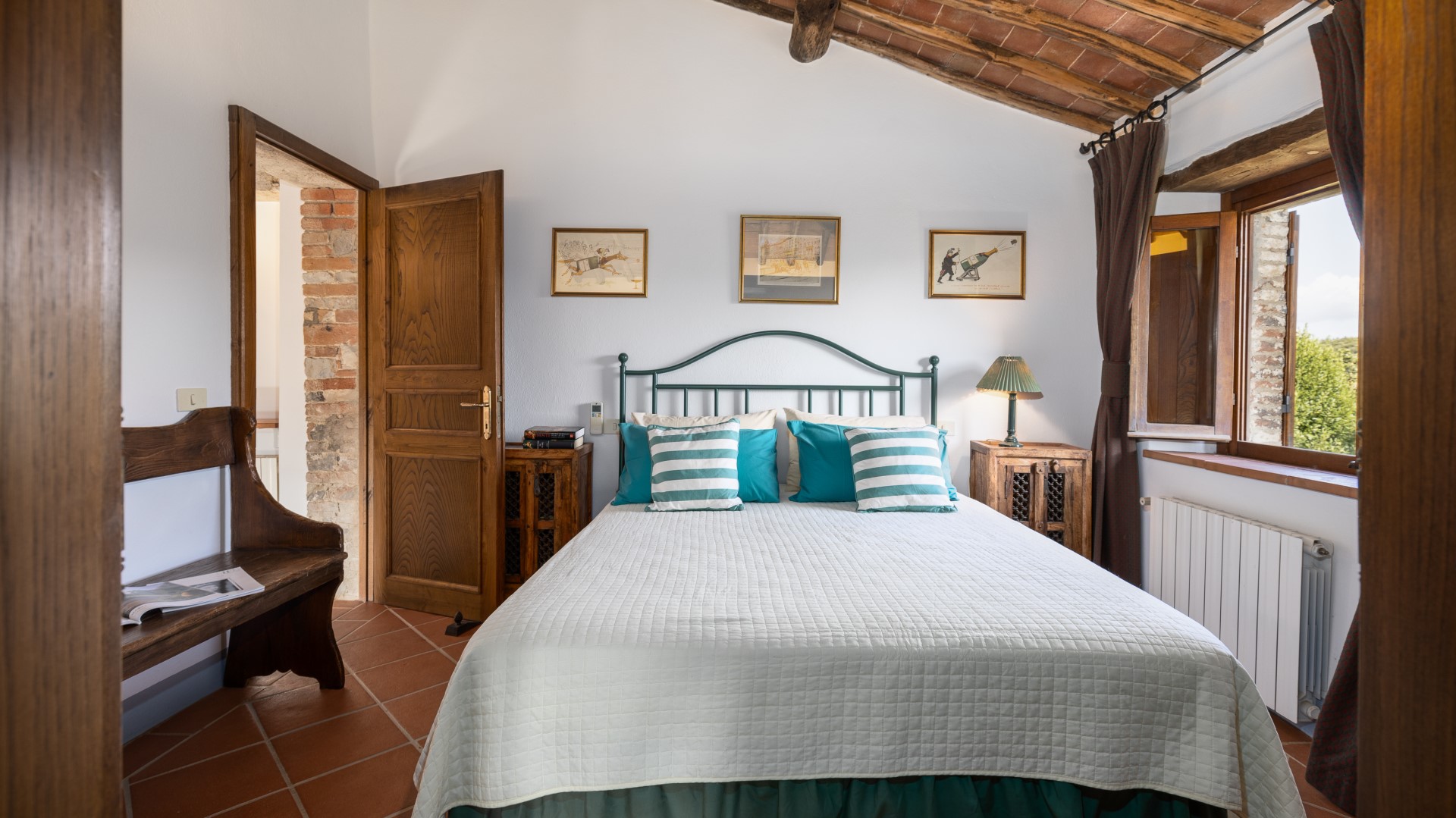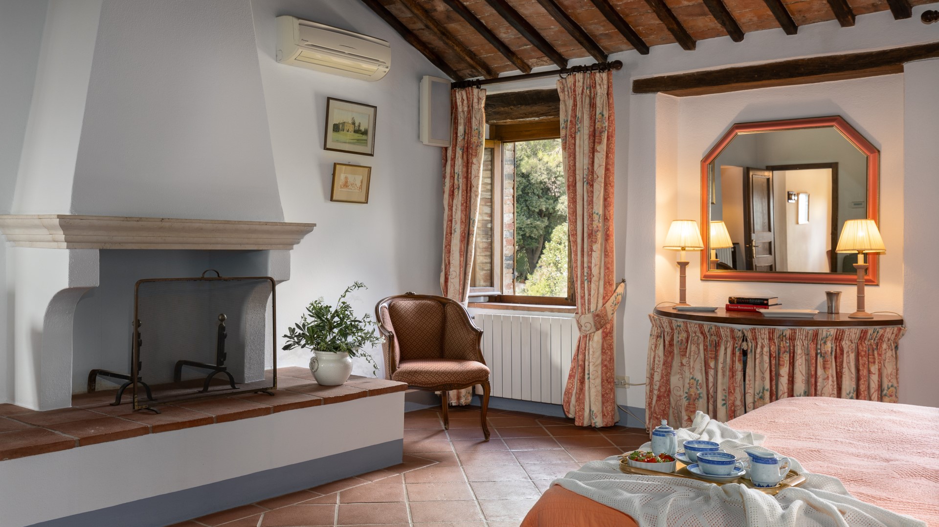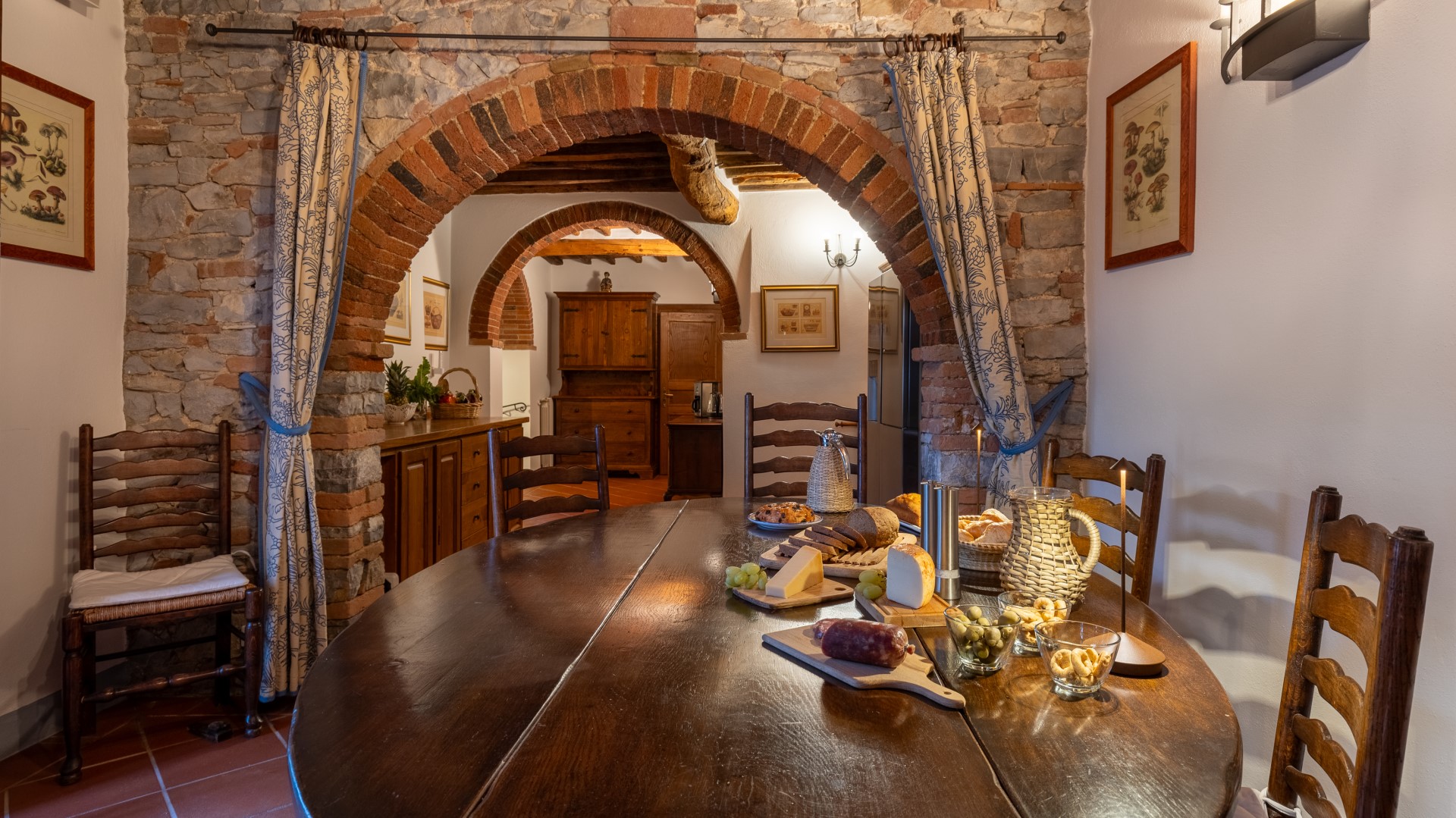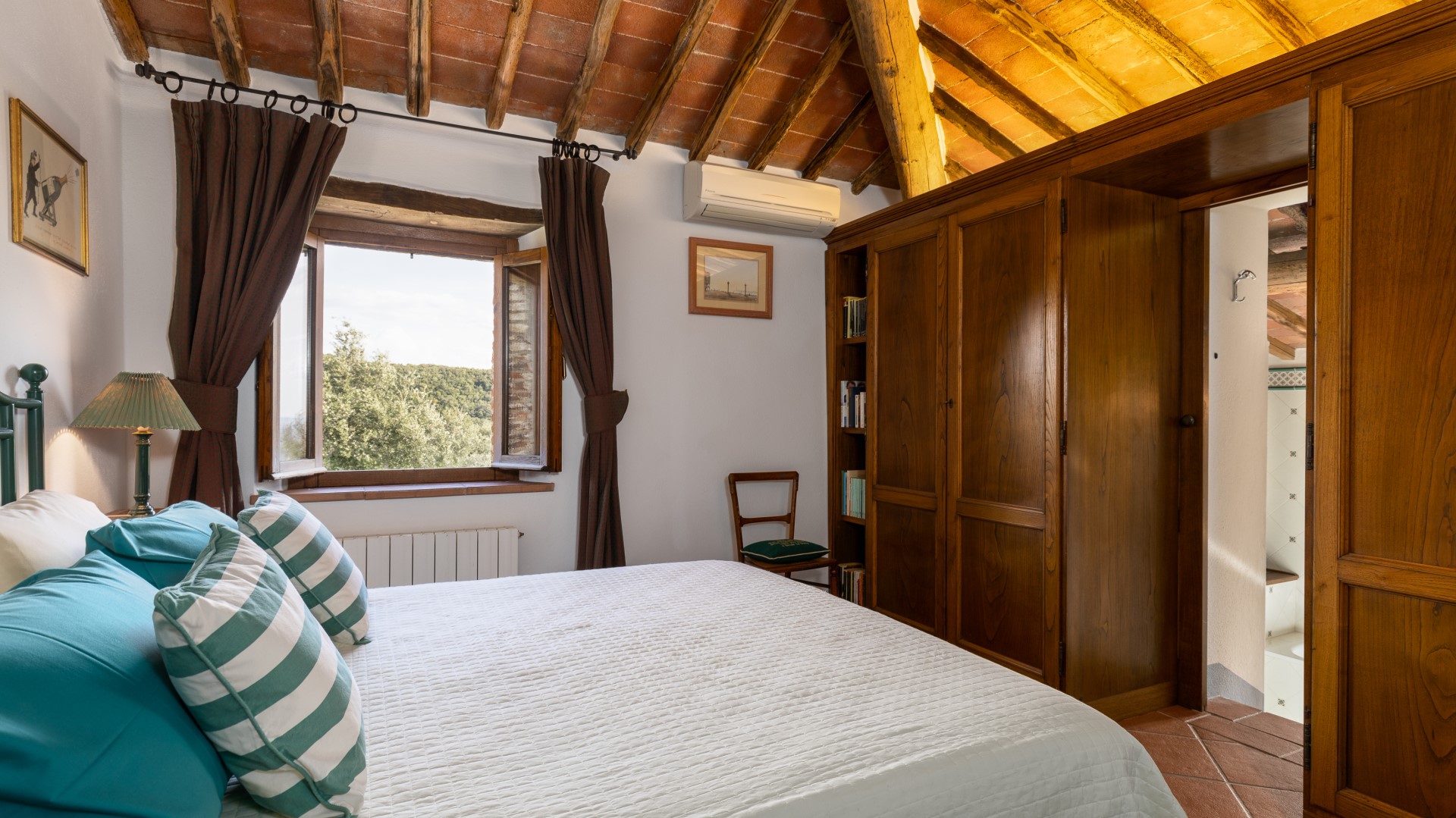 Scandelaia has two floors connected by an internal staircase, with the addition of a tower. The main entrance leads into the spacious living room, organised with a dining area, a large fireplace and an ample sitting area with sofas and television. Proceeding along a short corridor, you come to the kitchen, divided in two areas and connected to the pantry/laundry room. The floor is completed by two double bedrooms (one with divisible bed) with ensuite bathroom with tub. All the rooms on this floor lead directly into the garden; the living room and kitchen have access to the external terrace with a living area for relaxing and eating outdoors. The first floor is composed of the elegant master bedroom with private bathroom with tub and shower, a double bedroom with ensuite bathroom with tub and shower (reached down four steps), another double bedroom (with divisible bed) with ensuite bathroom with tub, a study, a sitting room and a bathroom with tub and shower serving the bedroom located in the tower, which is reached up a flight of stairs.