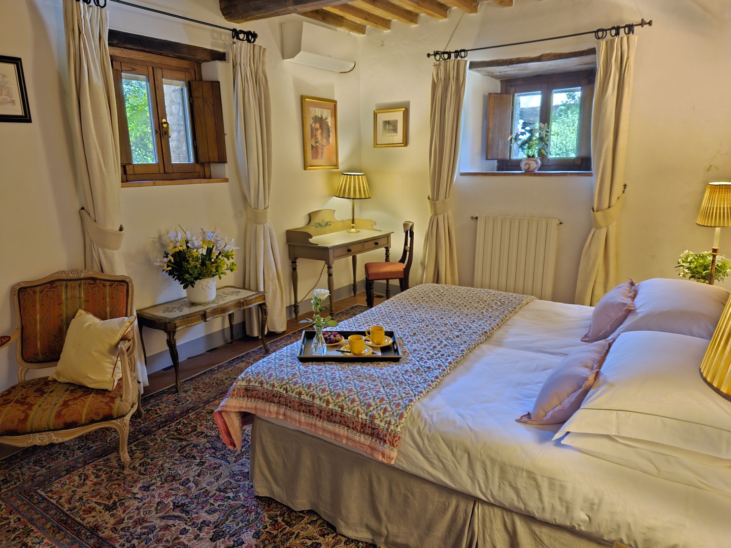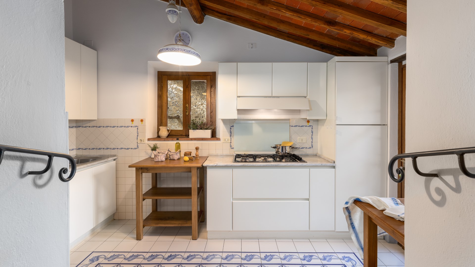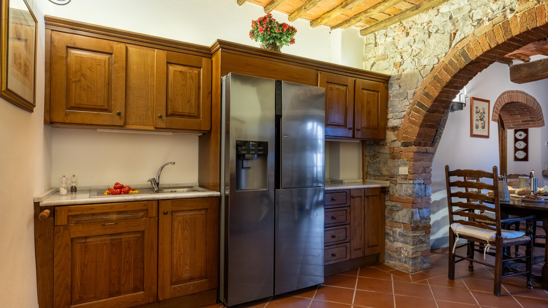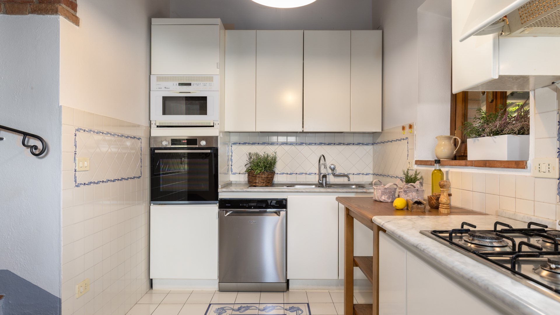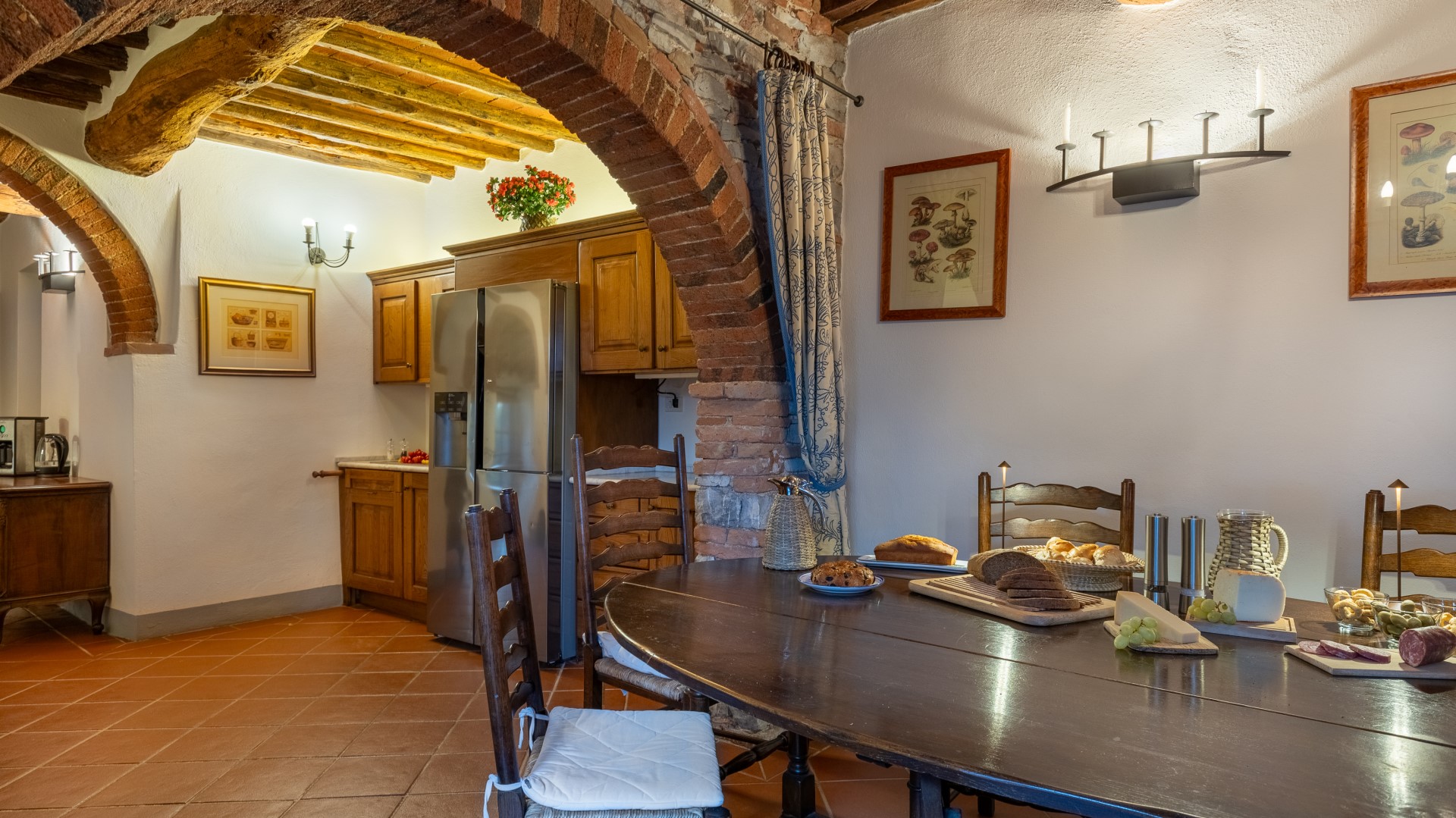 Scandelaia has two floors connected by an internal staircase, with the addition of a tower. The main entrance leads into the spacious living room, organised with a dining area, a large fireplace and an ample sitting area with sofas and television. Proceeding along a short corridor, you come to the kitchen, divided in two areas and connected to the pantry/laundry room. The floor is completed by two double bedrooms (one with divisible bed) with ensuite bathroom with tub. All the rooms on this floor lead directly into the garden; the living room and kitchen have access to the external terrace with a living area for relaxing and eating outdoors. The first floor is composed of the elegant master bedroom with private bathroom with tub and shower, a double bedroom with ensuite bathroom with tub and shower (reached down four steps), another double bedroom (with divisible bed) with ensuite bathroom with tub, a study, a sitting room and a bathroom with tub and shower serving the bedroom located in the tower, which is reached up a flight of stairs.