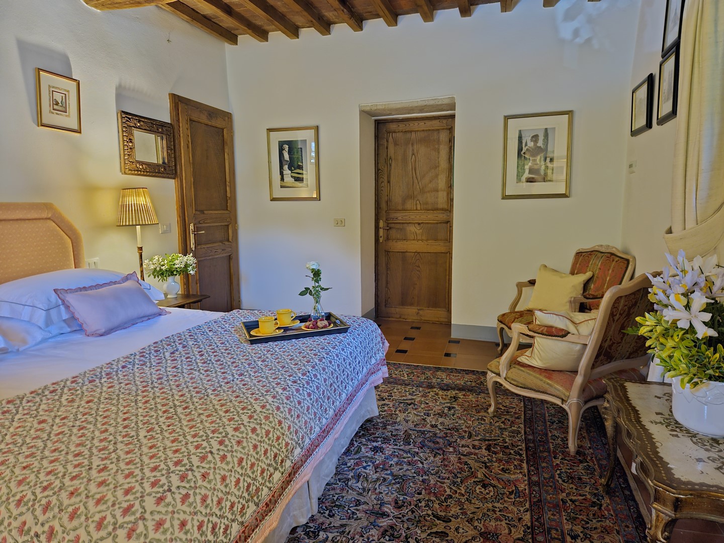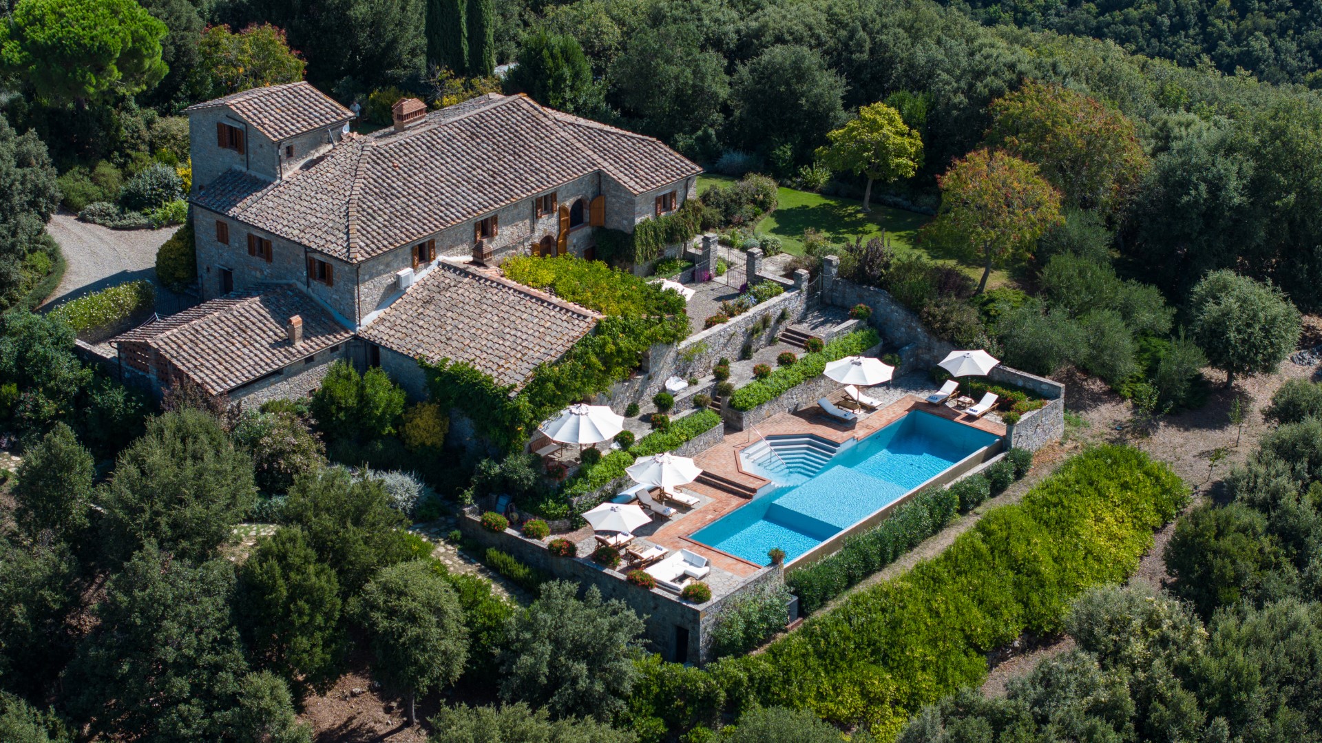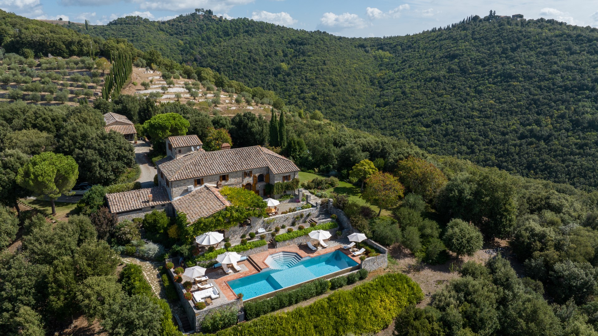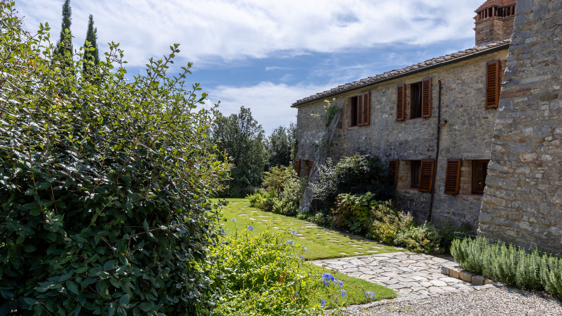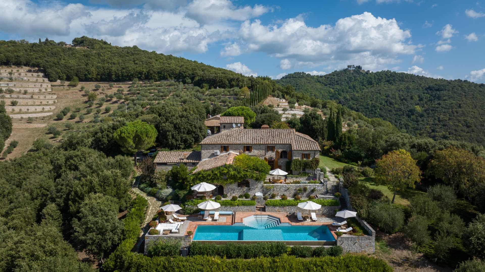 Just under 40 hectares of land delimit the immense spaces of this estate, an authentic green lung where an extensive patch of woodland (for the most part walkable) alternates with garrisons of olive trees planted along a terraced ridge. At the centre lies the majestic fenced park that frames the villa, extending for approximately one hectare on several well-connected levels which guarantee total and continuous use of all the set-up areas. Walking through it, along paved paths, stone steps and grassy surfaces, you come to a true botanical garden, designed to always be in bloom and enlivened by a multitude of variegated flowers and tall trees: lavender and rosemary bushes, agapantus, passion fruit, climbing roses, oleanders, geraniums, blue plumbago and rows of hydrangeas that border a wonderful path that encircles the villa. From the electric gate, at the end of a beautiful avenue of cypresses and then a short driveway leading to the parking area, you come to the charming entrance of the villa, surrounded by climbing ivy and wisteria. At the back is a large area with a table for outdoor dining, protected by a large umbrella, a barbecue, a ping pong table and various relaxation areas. The lower terrace, reached down two flights of steps, contains the beautiful pool area.Please notice that photos are taken in spring, therefore flower blossoming, and the colours of the gardens' grass could be different at the moment of your arrival at the villa.