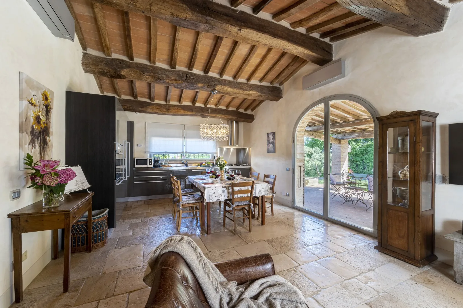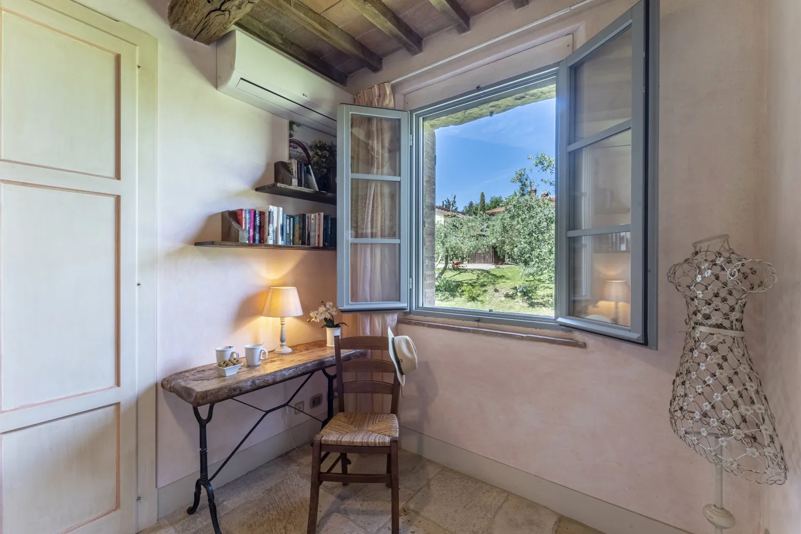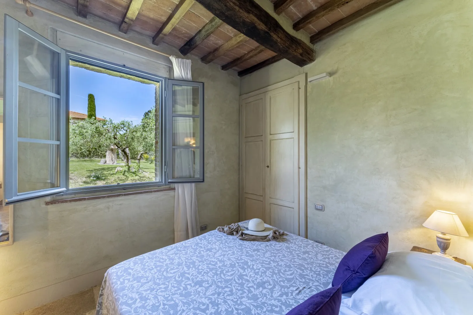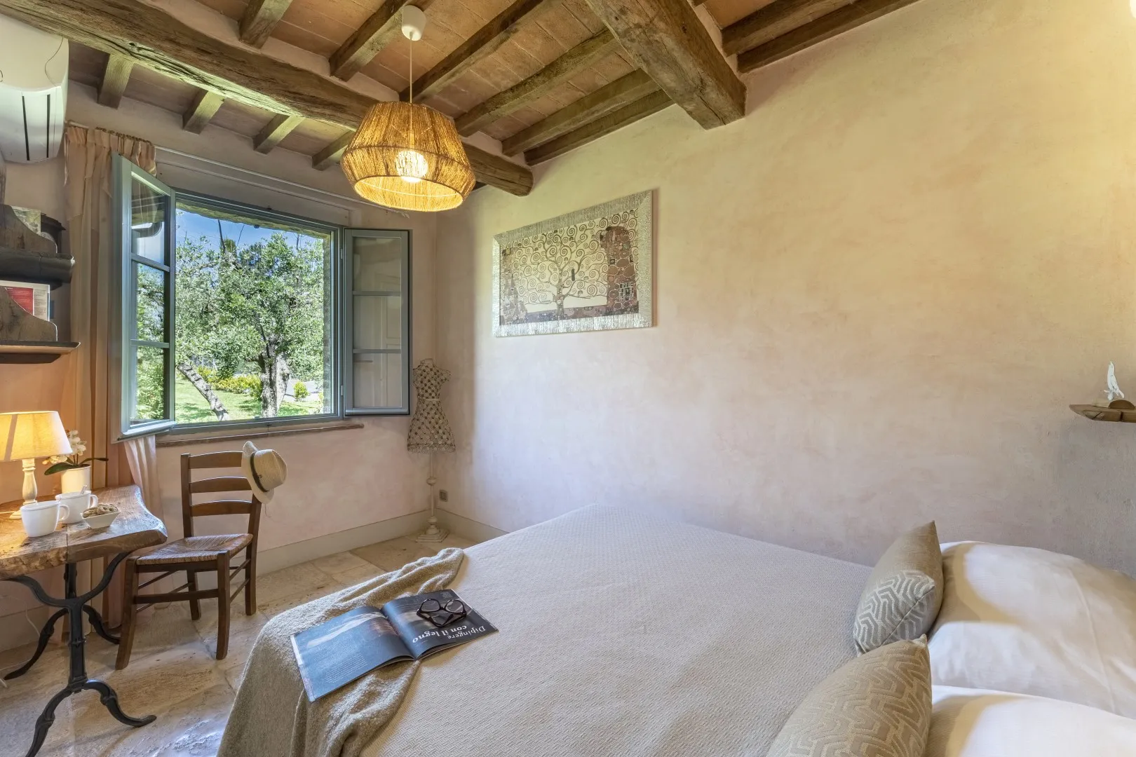 This fully air-conditioned historic farmhouse, originally a traditional hay-loft, features a spacious open-plan living area and a modern kitchen that opens onto a large portico — perfect for relaxing in the shade while enjoying the surrounding garden and countryside views. Ideal for families or groups seeking an authentic Tuscany holiday, Villa Oliveta combines rustic charm with modern comfort for a memorable stay.