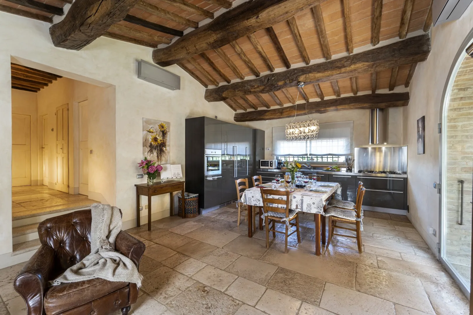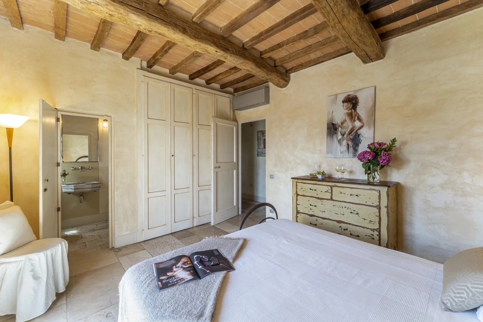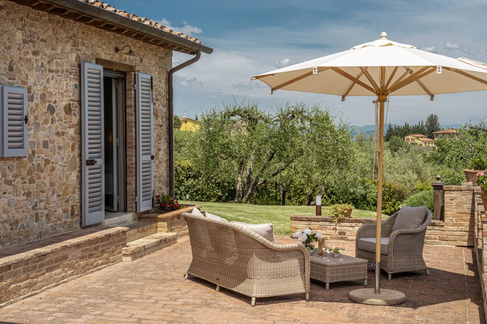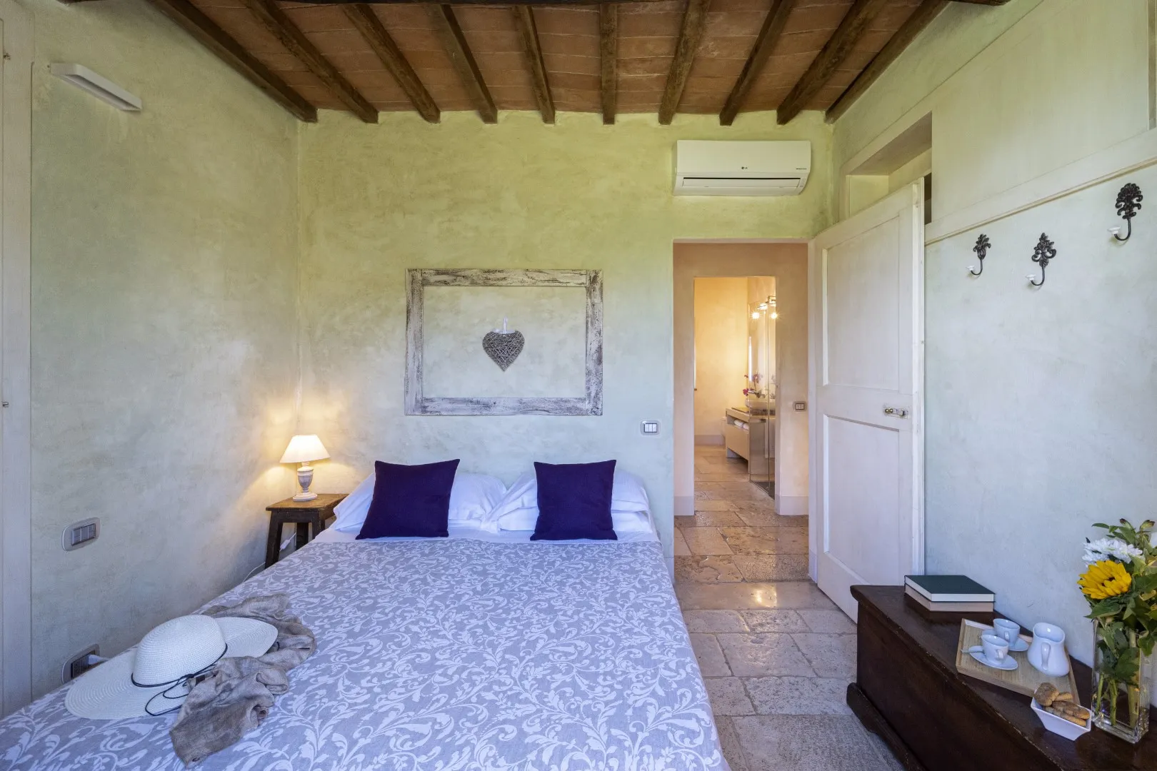 This fully air-conditioned historic farmhouse, originally a traditional hay-loft, features a spacious open-plan living area and a modern kitchen that opens onto a large portico — perfect for relaxing in the shade while enjoying the surrounding garden and countryside views. Ideal for families or groups seeking an authentic Tuscany holiday, Villa Oliveta combines rustic charm with modern comfort for a memorable stay.