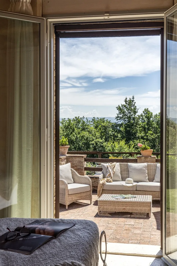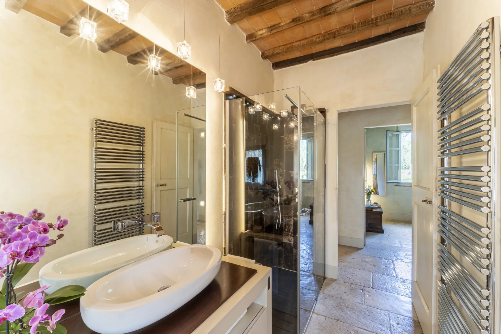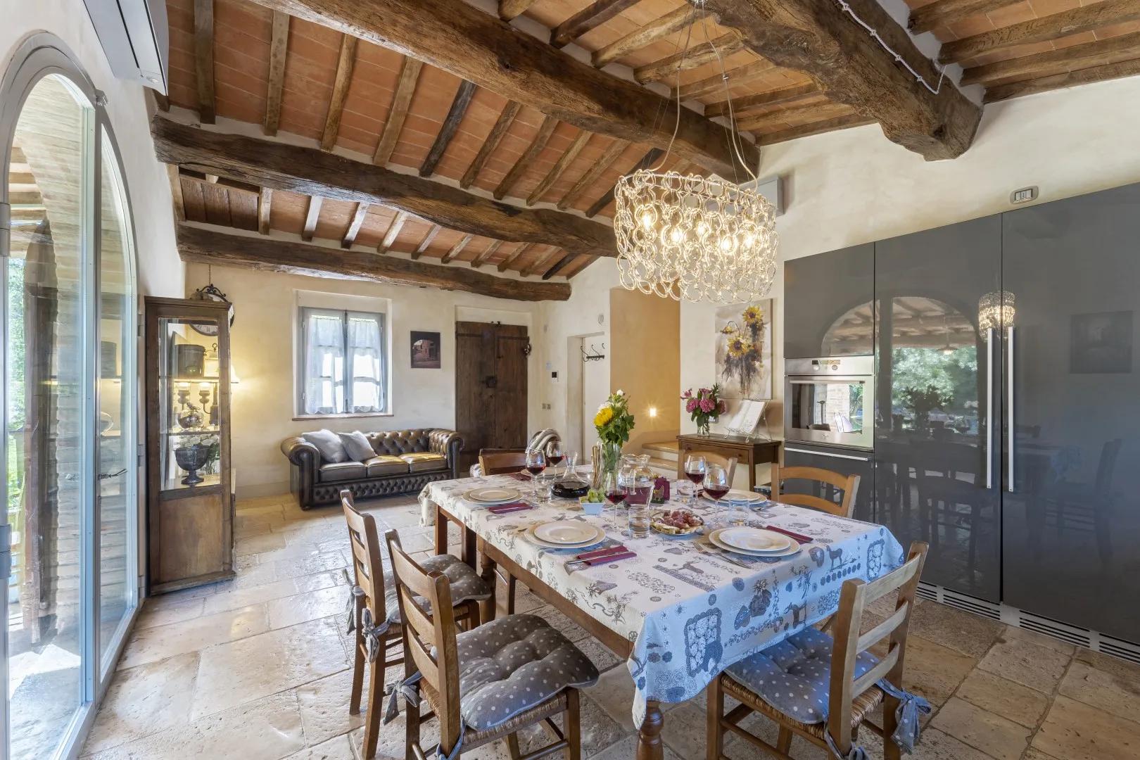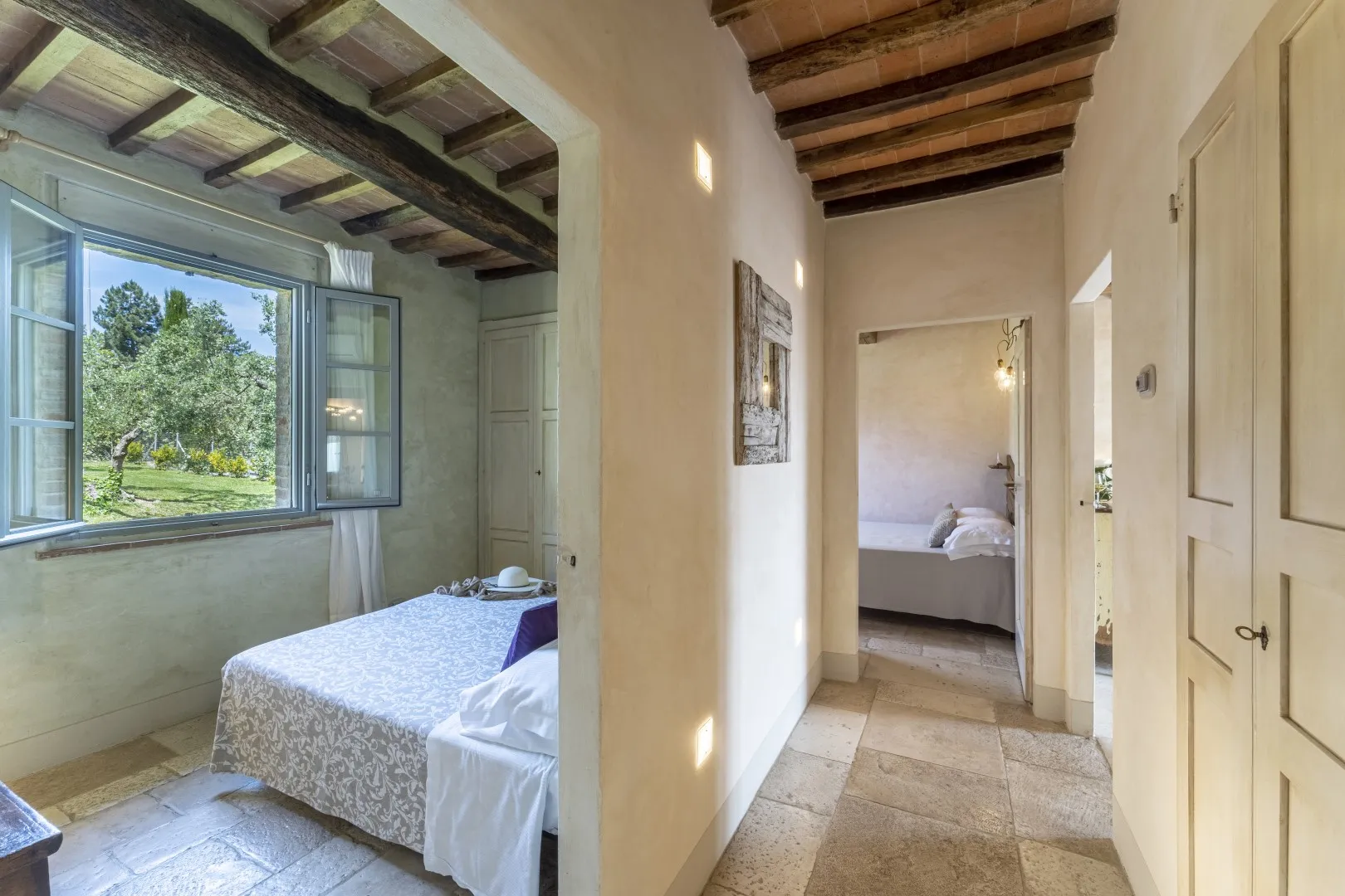 This fully air-conditioned historic farmhouse, originally a traditional hay-loft, features a spacious open-plan living area and a modern kitchen that opens onto a large portico — perfect for relaxing in the shade while enjoying the surrounding garden and countryside views. Ideal for families or groups seeking an authentic Tuscany holiday, Villa Oliveta combines rustic charm with modern comfort for a memorable stay.