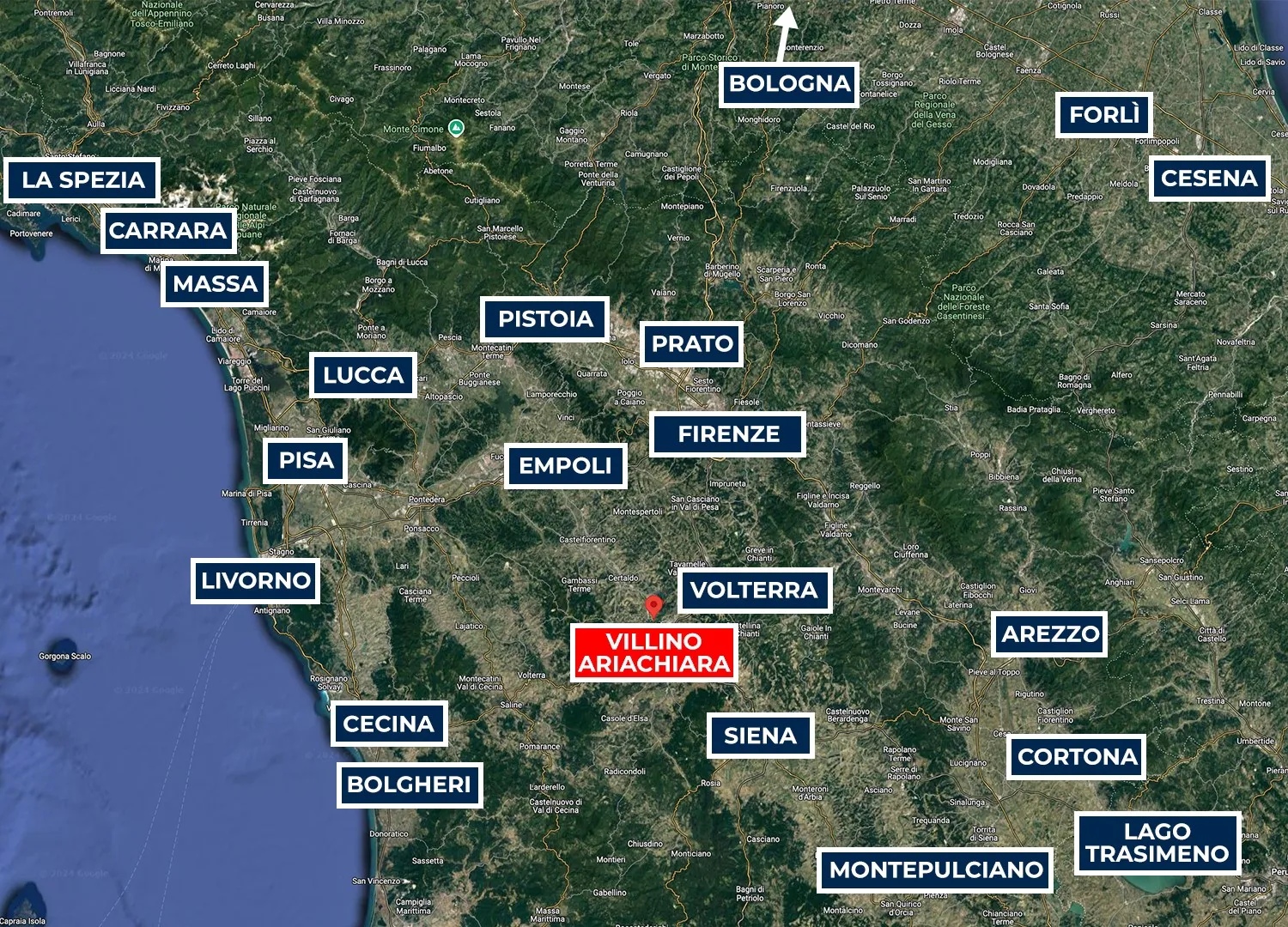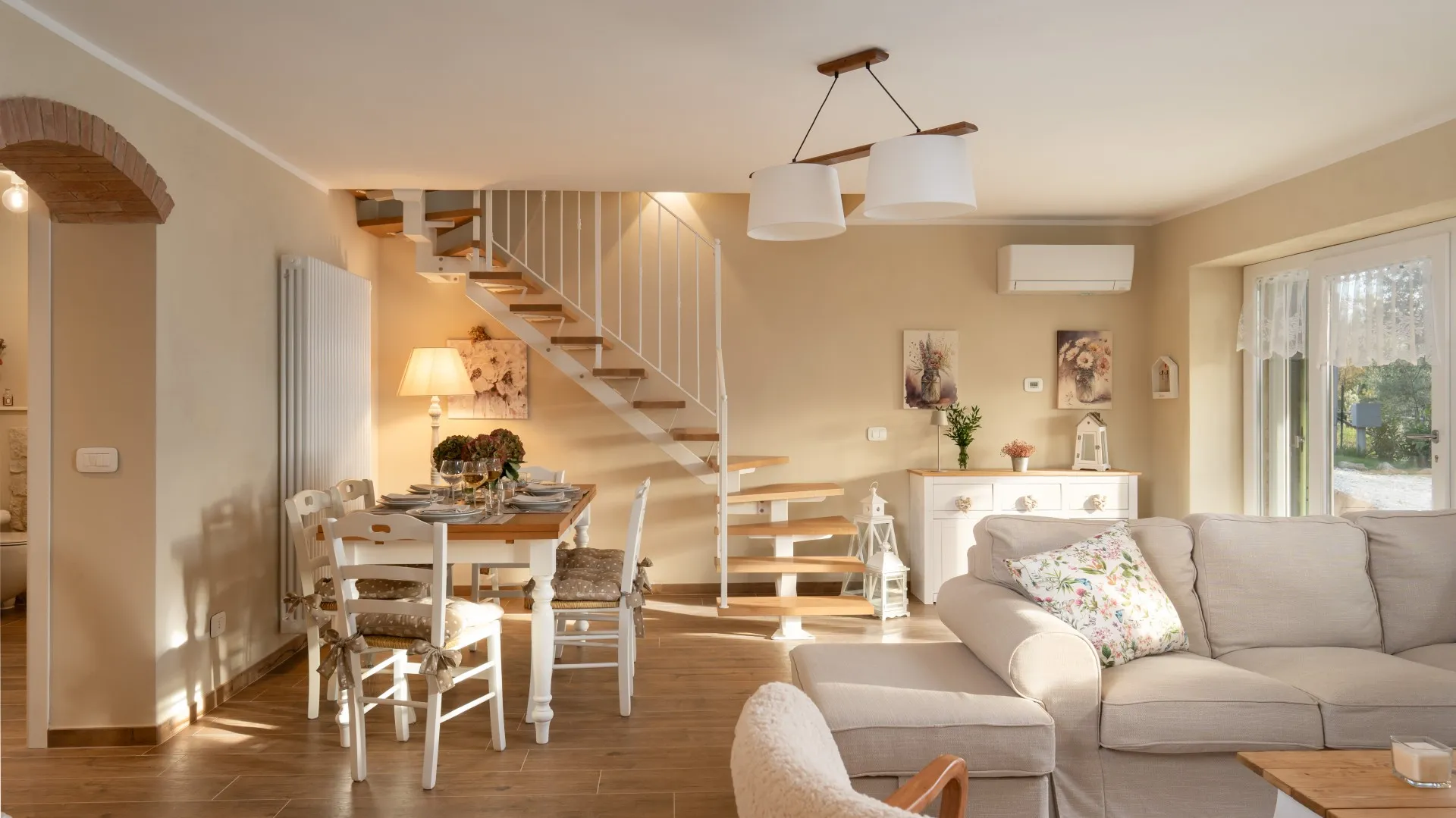 Bathed in the golden light of the Tuscan hills, just a short distance from the medieval borgo of Volterra, Villino Ariachiara is the ideal destination for those seeking an authentic, charming experience in the countryside. The exposed stone facades, the wooden beams and the terracotta floors reflect rural tradition with natural elegance.