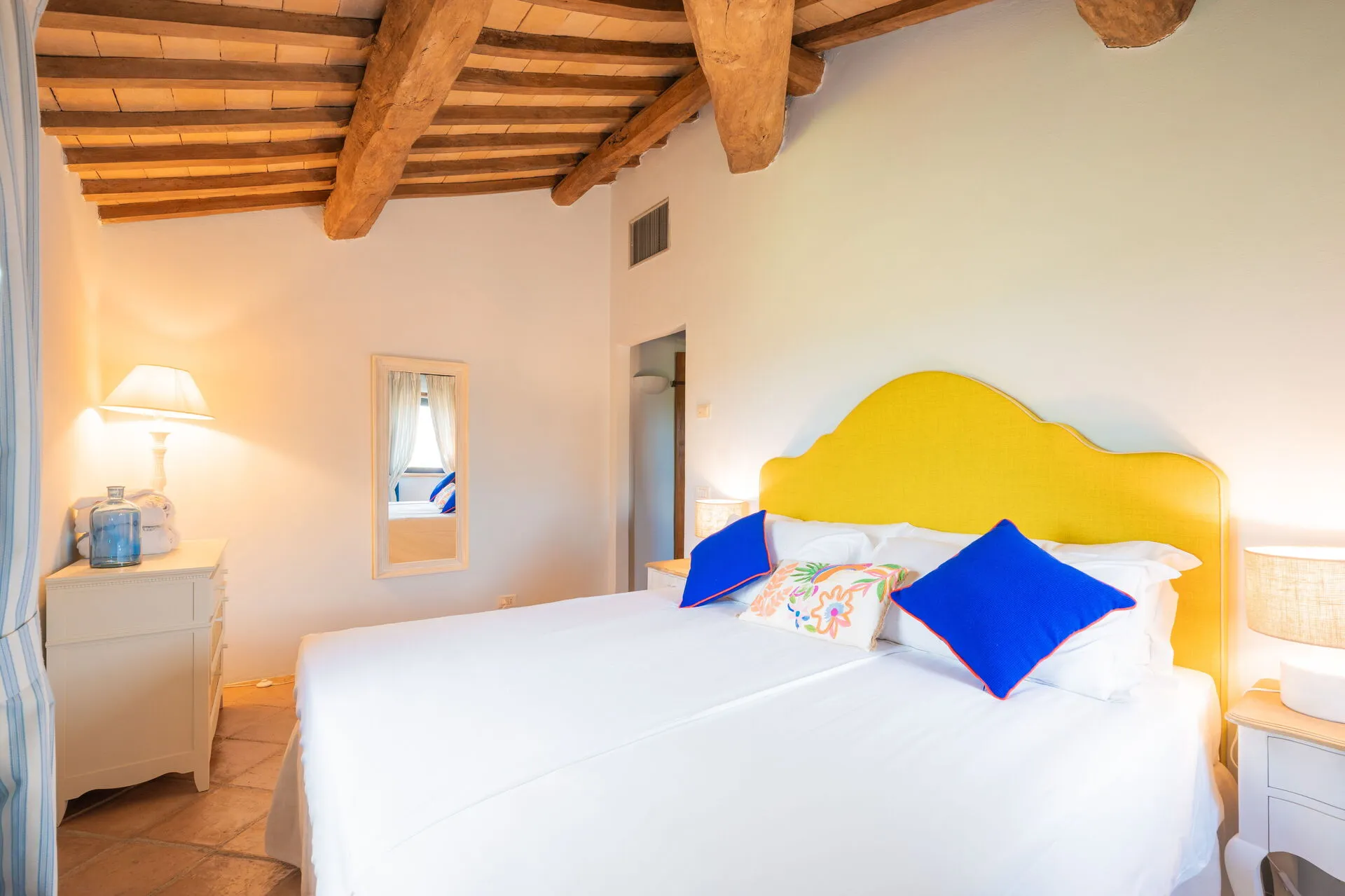 The bedrooms are distributed between the sumptuous main villa and the cosy flat. Within the main villa, there are three elegant bedrooms with luxurious king-size beds and en-suite bathrooms, while three other bedrooms offer two comfortable single beds each, one of which has an en-suite bathroom.