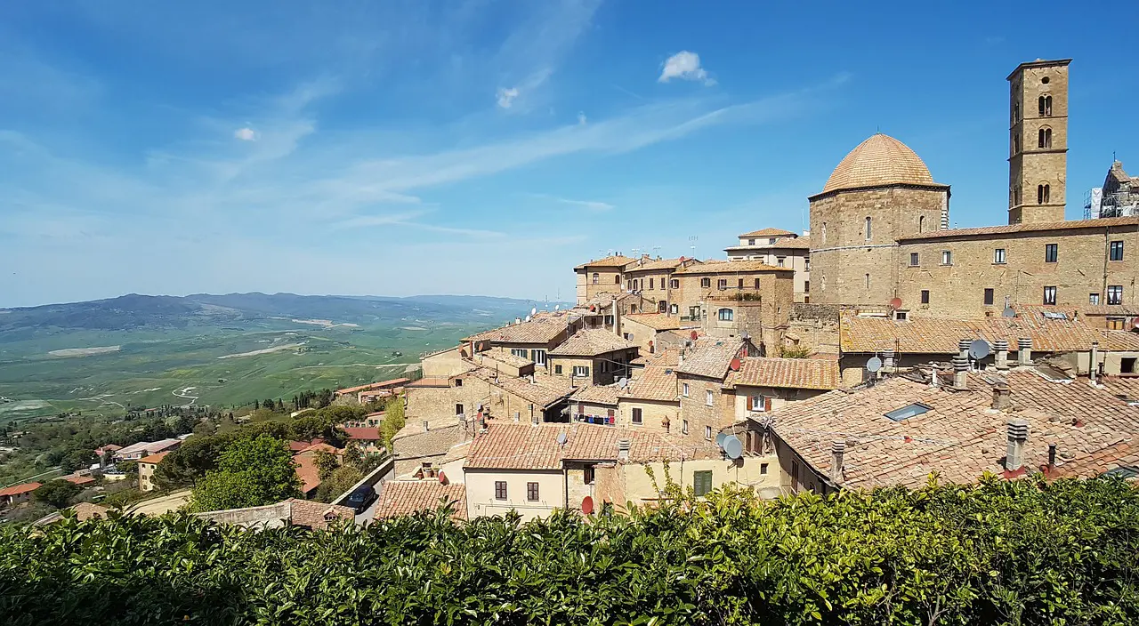 Walking through its cobblestone streets, visitors can admire landmarks such as the Roman Theatre, the Palazzo dei Priori, and the Cathedral of Santa Maria Assunta, all set within a timeless landscape of rolling hills and golden light.