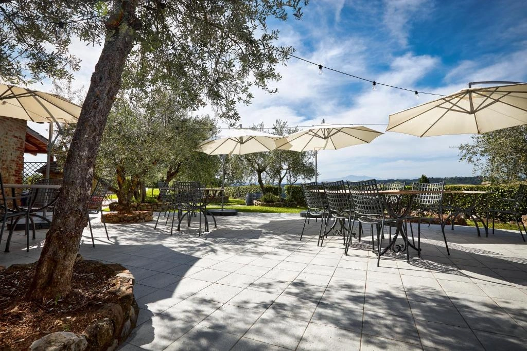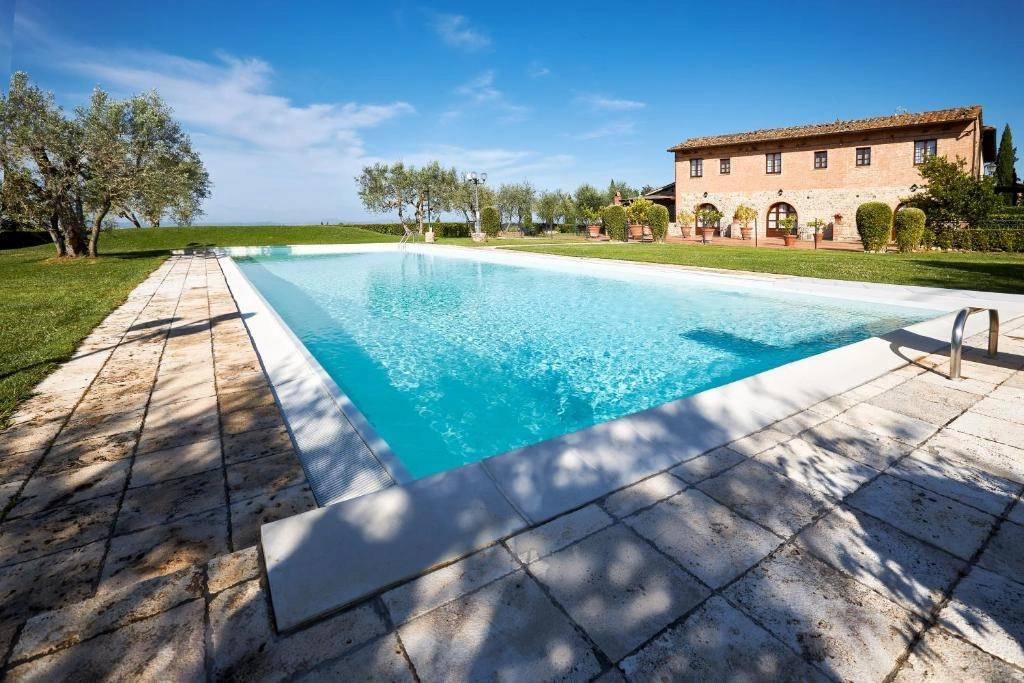 The property is surrounded by a private one-hectare park featuring a beautiful swimming pool where guests can relax in the sun while enjoying breathtaking views over the Tuscan hills.