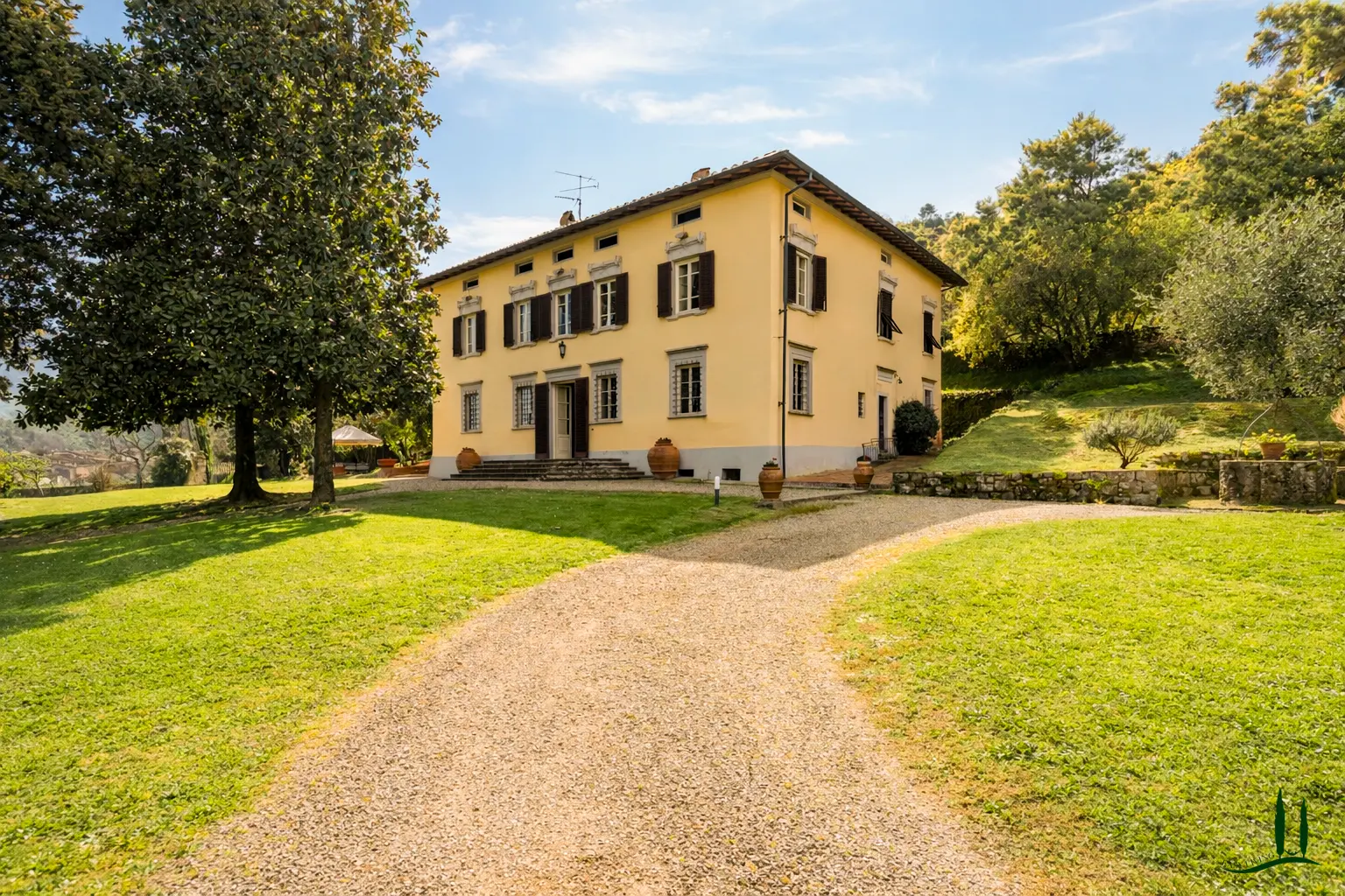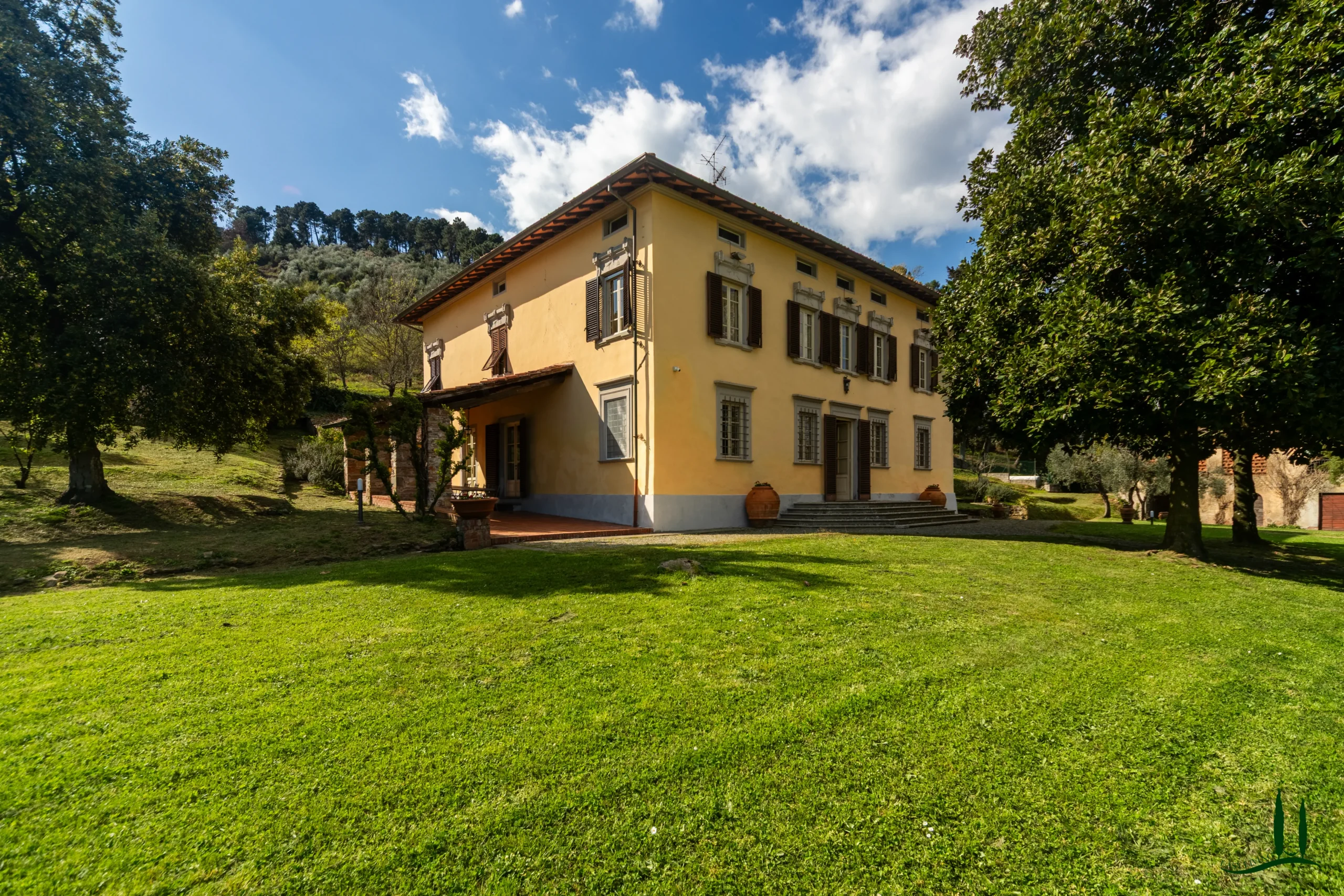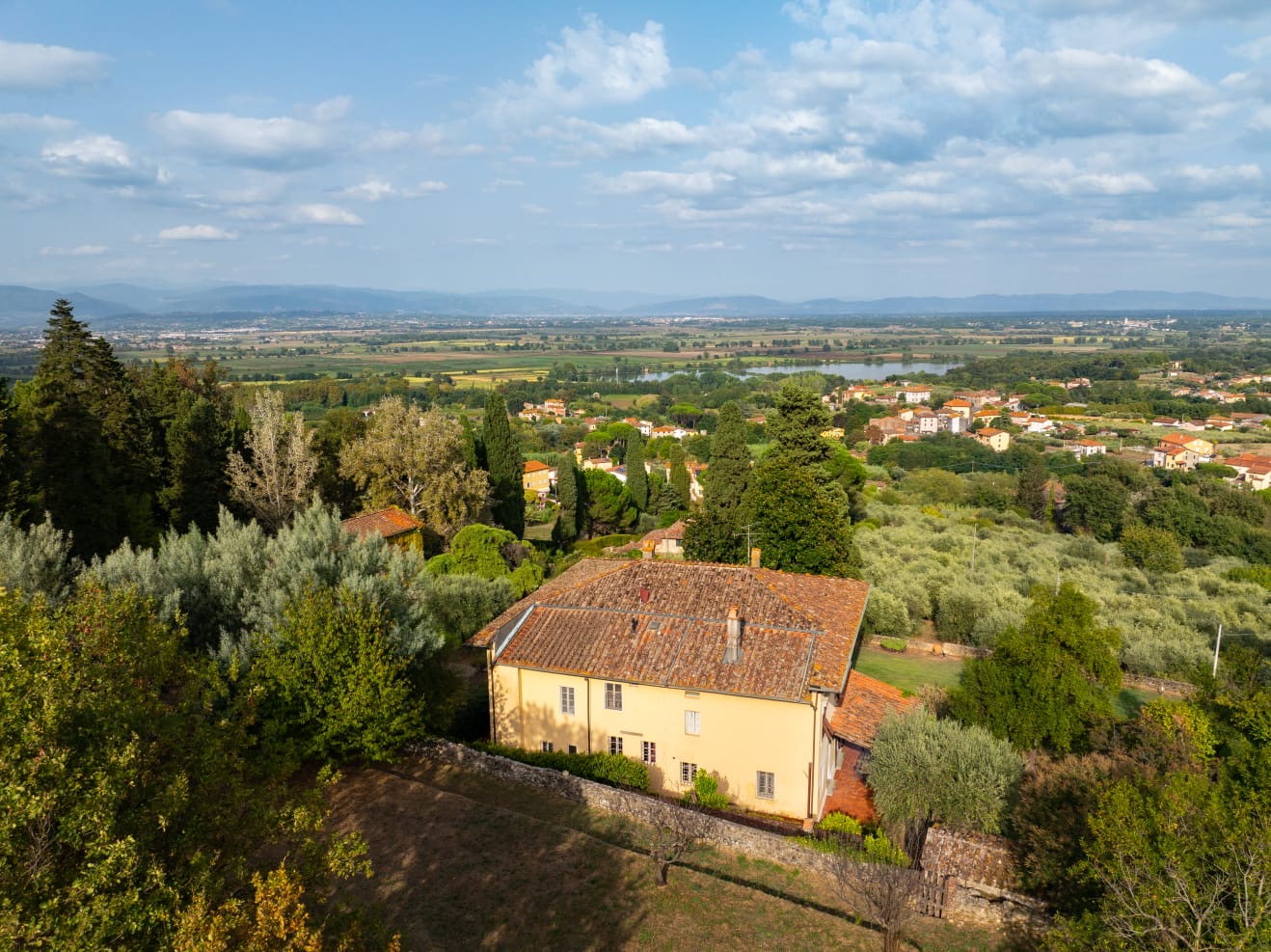 Nestled among the rolling hills south of Lucca, in a commanding panoramic position yet just a short distance from a charming village, this exquisite period villa embodies a rare blend of historic elegance and the tranquil beauty of the Tuscan countryside. Surrounded by a beautifully maintained park dotted with olive trees, the property offers enchanting views and an atmosphere of timeless charm.