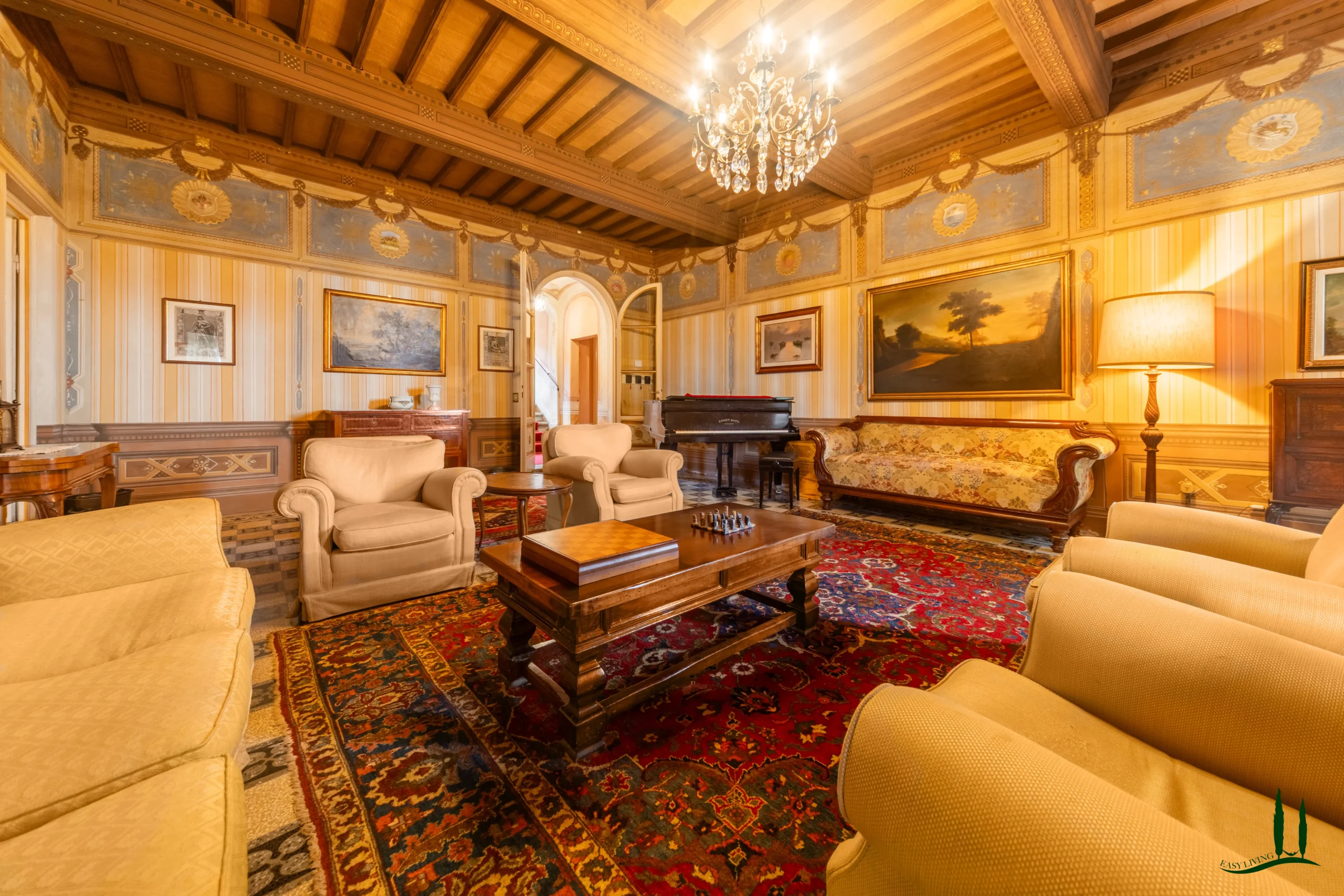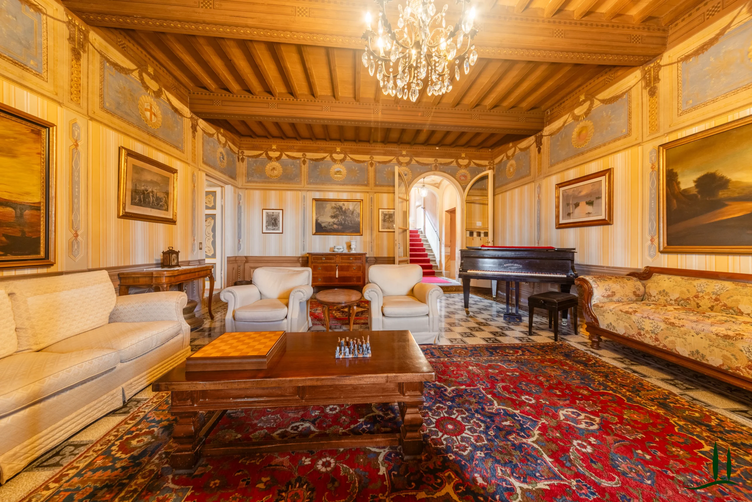 The villa has been meticulously restored with great care and respect for its heritage, revealing stunning decorative features that had long been hidden. Frescoes, painted details, and ornamental elements have been brought back to life through a painstaking conservation process, giving each room a unique character and refined beauty. The additional outbuildings, currently in need of renovation, offer exciting potential for conversion into guest accommodations or service areas. Within the park, a 12 × 6 meter swimming pool with solarium provides the perfect setting to relax and enjoy the peaceful surroundings.