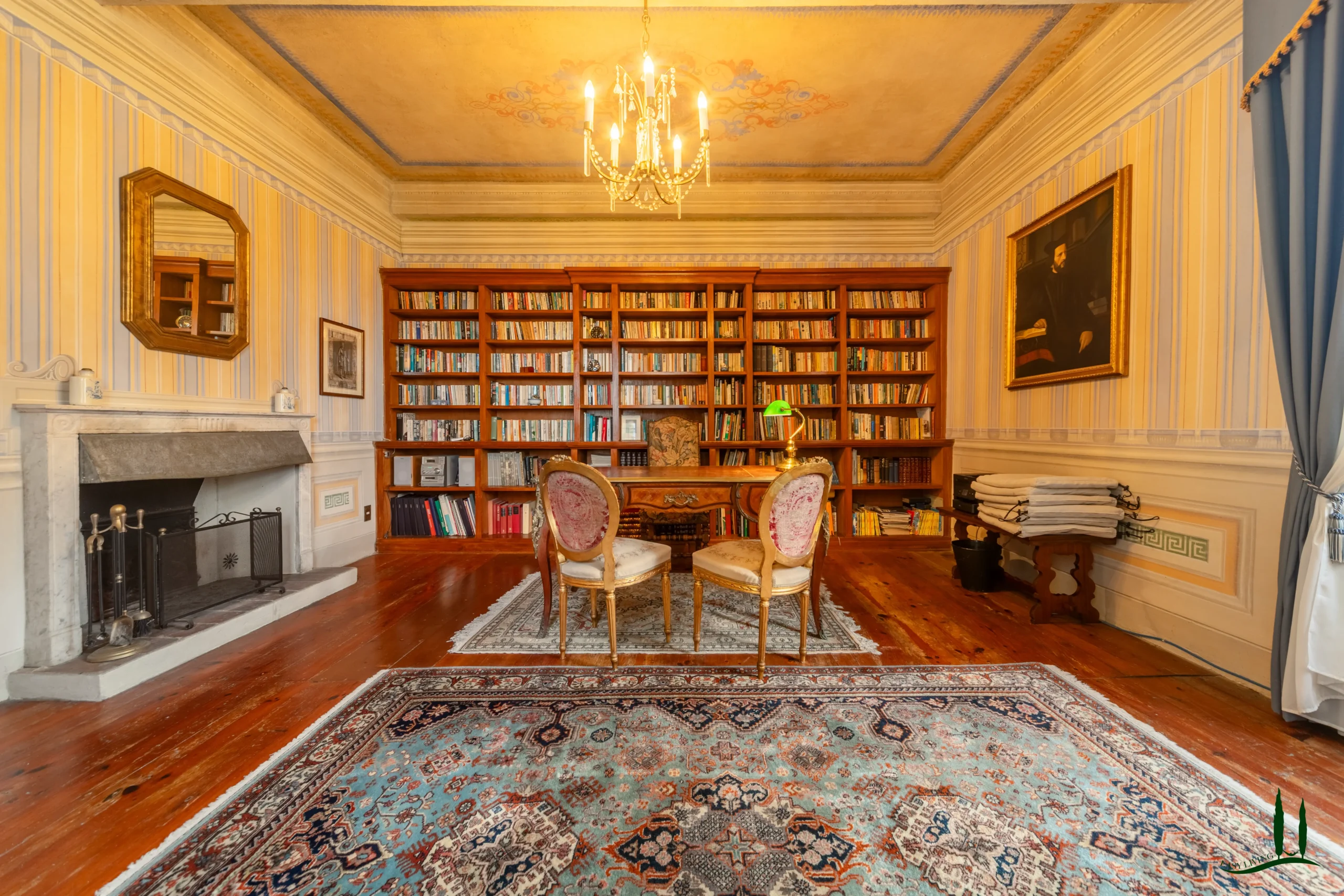The main villa (approximately 470 sqm) is arranged over four levels and offers generous, well-balanced living spaces. The basement houses a large cellar, currently used for storage. On the ground floor, an elegant reception hall is complemented by a cozy sitting room, a bright double dining room opening onto a portico, a kitchen, private study, a bedroom with bathroom, a charming private chapel, and a laundry area tucked beneath the staircase. The first floor features an additional living room, a master bedroom with en-suite bathroom, four further bedrooms, and two bathrooms. The top floor includes partially habitable attic spaces, offering further versatility.