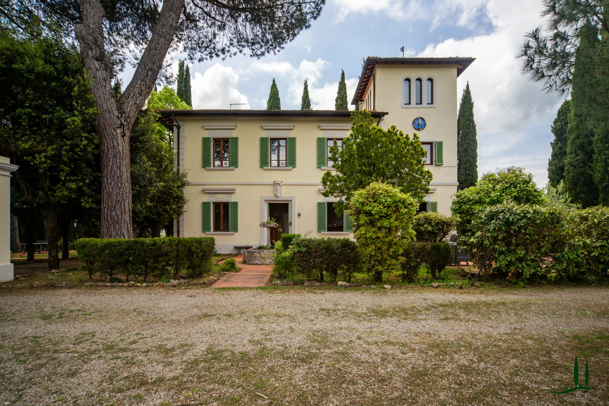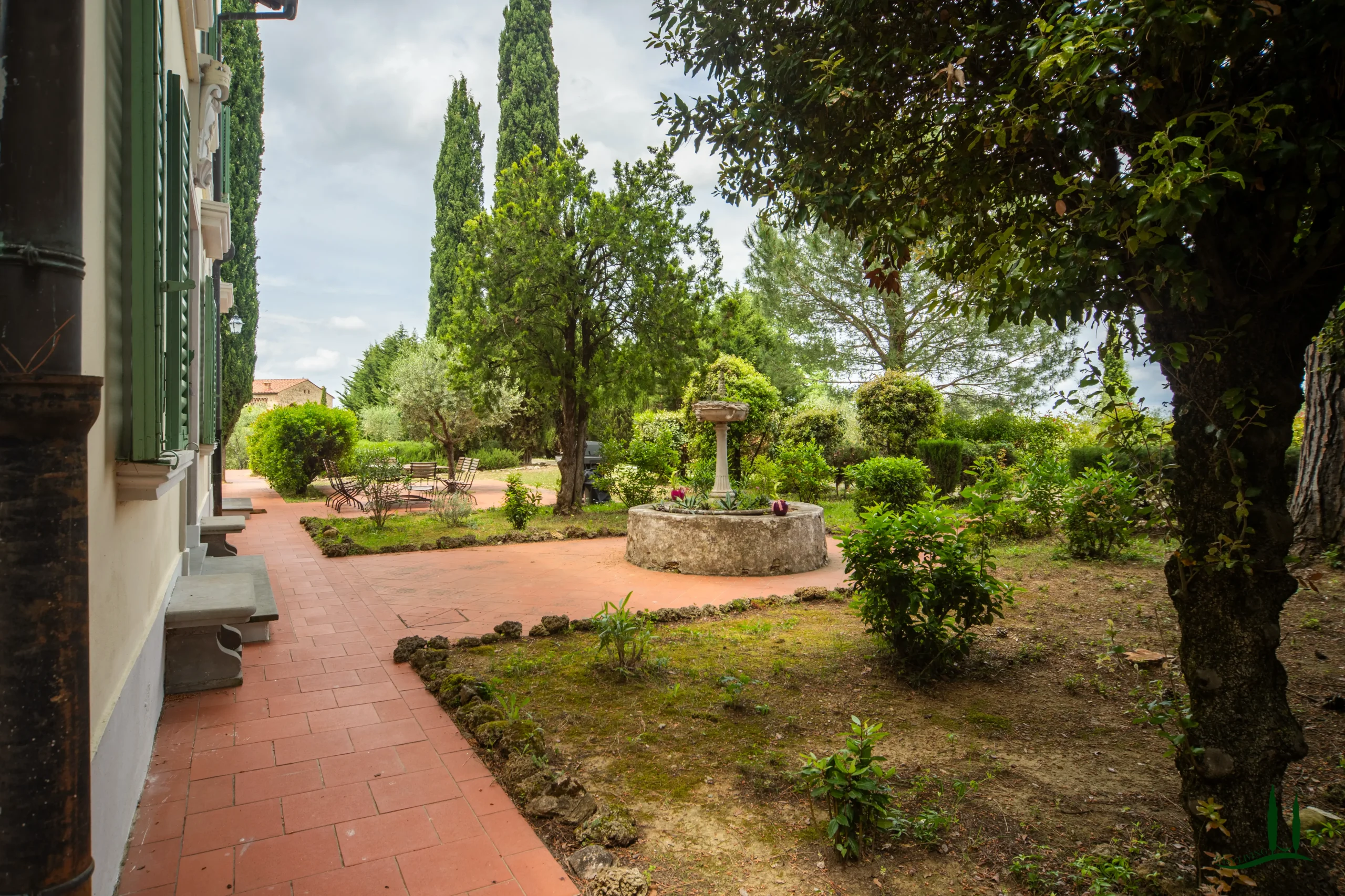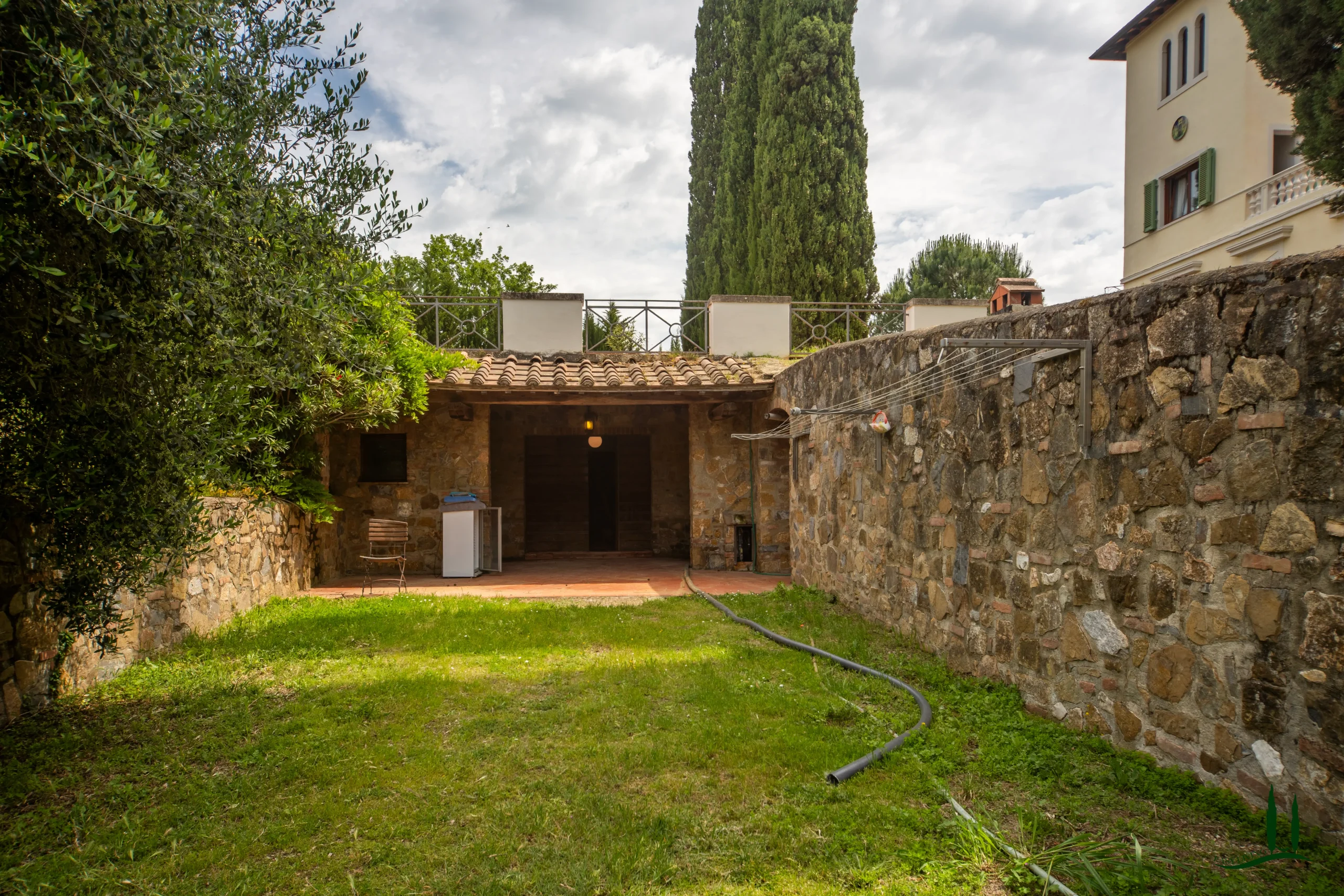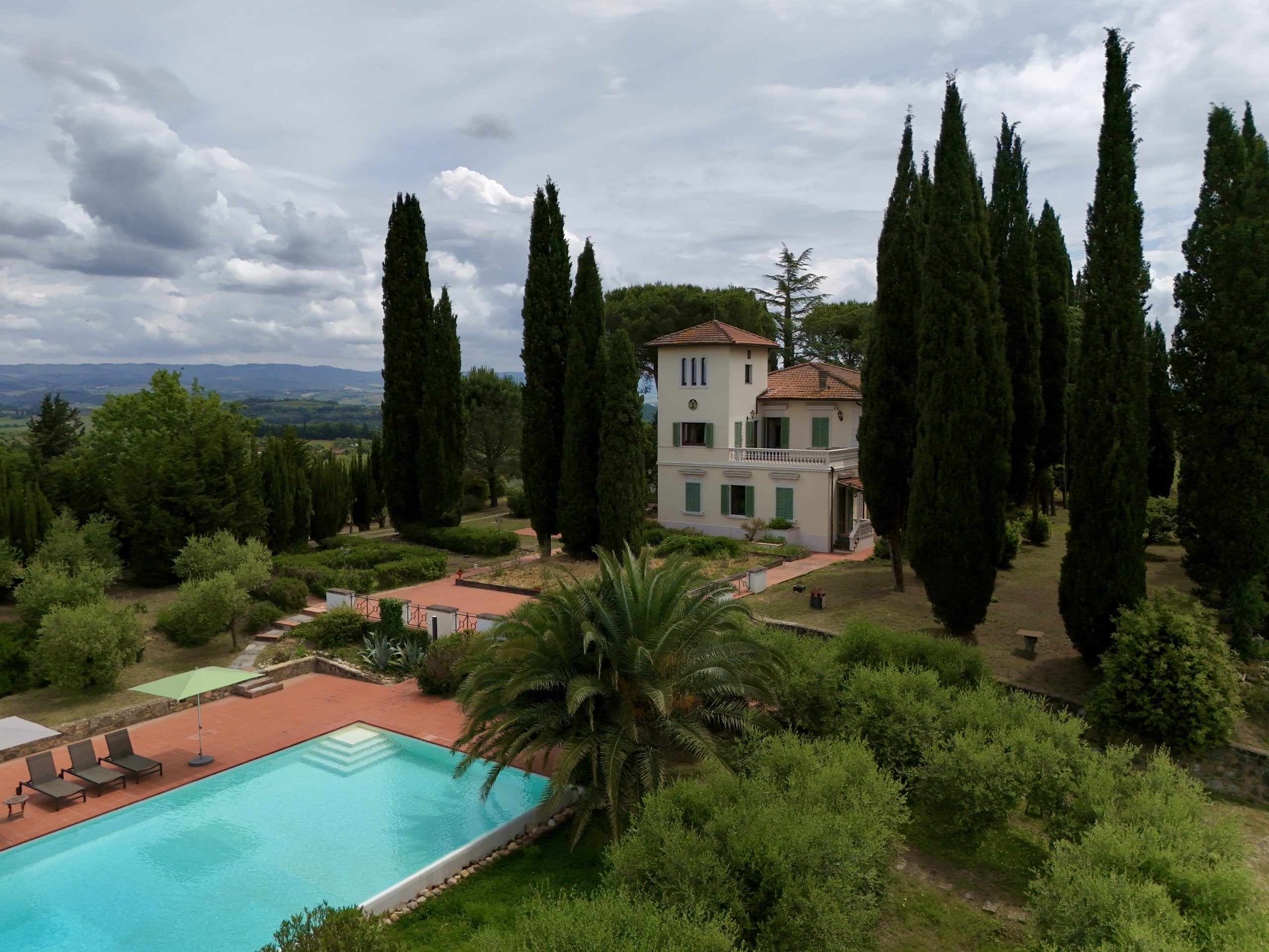 Surrounded by the gentle rolling hills of Tuscany, covered in vineyards and olive groves, the estate boasts cinematic beauty with its century-old cypress trees, evoking the charm of Under the Tuscan Sun. The 3,000 sqm garden is perfectly sized for easy maintenance—ideal for remote management—while still offering space to enjoy nature, including 50 mature olive trees.