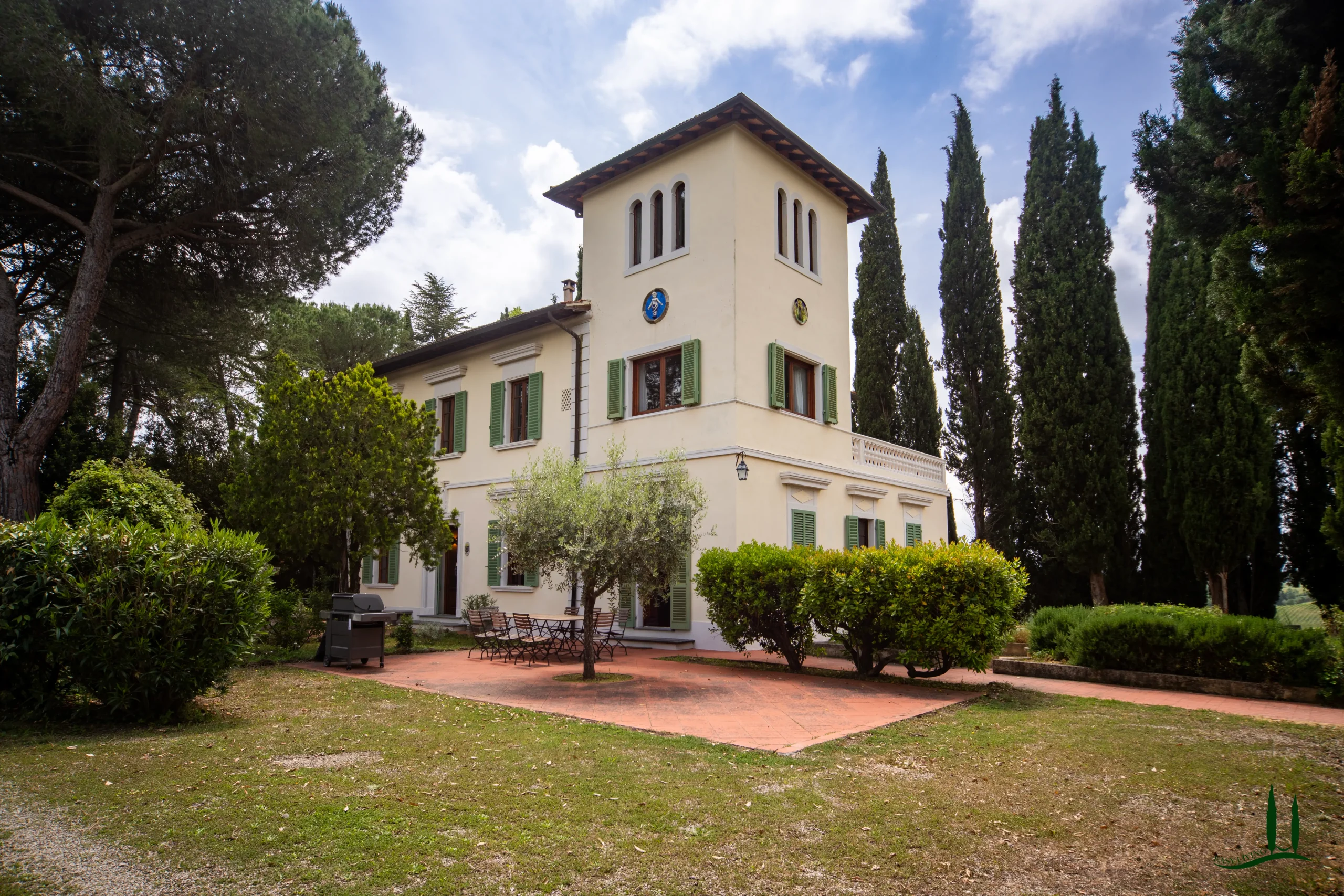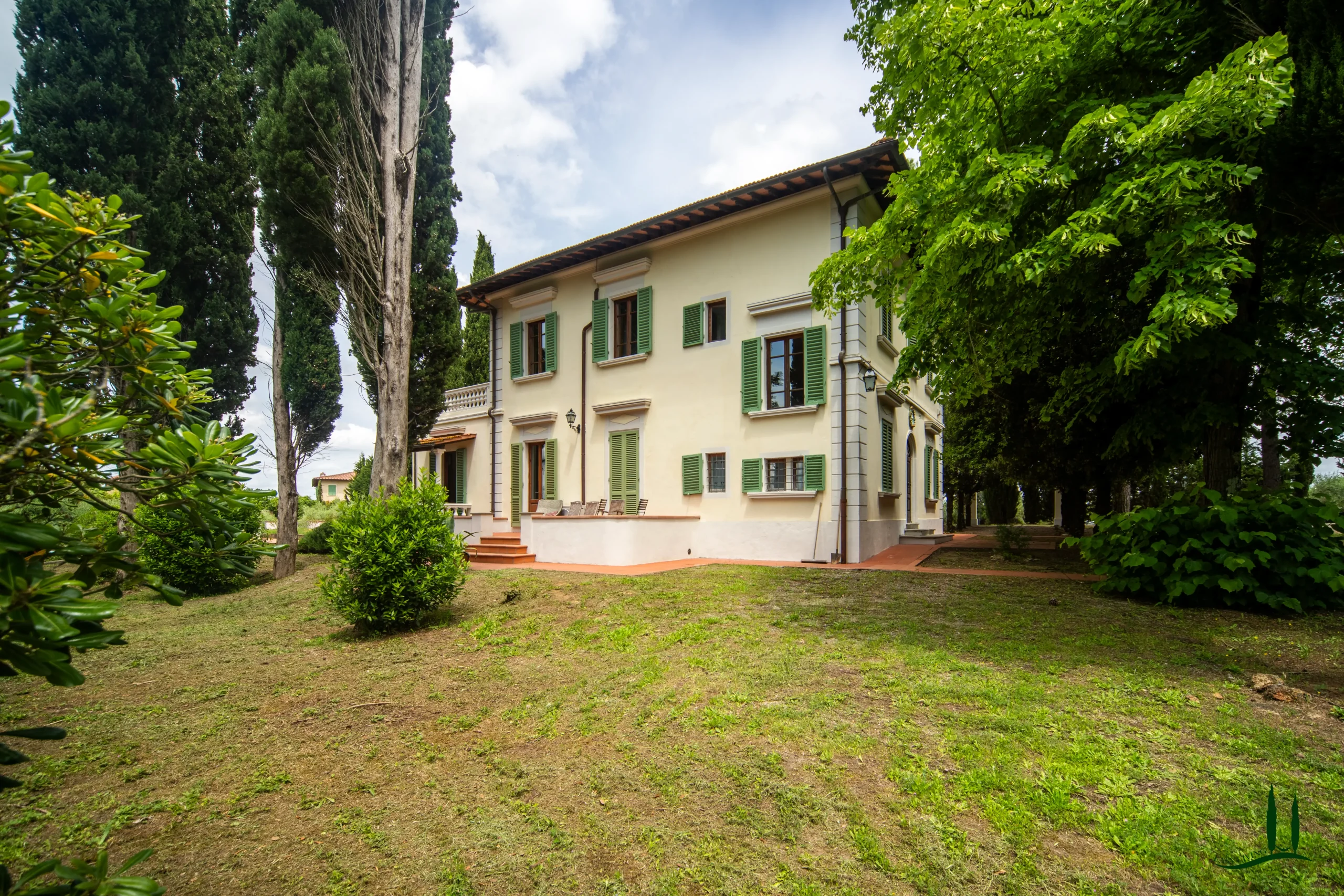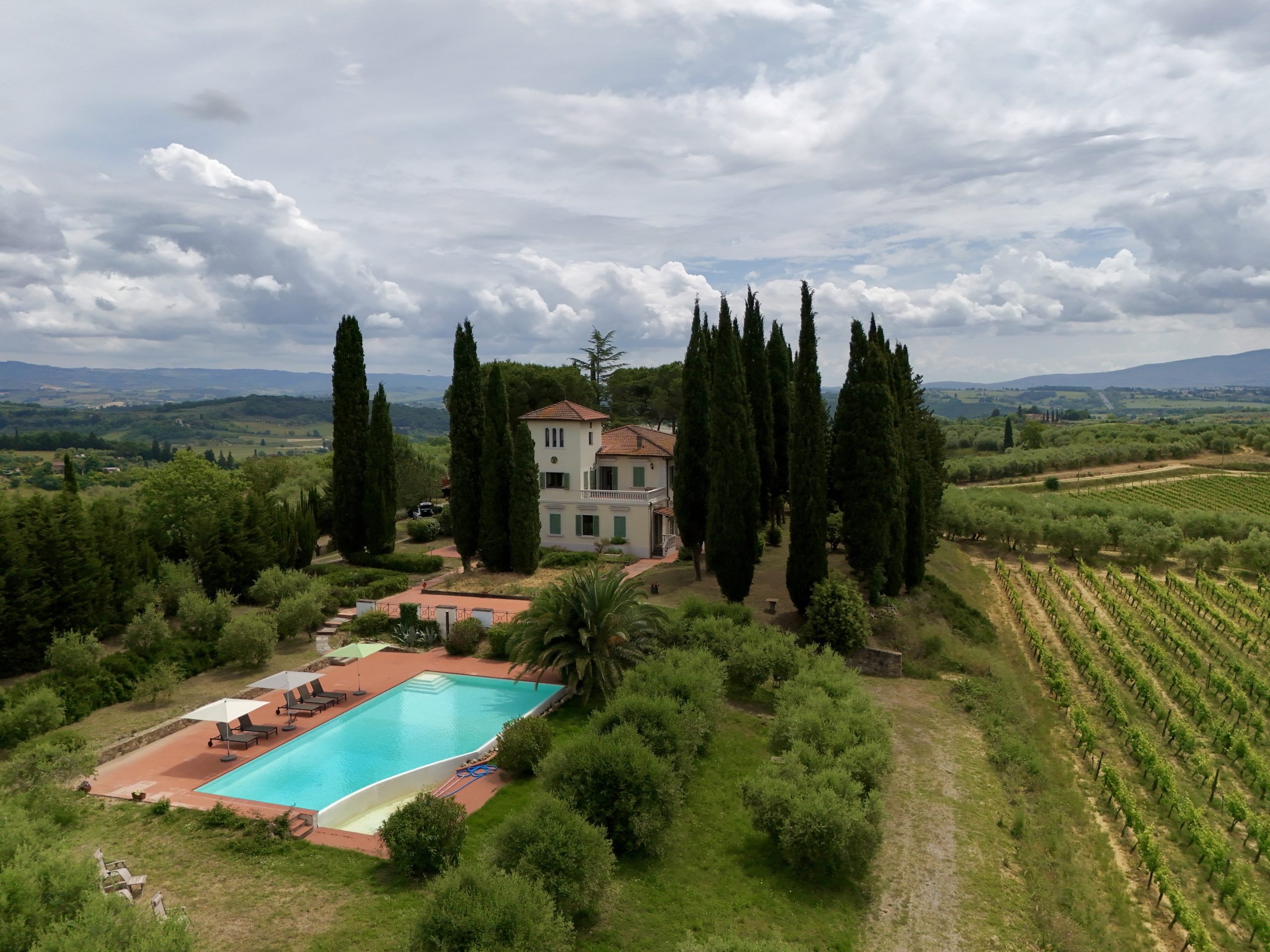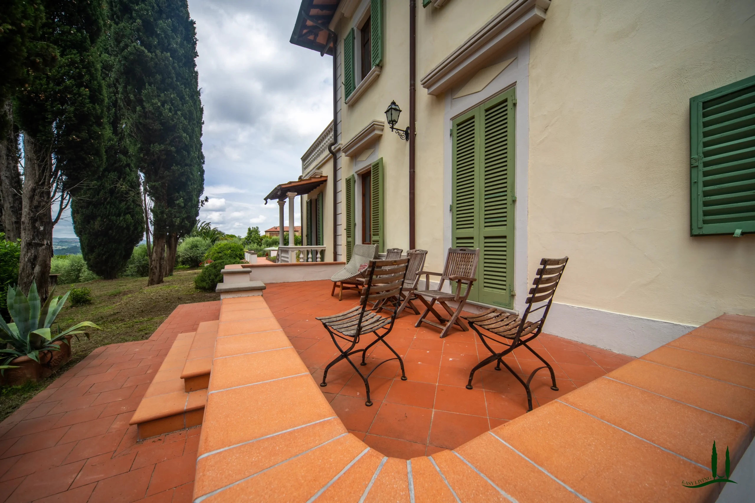 Surrounded by the gentle rolling hills of Tuscany, covered in vineyards and olive groves, the estate boasts cinematic beauty with its century-old cypress trees, evoking the charm of Under the Tuscan Sun. The 3,000 sqm garden is perfectly sized for easy maintenance—ideal for remote management—while still offering space to enjoy nature, including 50 mature olive trees.
