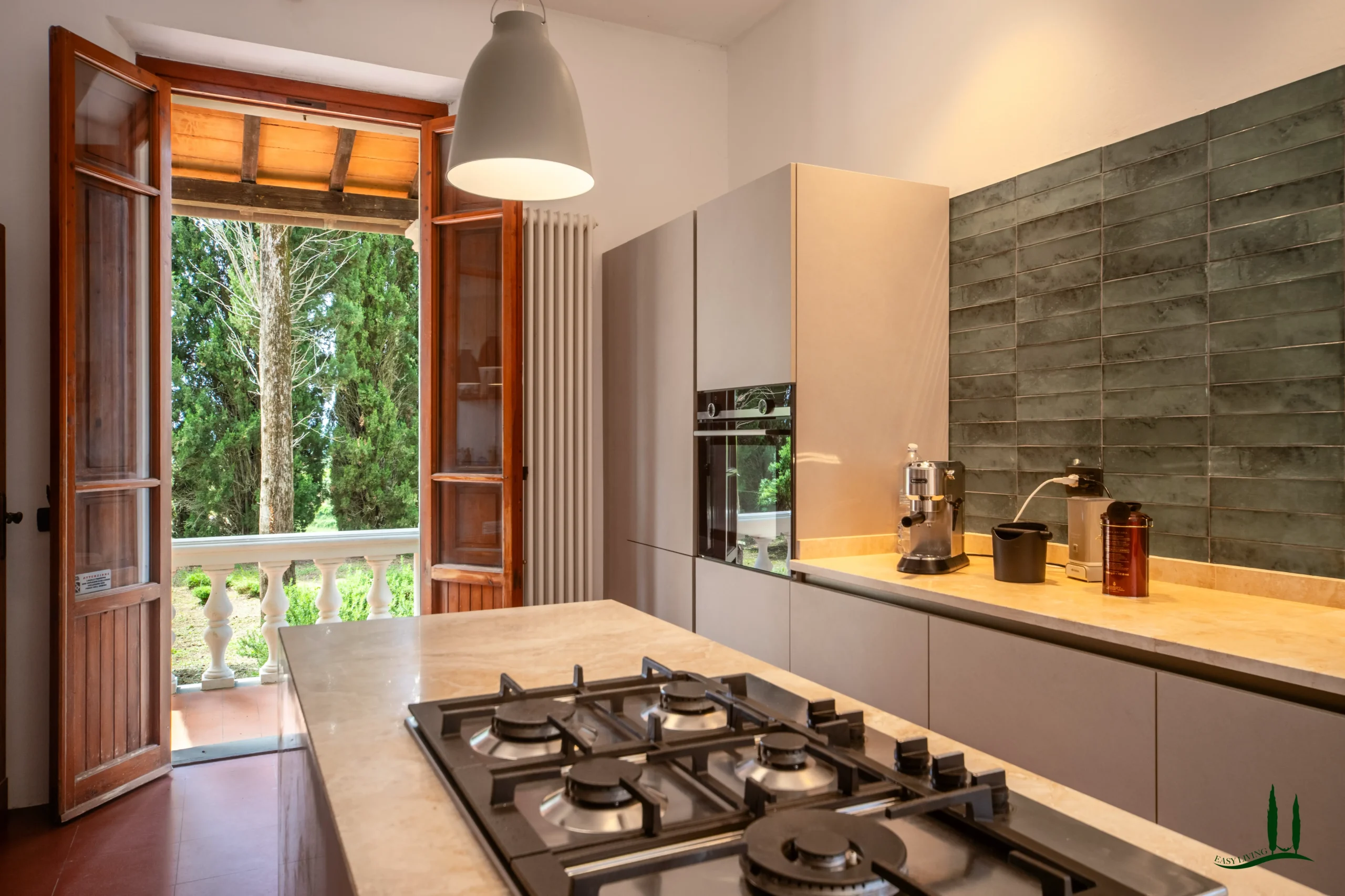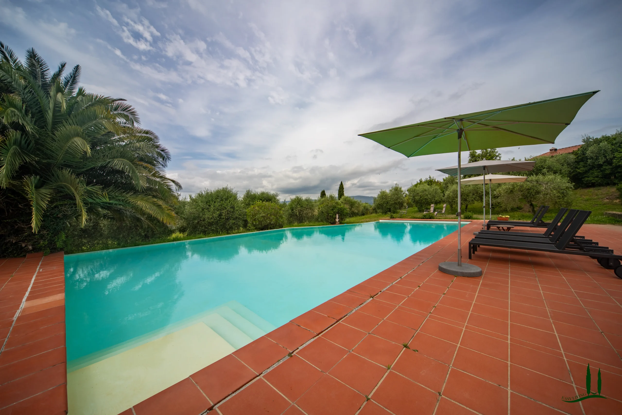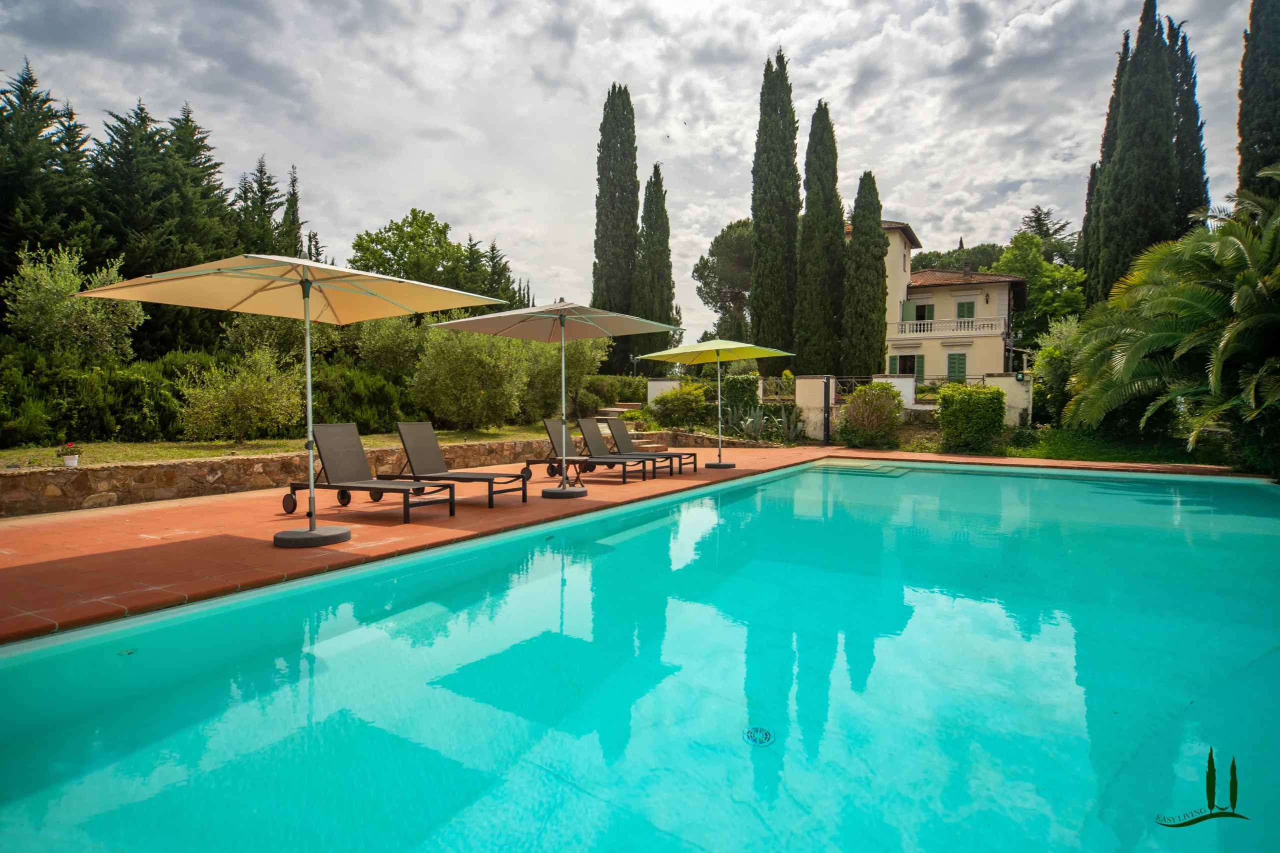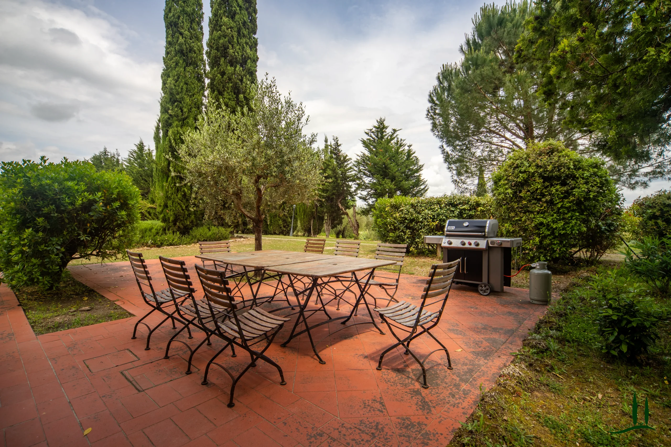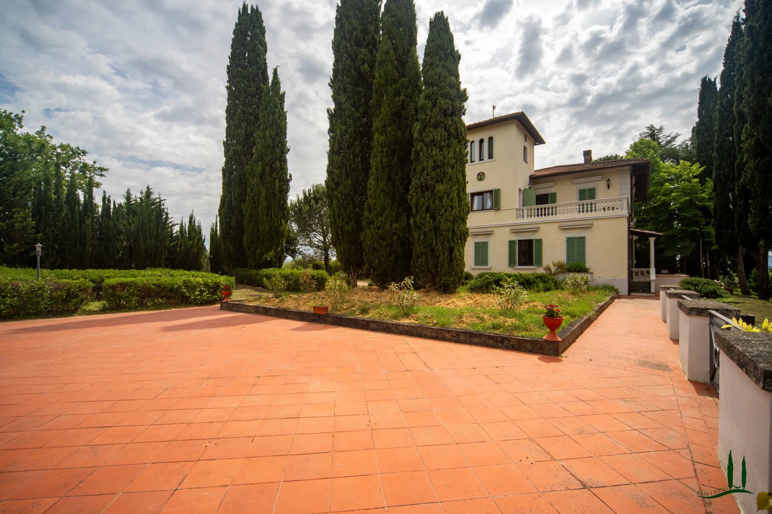 Surrounded by the gentle rolling hills of Tuscany, covered in vineyards and olive groves, the estate boasts cinematic beauty with its century-old cypress trees, evoking the charm of Under the Tuscan Sun. The 3,000 sqm garden is perfectly sized for easy maintenance—ideal for remote management—while still offering space to enjoy nature, including 50 mature olive trees.