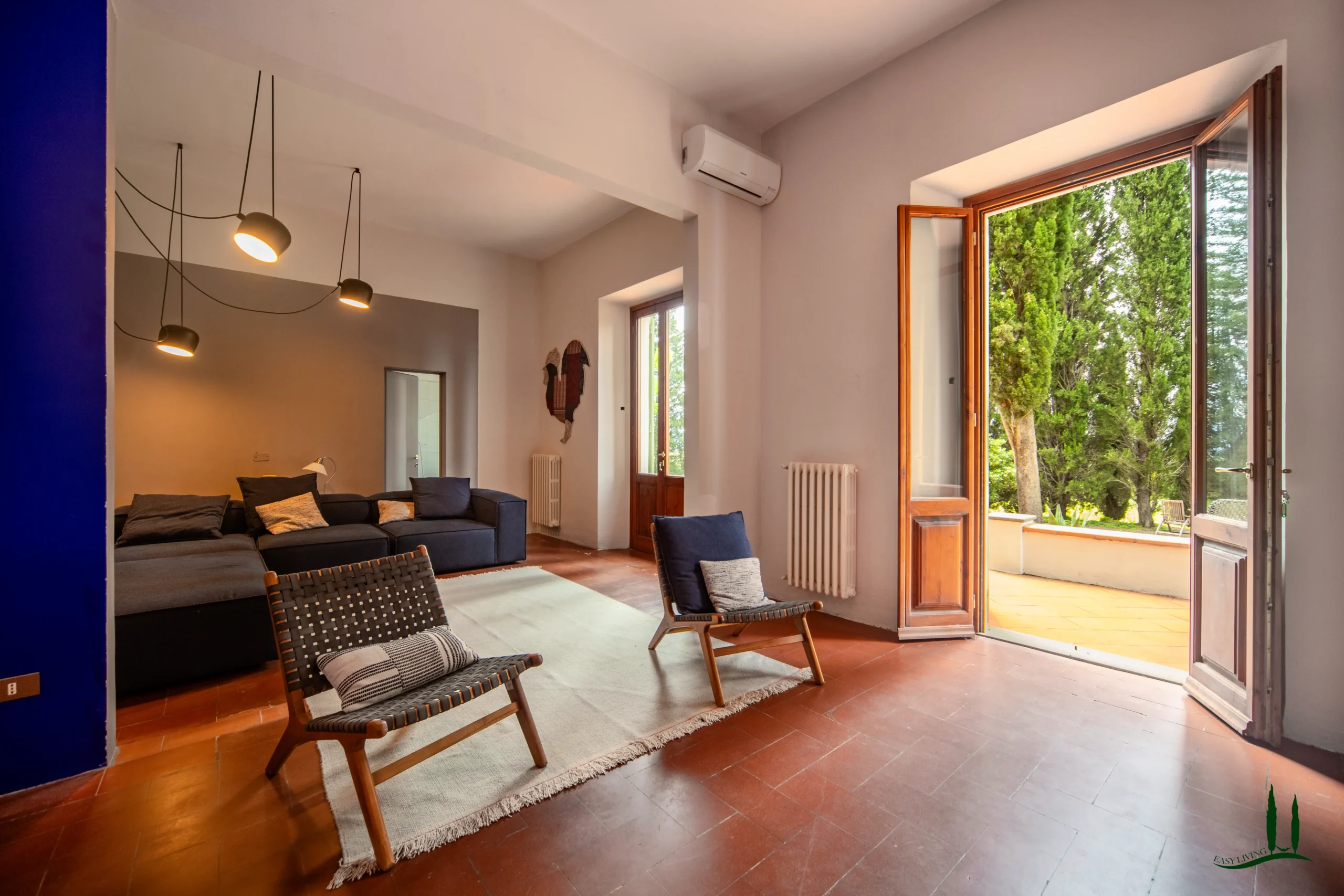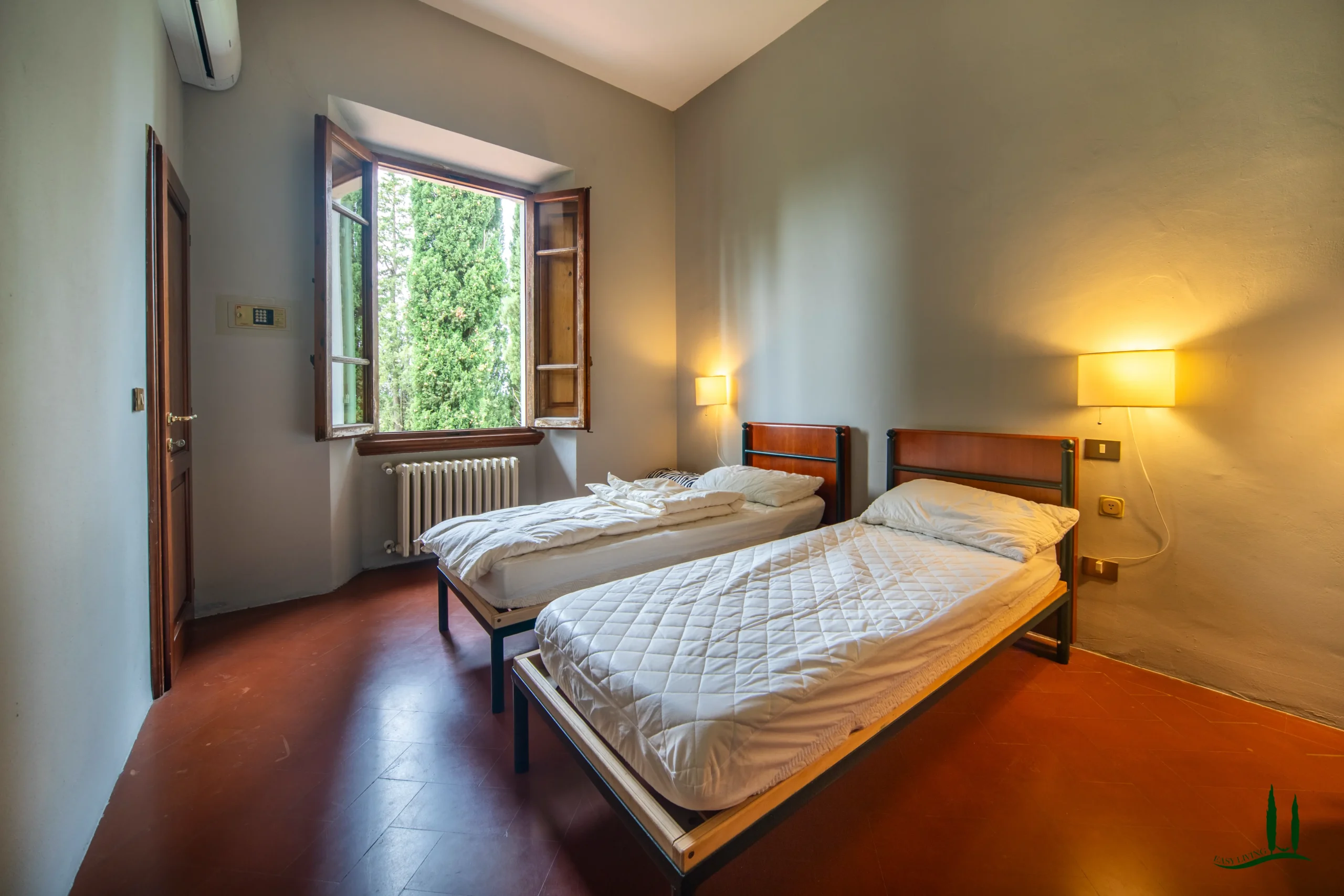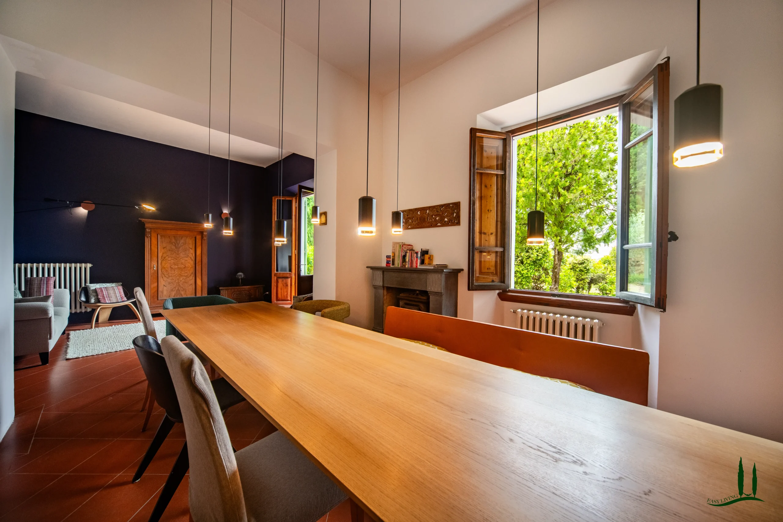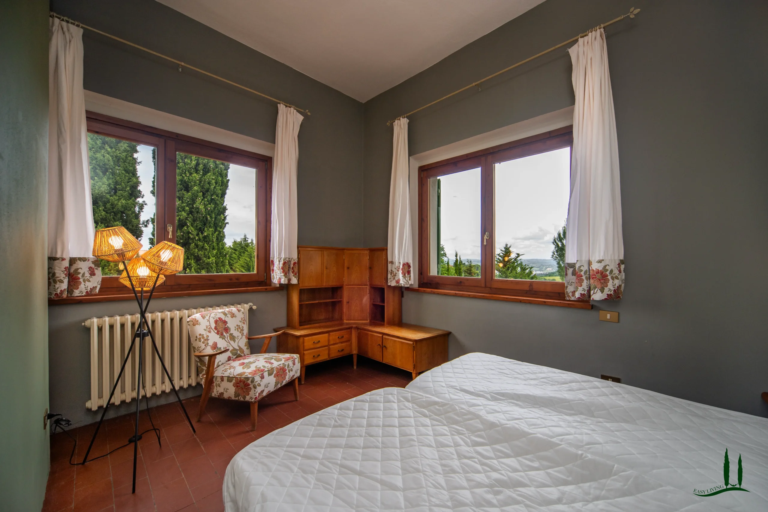 Surrounded by the gentle rolling hills of Tuscany, covered in vineyards and olive groves, the estate boasts cinematic beauty with its century-old cypress trees, evoking the charm of Under the Tuscan Sun. The 3,000 sqm garden is perfectly sized for easy maintenance—ideal for remote management—while still offering space to enjoy nature, including 50 mature olive trees.