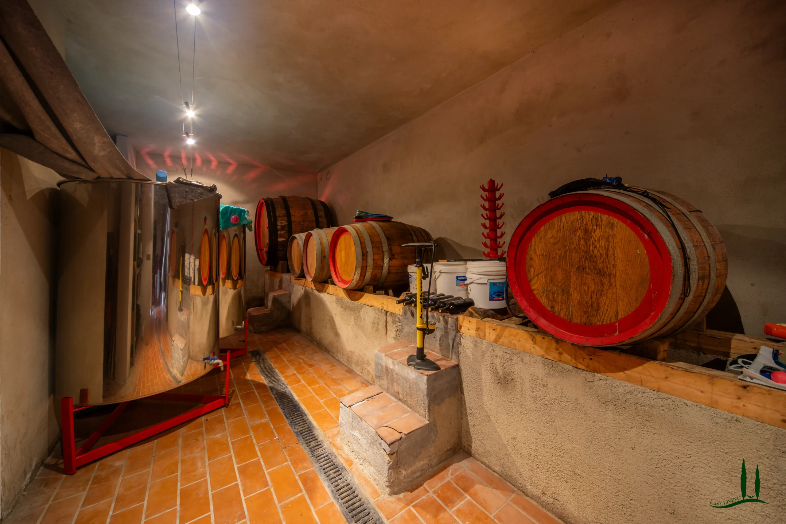 The property also includes a spacious underground basement, divided into three rooms: a technical room for the pool, a wine cellar, and ample storage space.