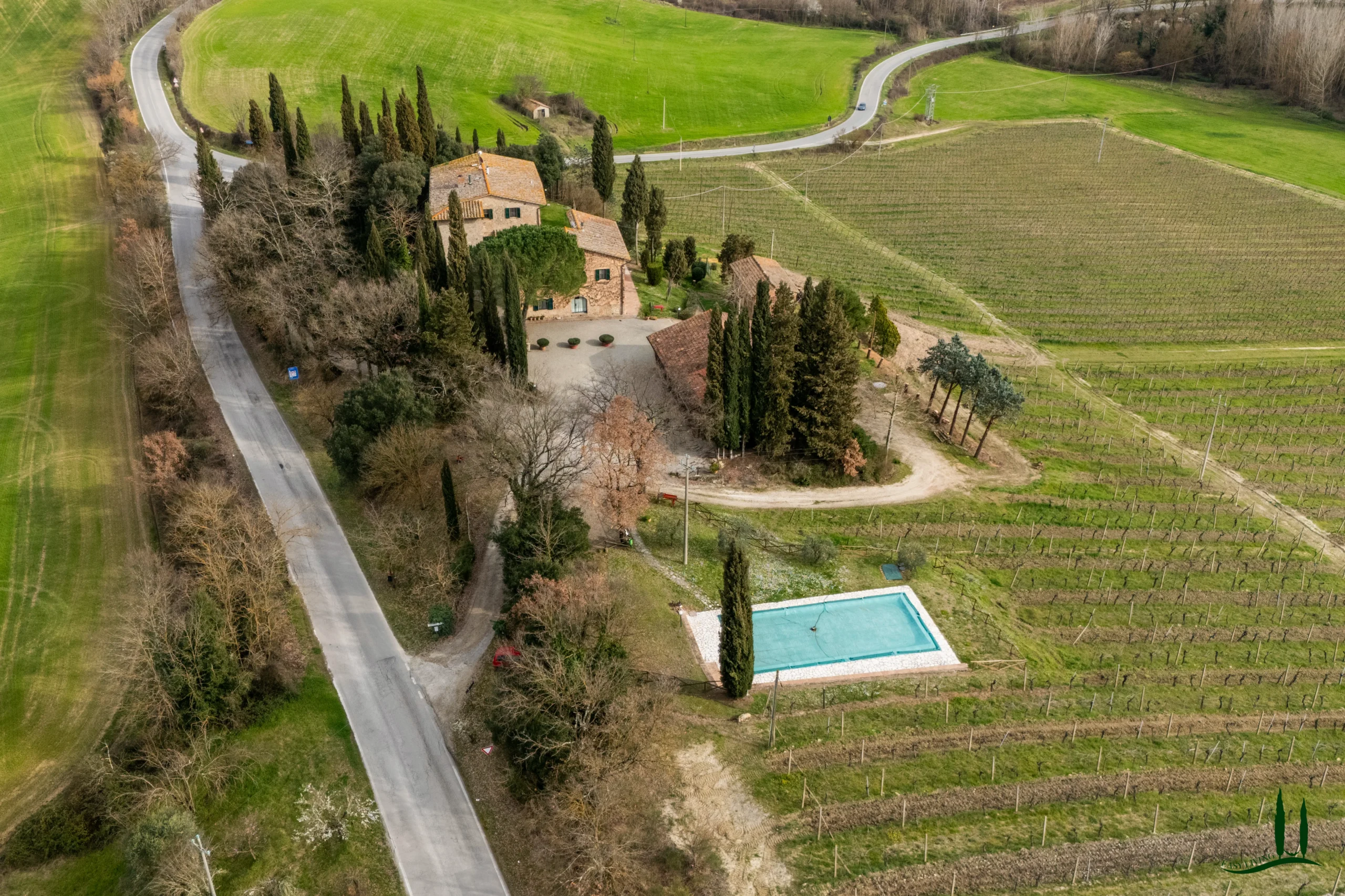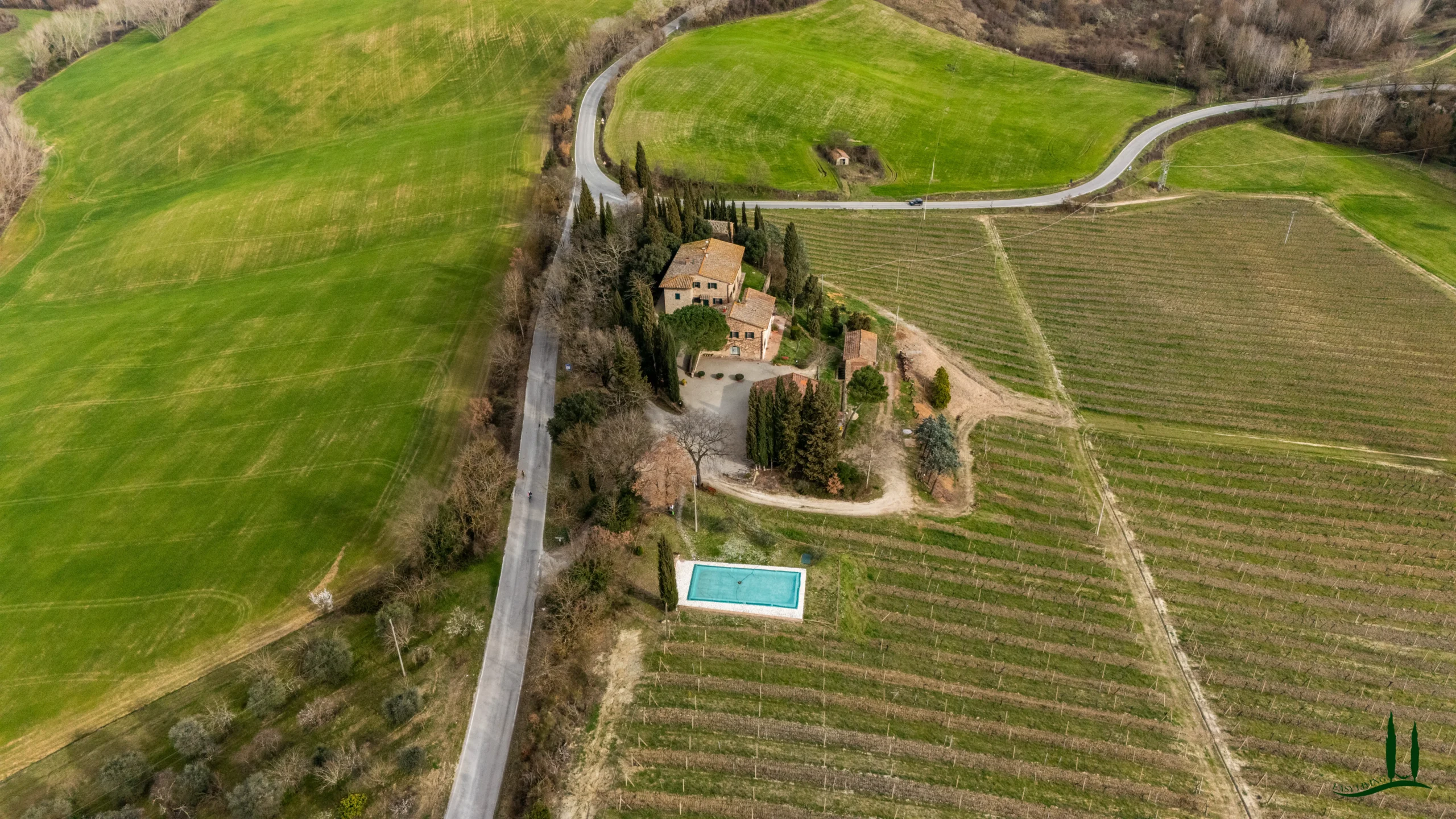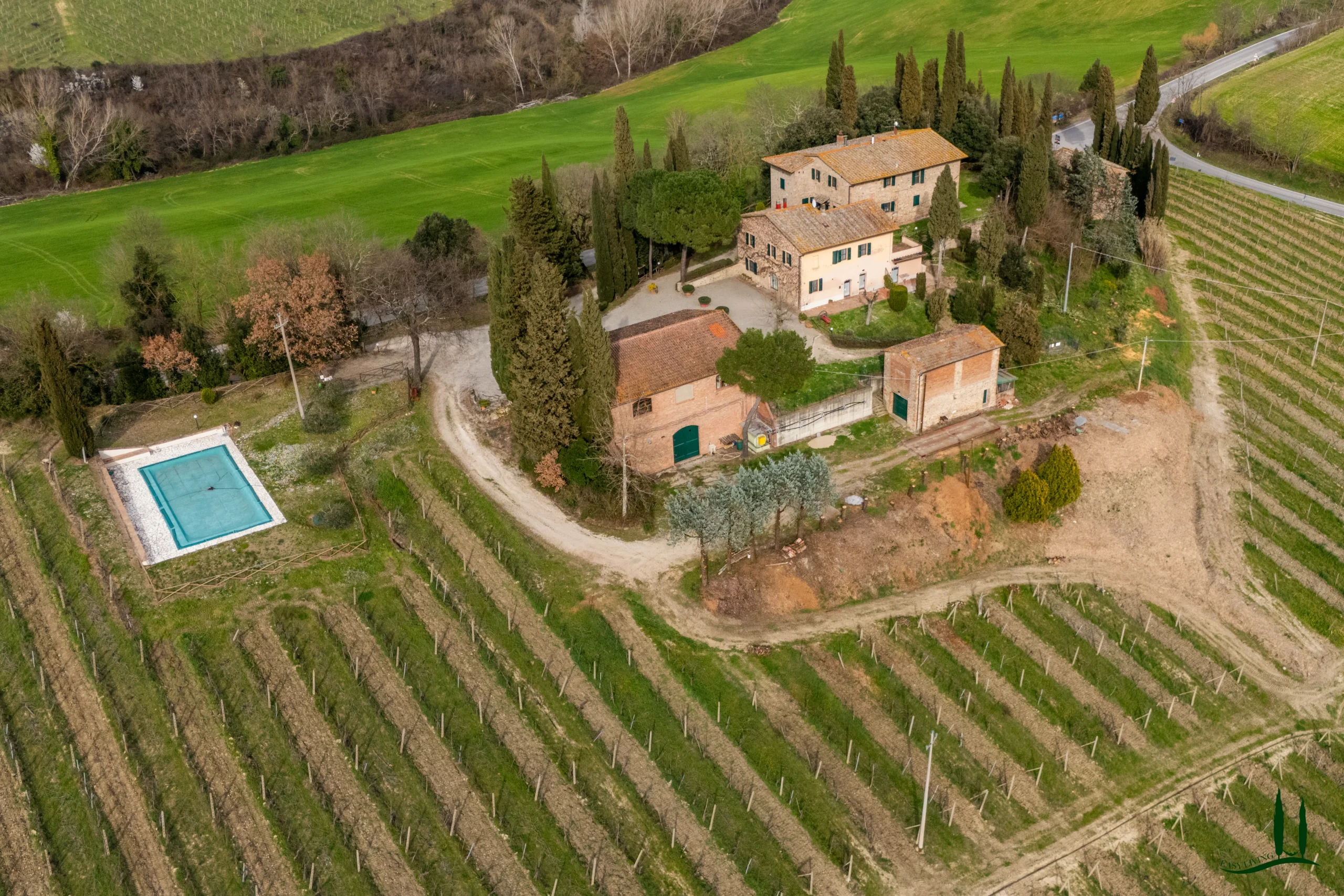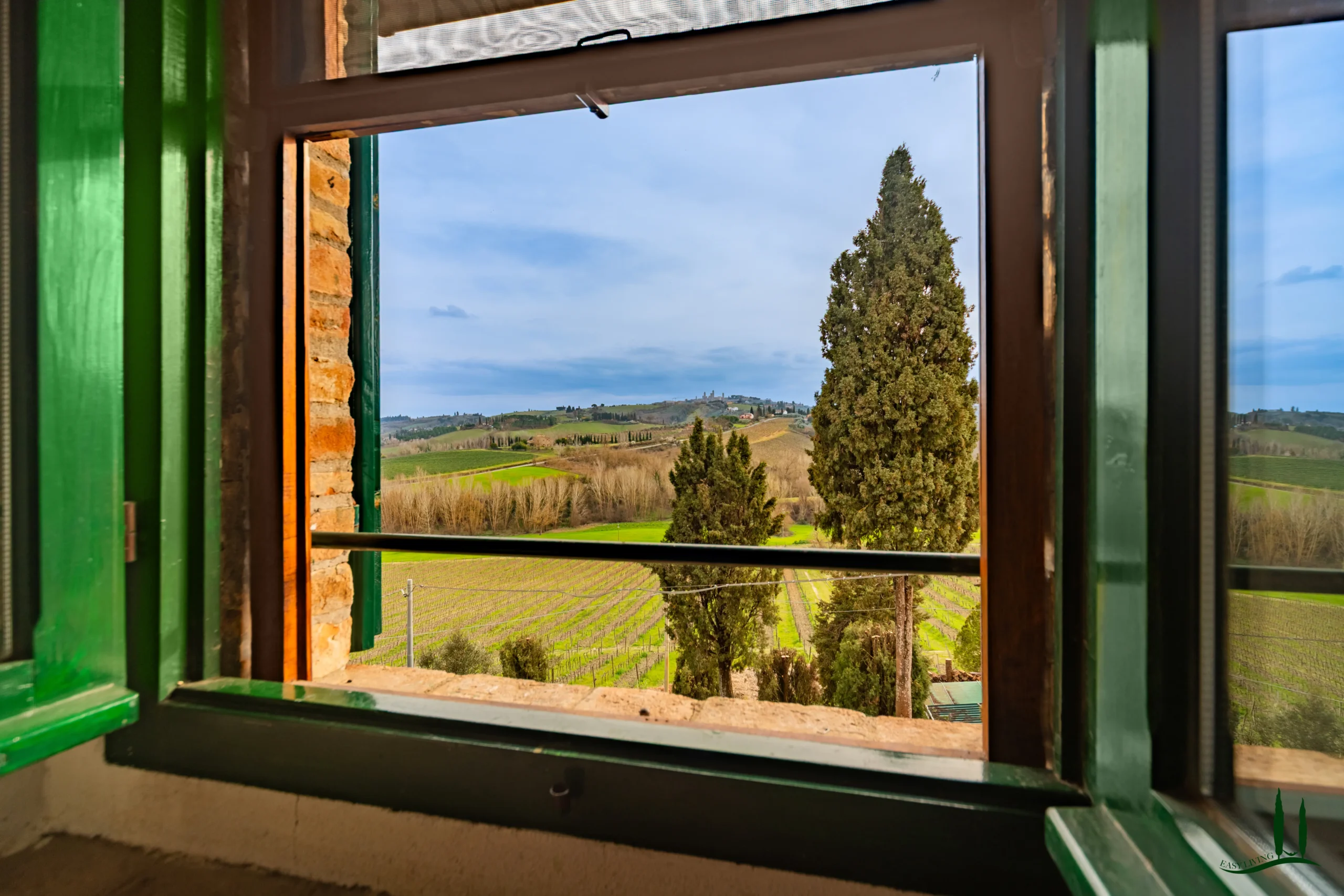 Set in the most authentic heart of Tuscany, just moments from the iconic towers of San Gimignano, this enchanting farm estate spans 51 hectares of unspoiled natural beauty. The landscape unfolds as a harmonious mosaic of vineyards, olive groves, golden fields, and woodland, creating an atmosphere of timeless peace and rural charm.