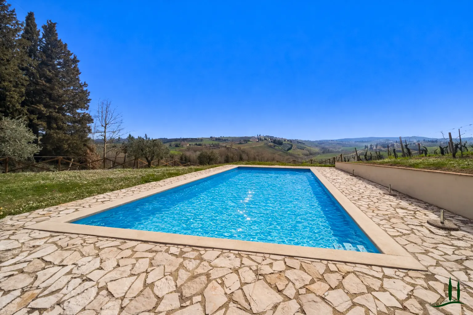Enhancing the estate is a magnificent 20 x 10 panoramic swimming pool, from which one can enjoy breathtaking views of San Gimignano’s towers—an idyllic setting where time seems to slow down.