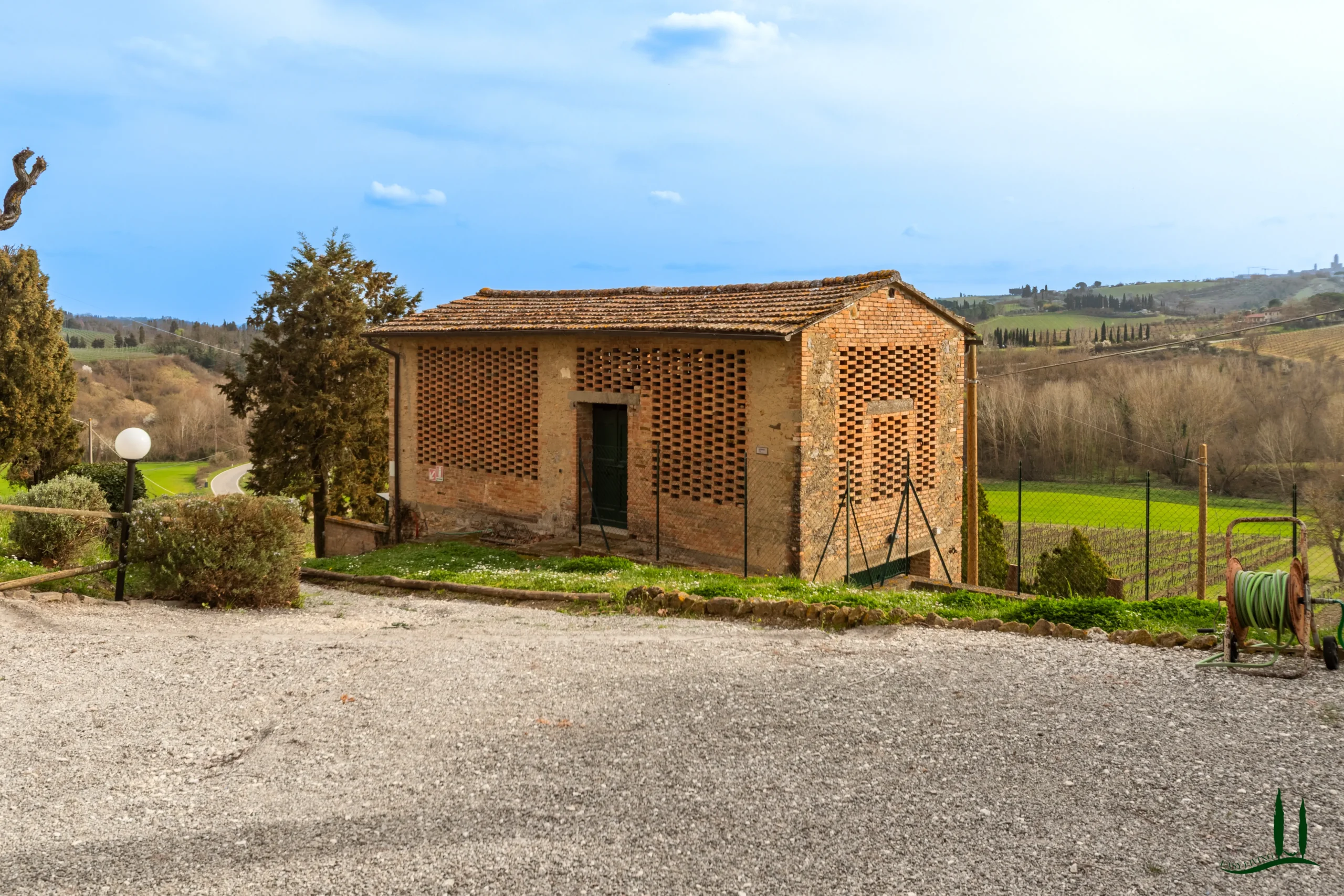 The estate includes 10 hectares of vineyards, of which 6 are dedicated to Chianti Colli Senesi and 2.6 to the renowned Vernaccia, reflecting the strong winemaking heritage of the land. A further 34 hectares of arable land, carefully cultivated by the current owners, express a deep connection with traditional agriculture. The property is completed by 5.5 hectares of woodland and an olive grove of 1.5 hectares with approximately 560 trees, producing olive oil for private use that captures the genuine flavors of Tuscan tradition.