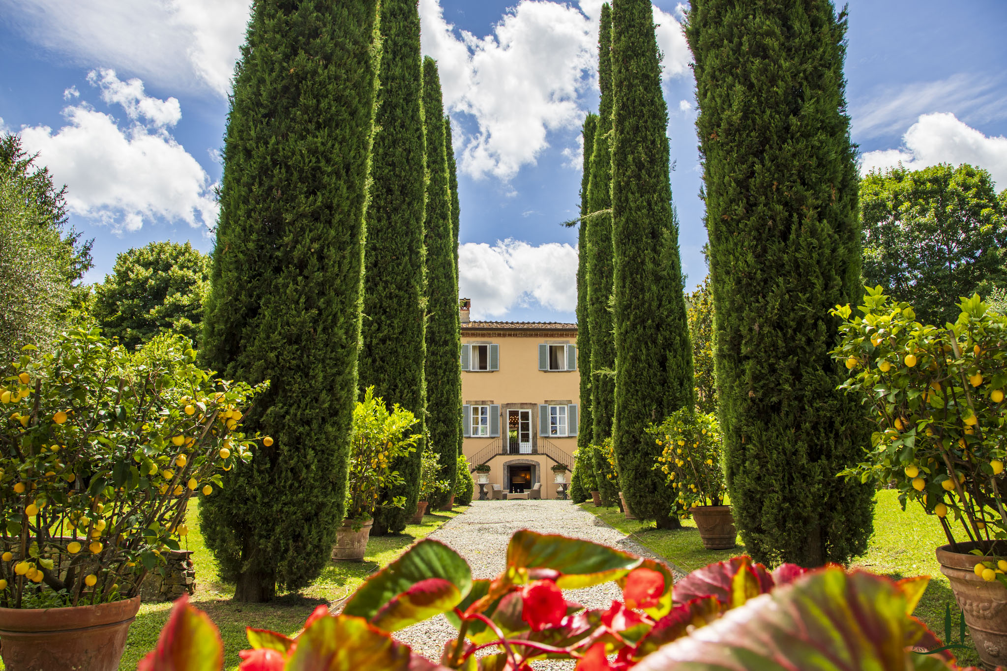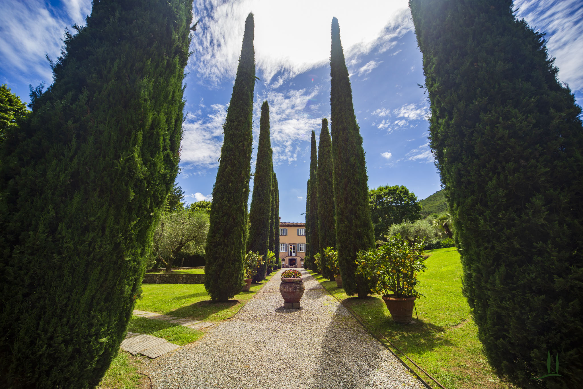 All'apertura del cancello privato, la prima cosa che l'ospite vede è un viale di "alti e