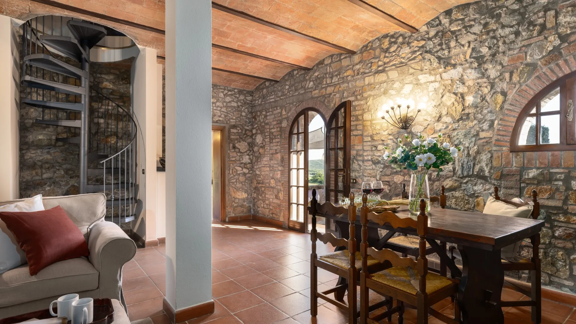 Villa Loredana si trova nel cuore della Toscana, vicino a Montaione, un borgo ricco di storia e rinomato per la sua bellezza paesaggistica. La casa è circondata dalle dolci colline toscane, offre splendidi panorami ed è immersa in un'oasi di tranquillità e pace. La villa, composta da un edificio principale e da un annesso, è un antico casale toscano in pietra, risalente alla fine del XIX secolo, ristrutturato dagli attuali proprietari che hanno saputo mantenere intatta l'essenza della tradizione e dell'eleganza rurale. I muri in pietra della casa sono ingentiliti da piante rampicanti che aggiungono un tocco di colore e vitalità.