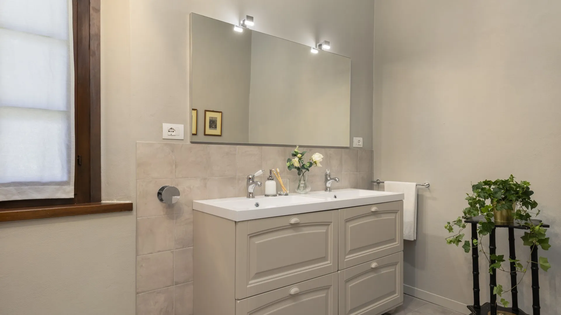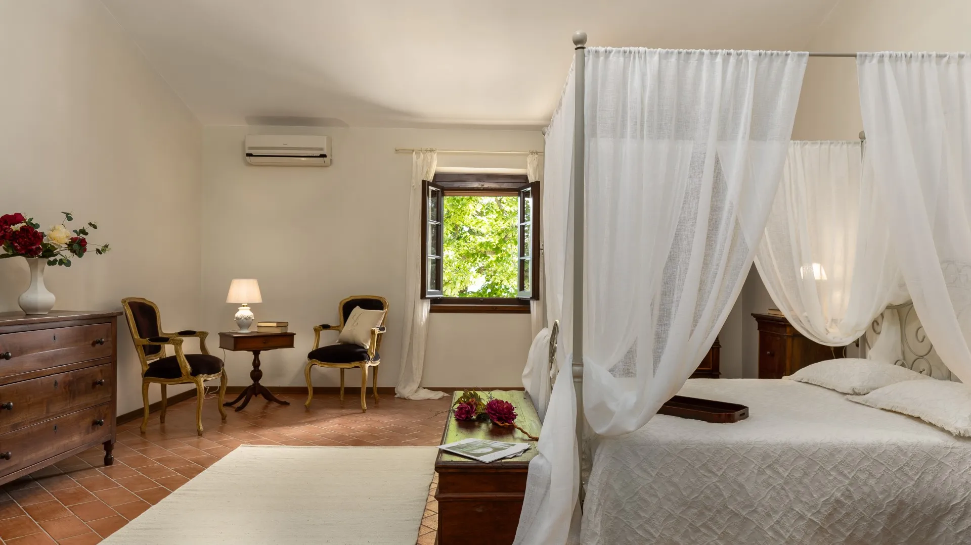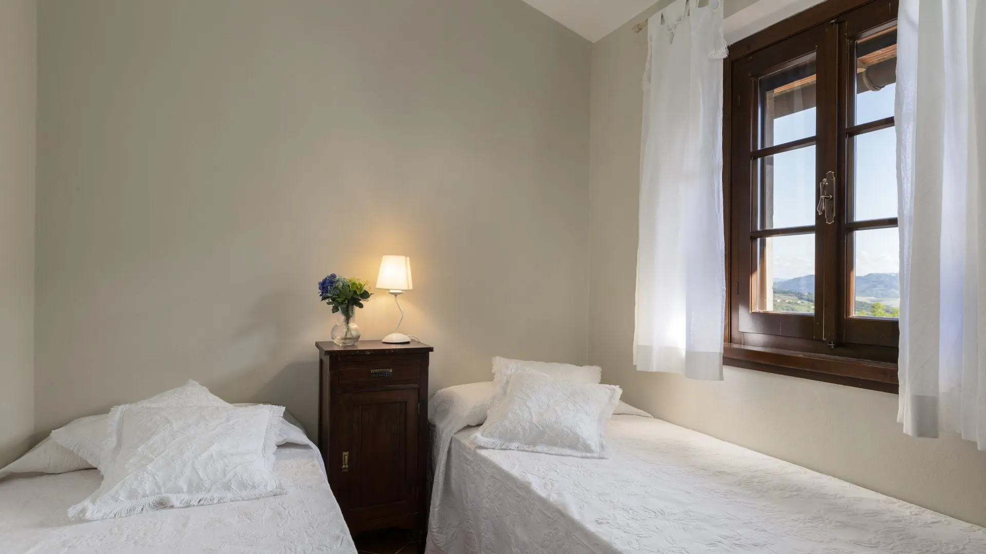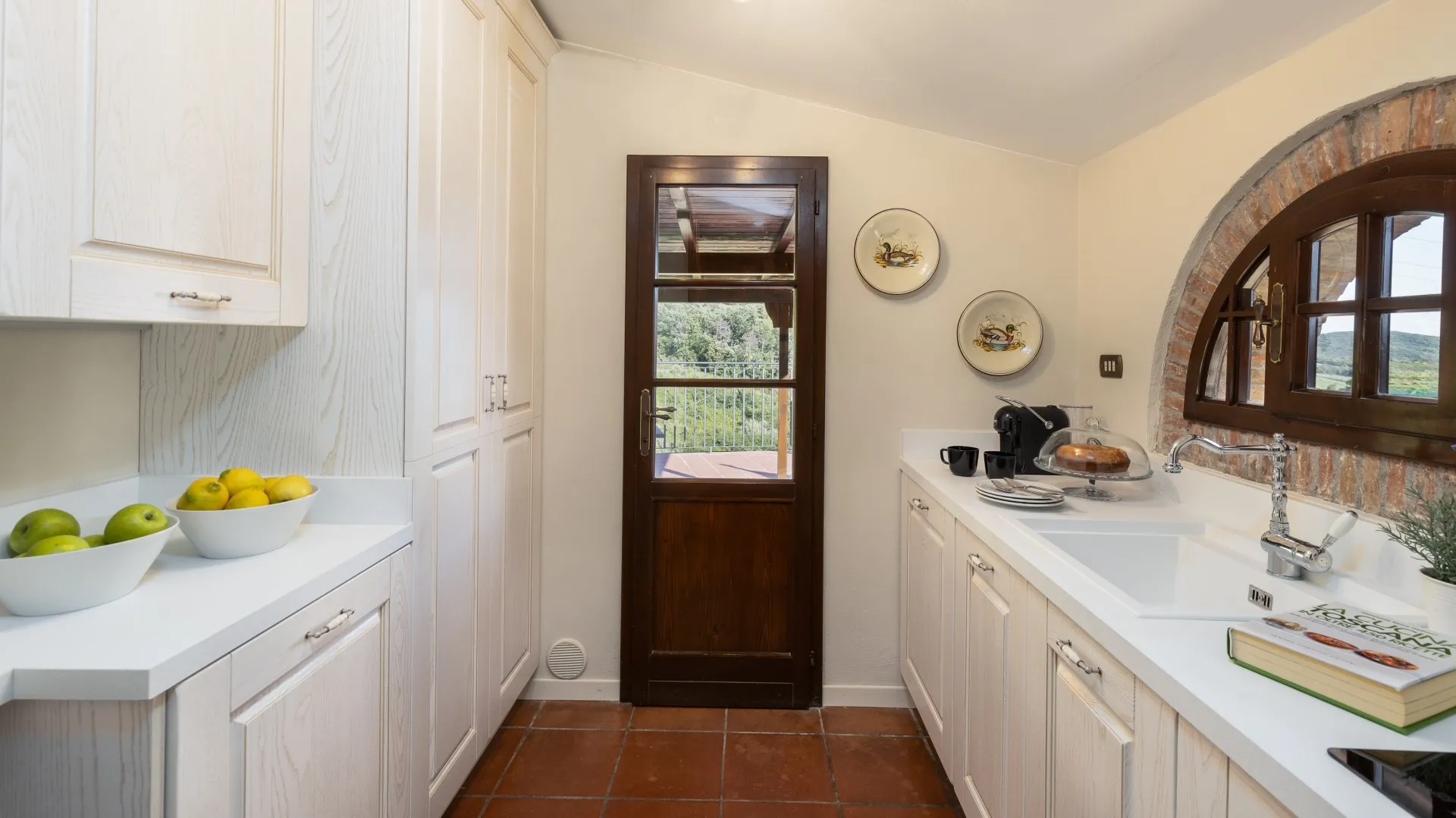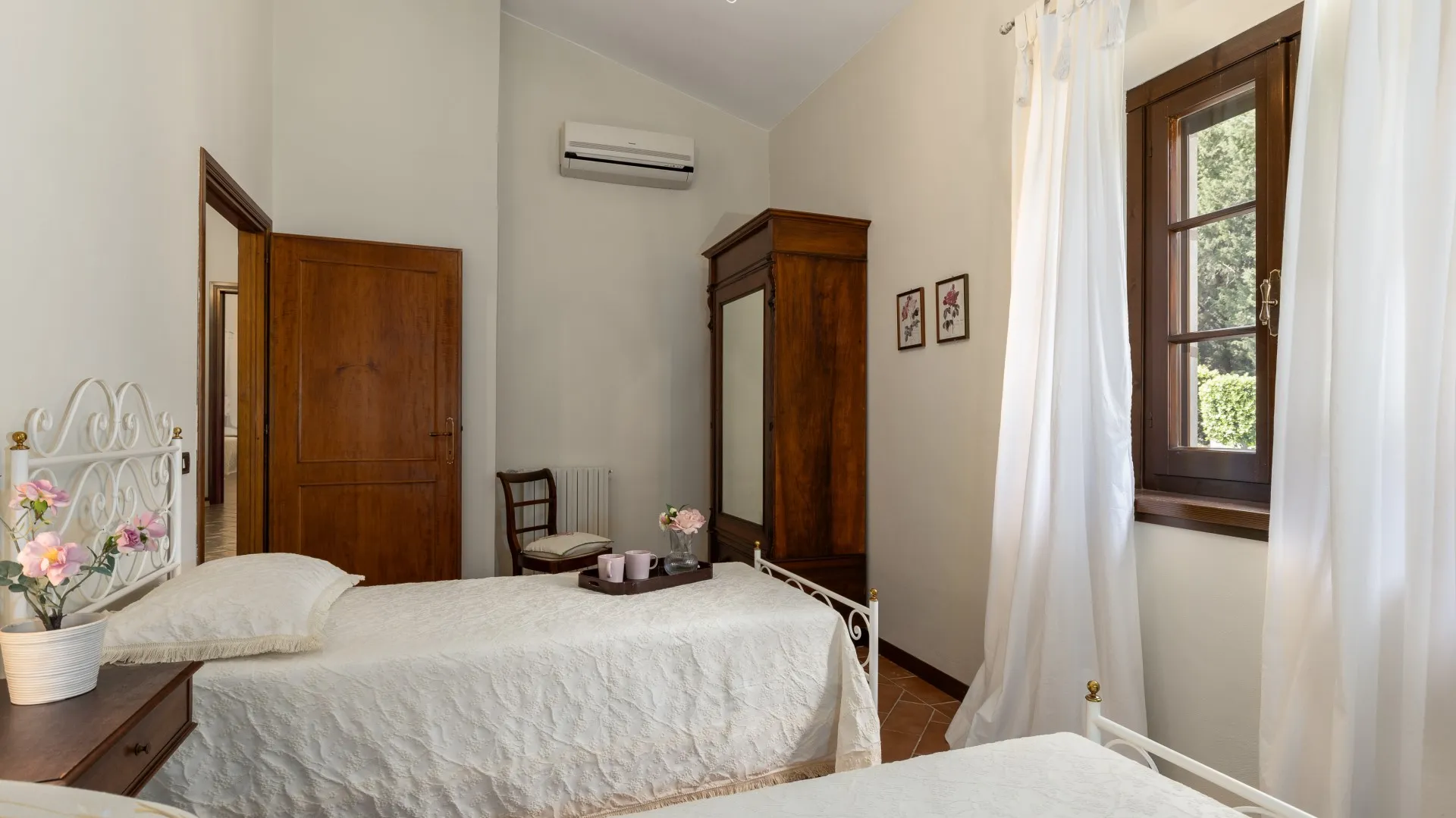 Villa Loredana è composta dalla casa principale e da un annesso. CASA. Su due piani con una superficie di circa 270 mq. L'ingresso principale conduce al soggiorno a pianta aperta, con camino e TV, e alla sala da pranzo. Collegata alla zona pranzo si trova la cucina con camino e forno a legna. Un bagno per gli ospiti completa il piano. Una scala in cotto conduce alla zona notte composta da due camere matrimoniali, una camera matrimoniale con bagno privato con doccia, una camera doppia con letti unibili e un bagno con doccia. ALLEGATO. A pochi metri dalla casa principale, l'annesso si sviluppa su due piani per una superficie di circa 100 mq. Al piano terra si trova il soggiorno con camino e TV, un bagno con doccia e una cucina di servizio, dove è disponibile una lavatrice. La cucina di servizio ha accesso a una terrazza in cotto con copertura in legno. Una scala a chiocciola conduce alla zona notte composta da una camera doppia con letti unibili, una camera matrimoniale e un bagno con doccia (senza bidet ma dotato di doccetta).