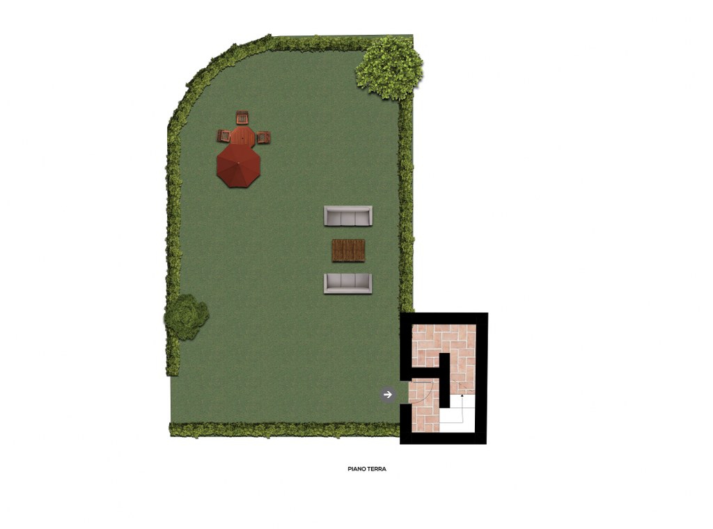 Attraversando il giardino privato, una scala in pietra conduce a questo appartamento con due camere da letto e invita immediatamente a entrare nell'ampia loggia. Questo spazio coperto amplia la zona giorno, offrendo un luogo perfetto per cenare all'aperto, godersi un libro o semplicemente assaporare la magnifica vista attraverso la grande apertura ad arco.