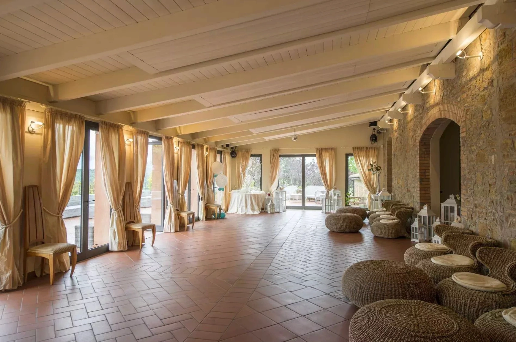 Boutique Hotel in vendita con 27 camere da letto situato su circa 73,3 ettari di terreno privato, tra cui vigneti, uliveti, campi coltivati e boschi. Il complesso è costituito da una struttura ricettiva con superficie totale costruita di circa 2.100 mq e 27 camere da letto, organizzato in due cluster distinti: un complesso di case coloniche storiche risalenti alla fine del XIX secolo, accuratamente restaurato conservando il suo carattere tradizionale toscano, e una complesso residenziale più recente dedicato alle attività di ospitalità . La tenuta opera attualmente come agriturismo e sede di eventi, offrendo alloggi per gli ospiti, spazi per ricevimenti e ampi spazi all'aperto immersi nella scenografica campagna toscana.
