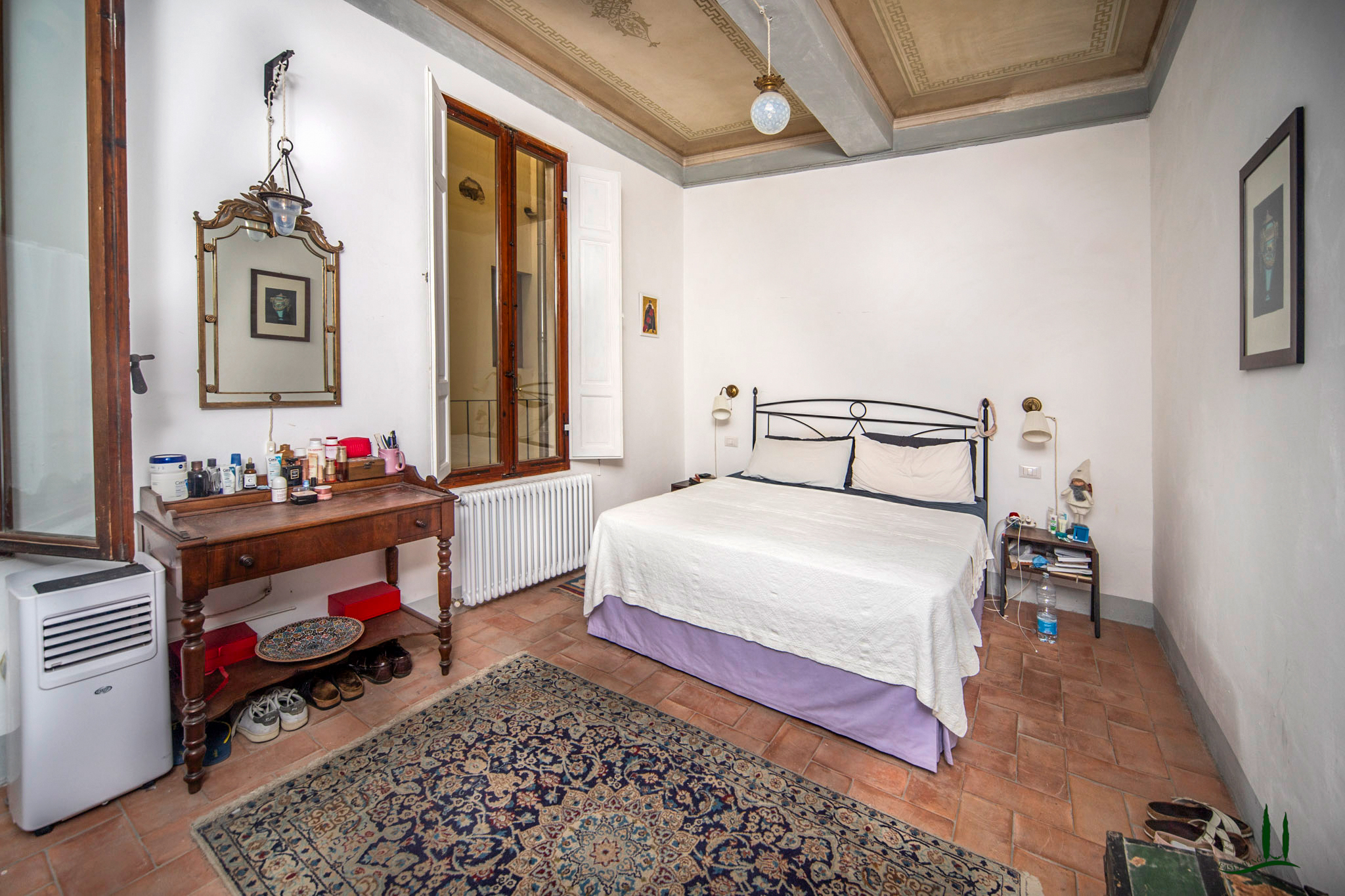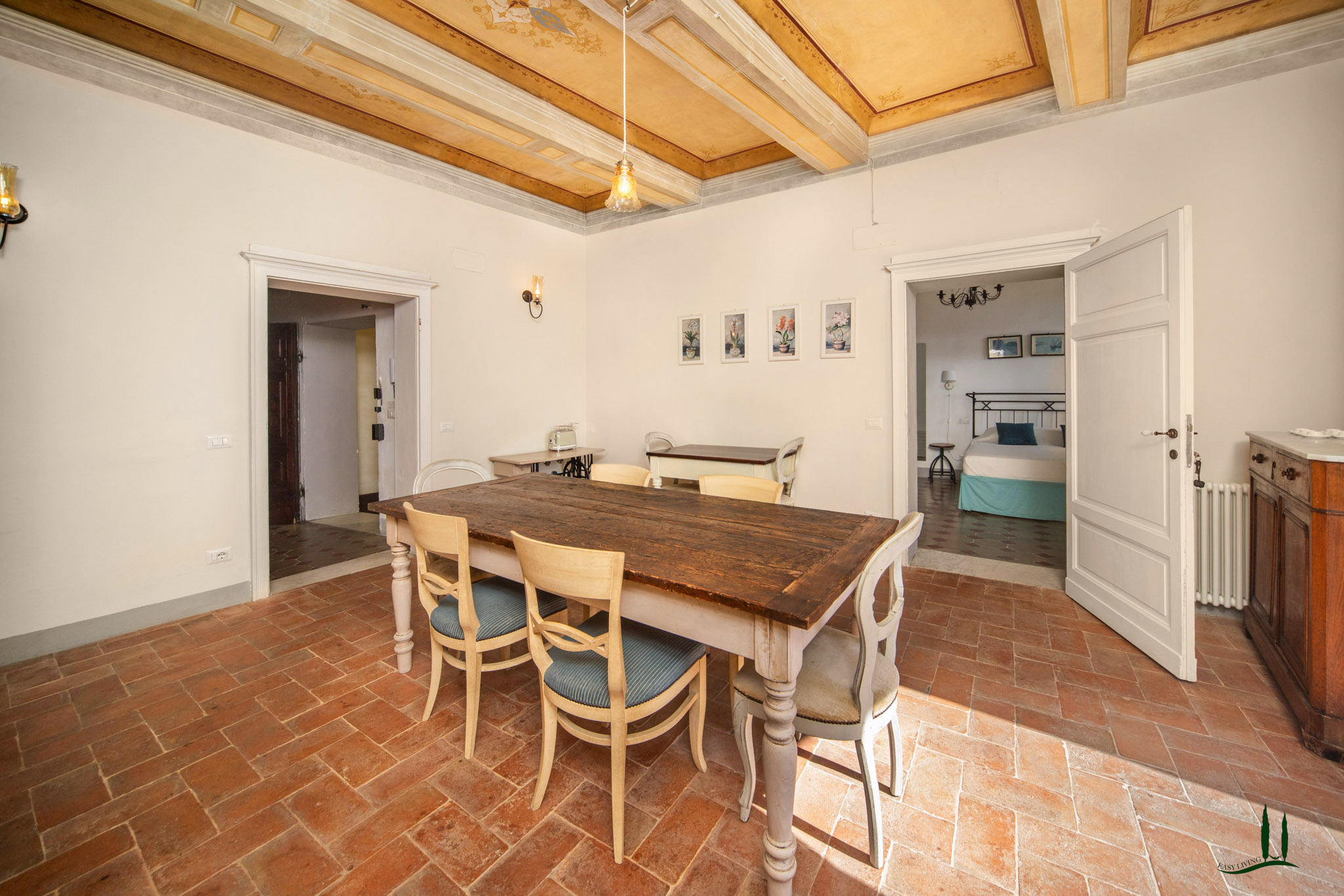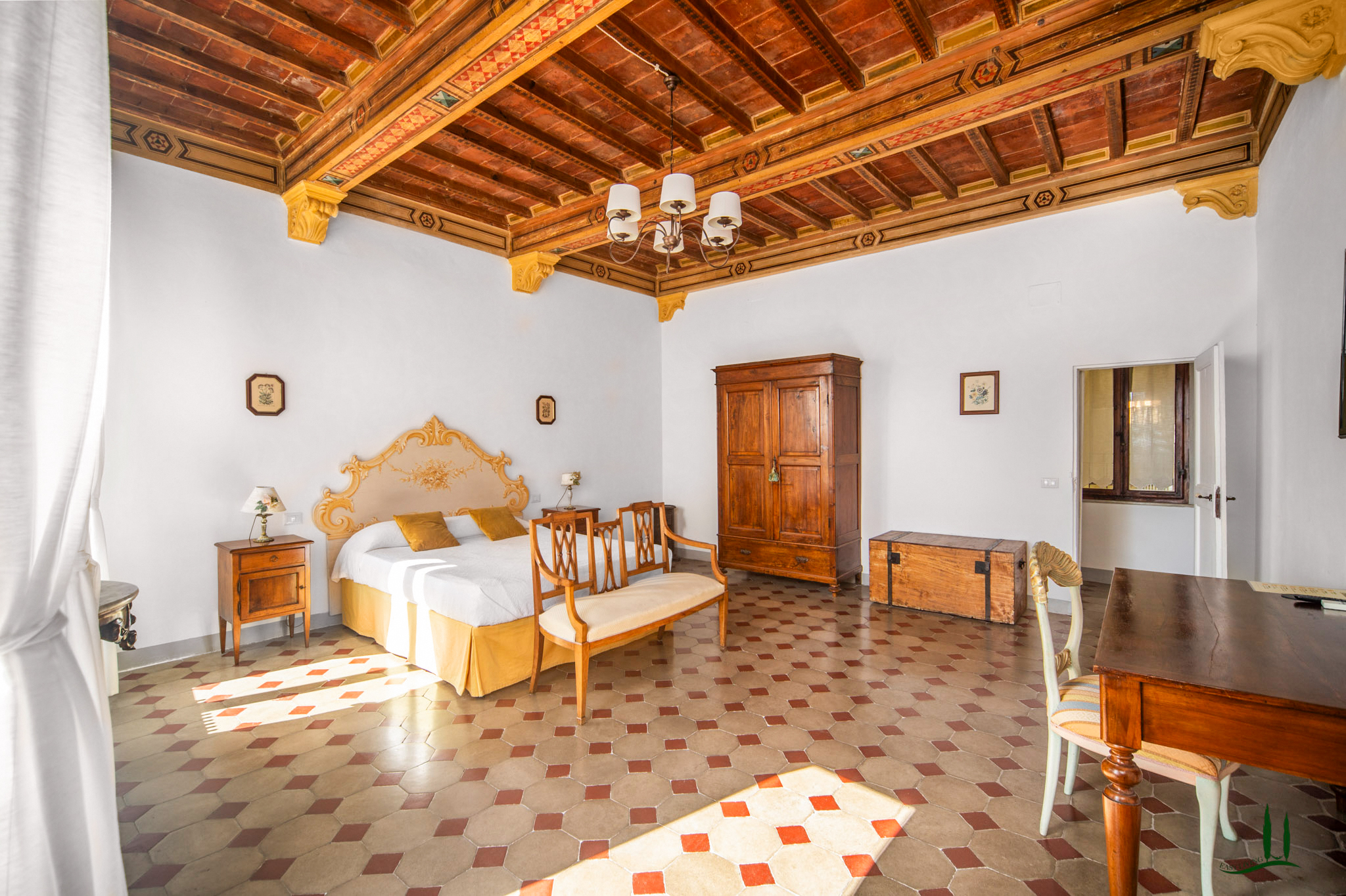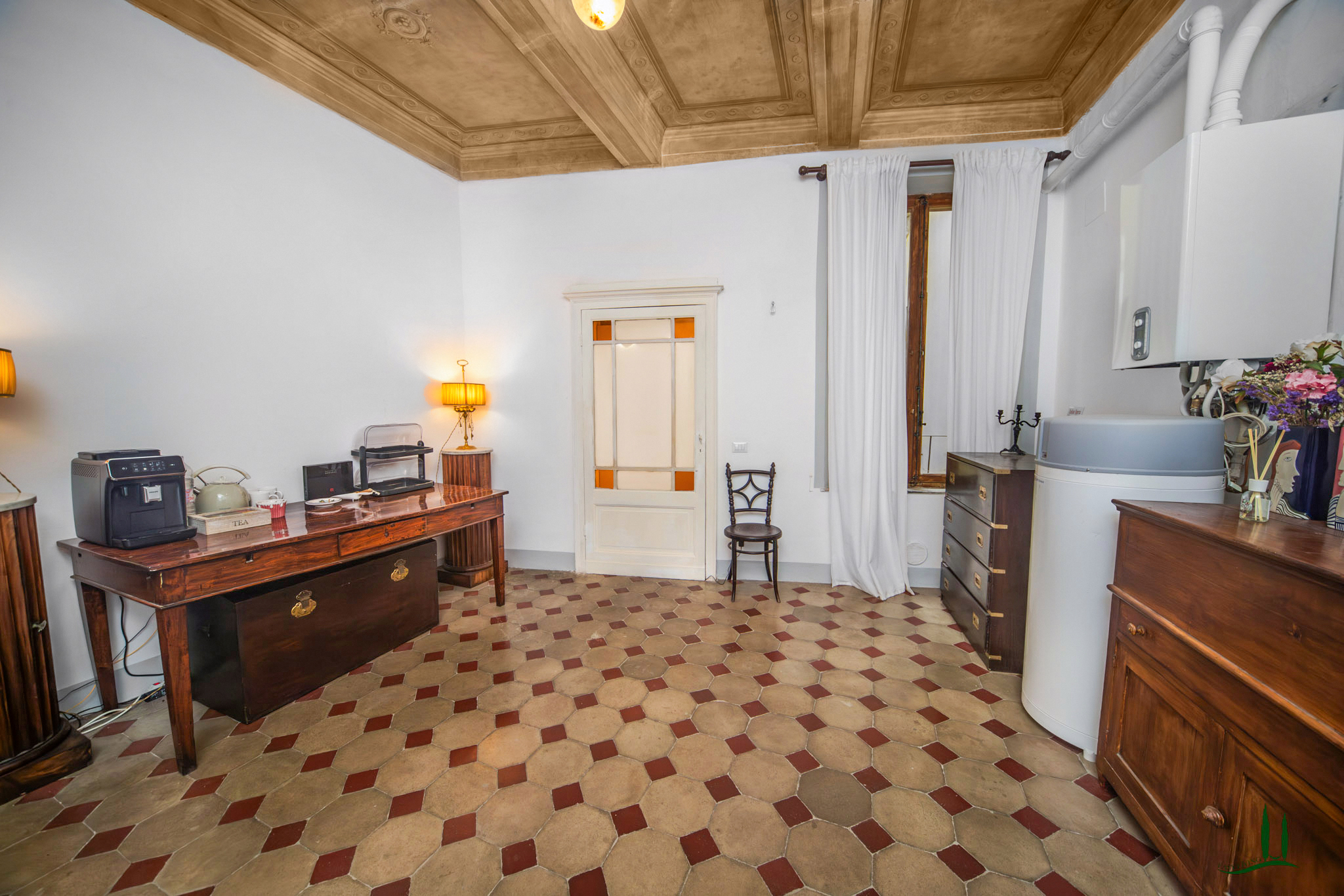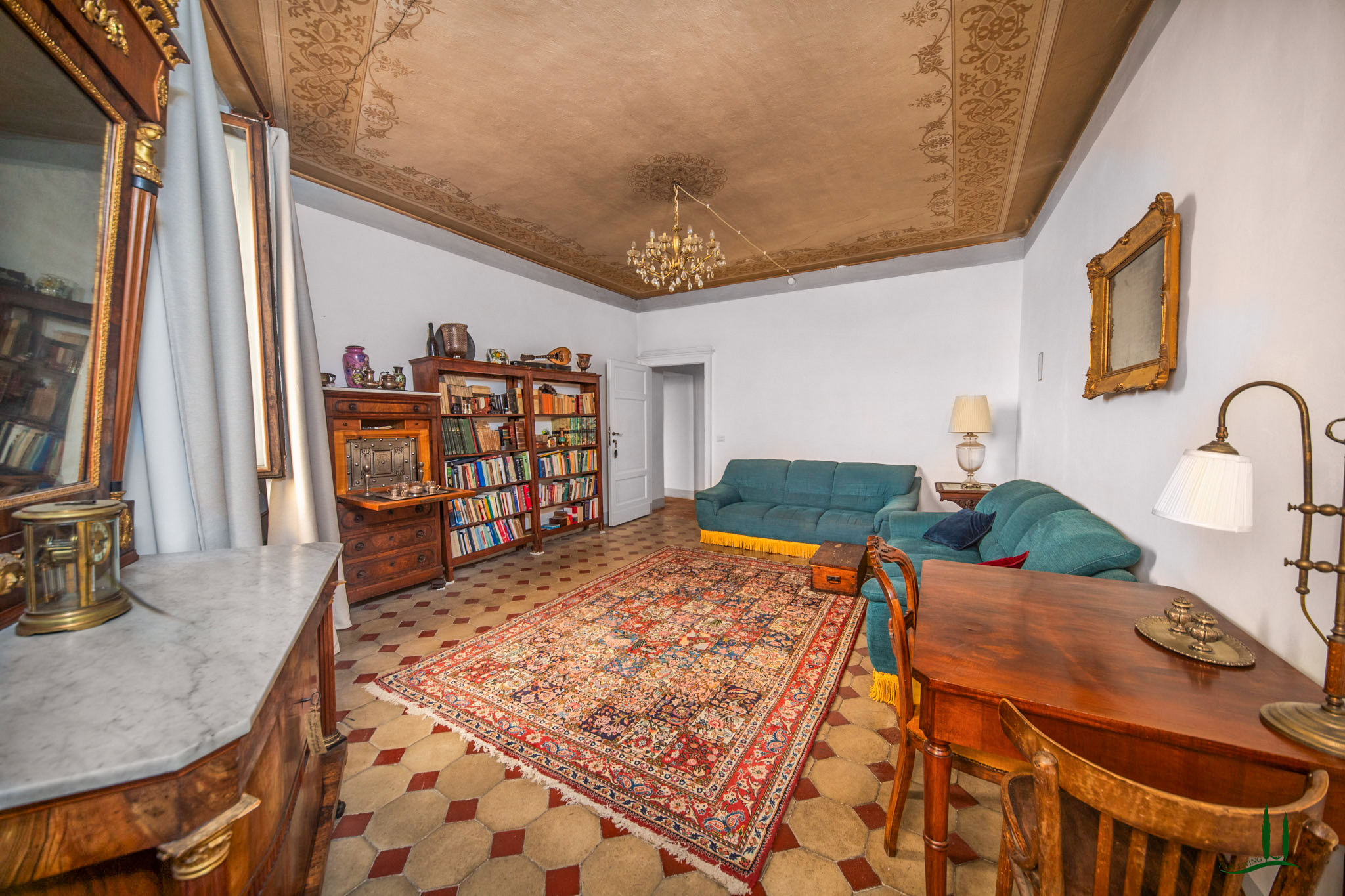 L'ingresso, attraverso una porta antica, trasporta immediatamente in un ambiente che sembra uscito da un film, emanando un'atmosfera aristocratica e lussuosa. Gli attuali proprietari hanno prestato particolare attenzione a preservare i dettagli storici della proprietà, come i pavimenti originali e gli affreschi sui soffitti, integrando sapientemente i comfort moderni, soprattutto nei bagni. L'appartamento vanta quattro spaziose camere da letto matrimoniali, ognuna con il proprio bagno privato, perfette per accogliere ospiti e familiari, rendendolo ideale come residenza primaria o casa per le vacanze.