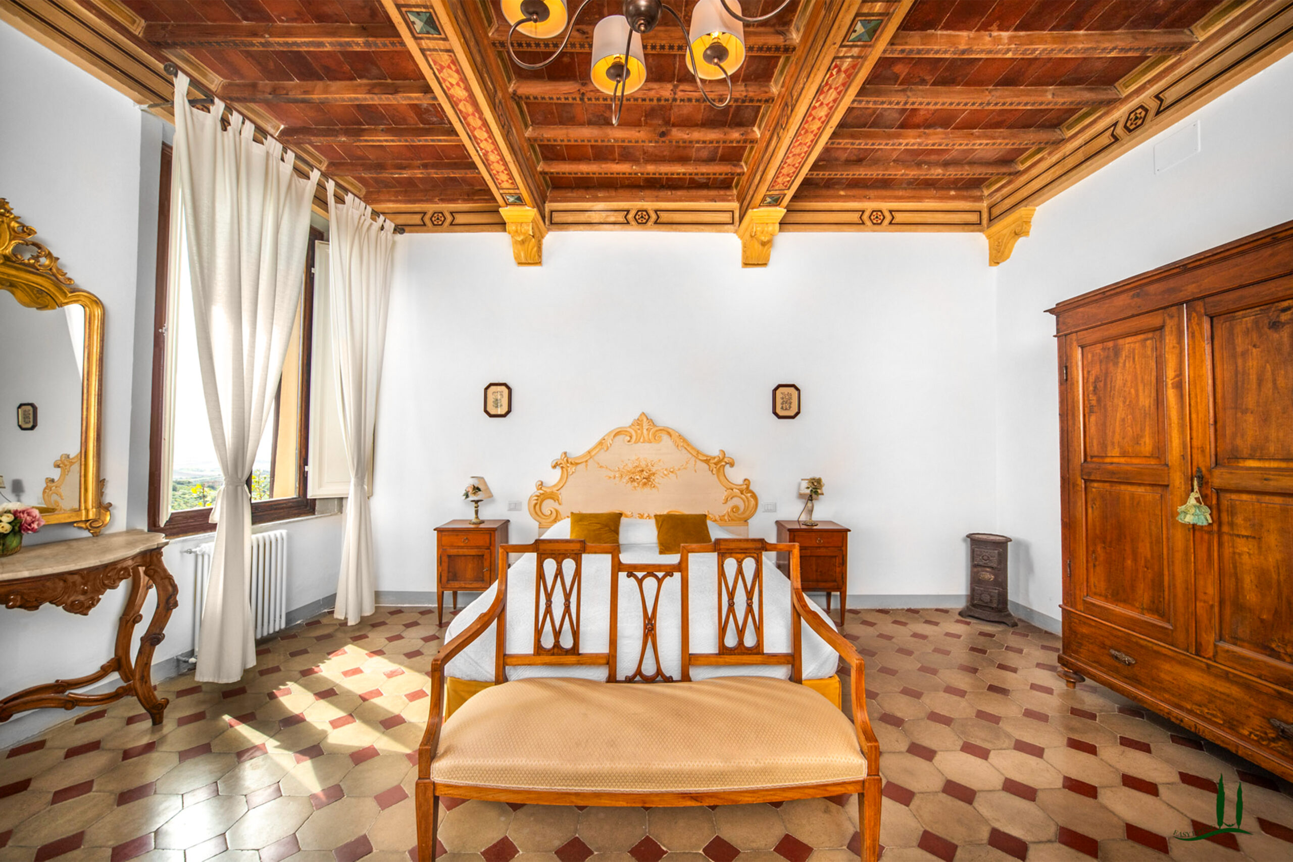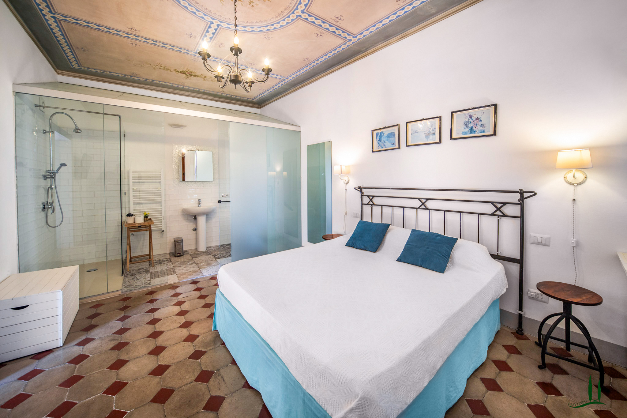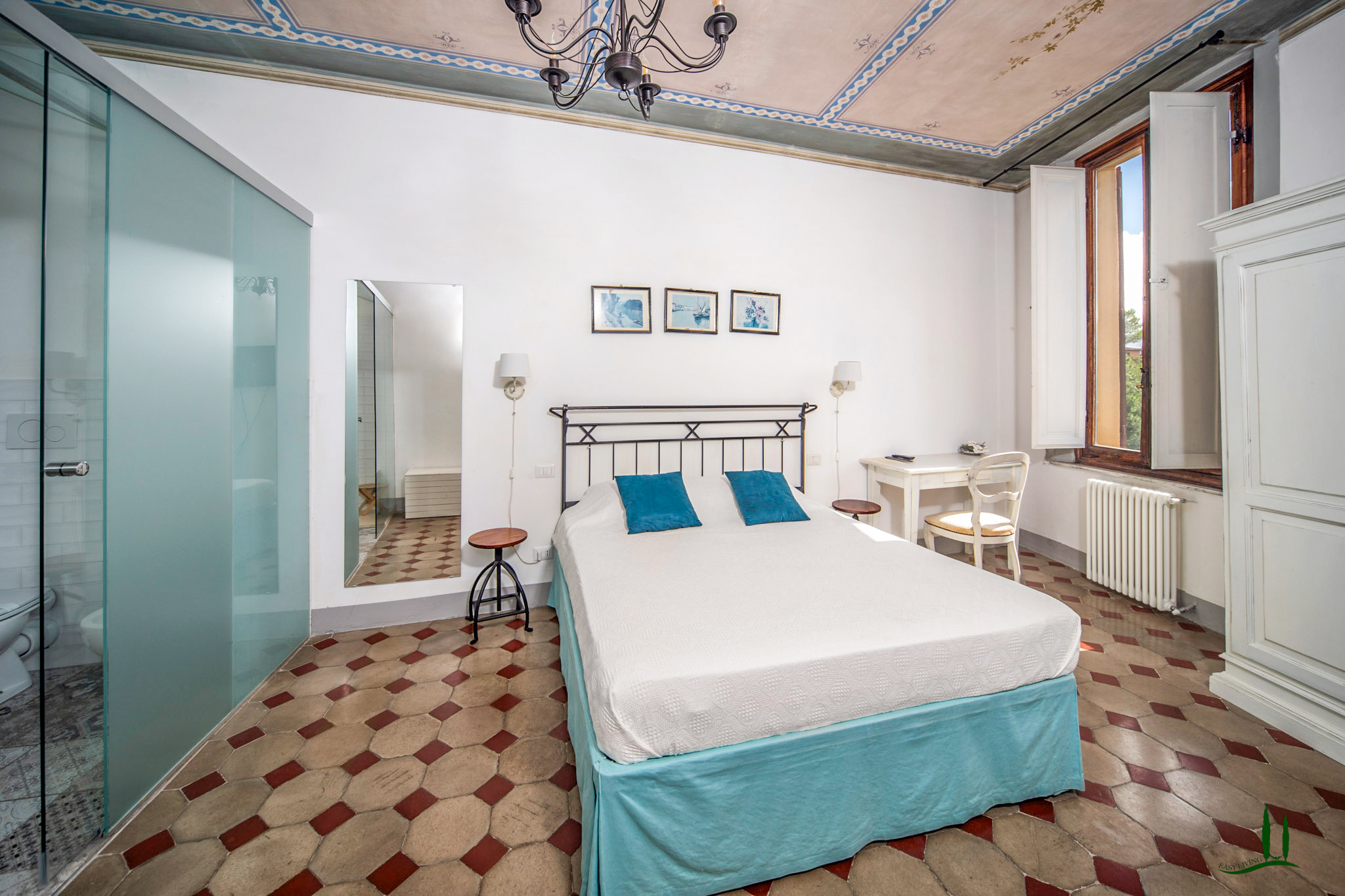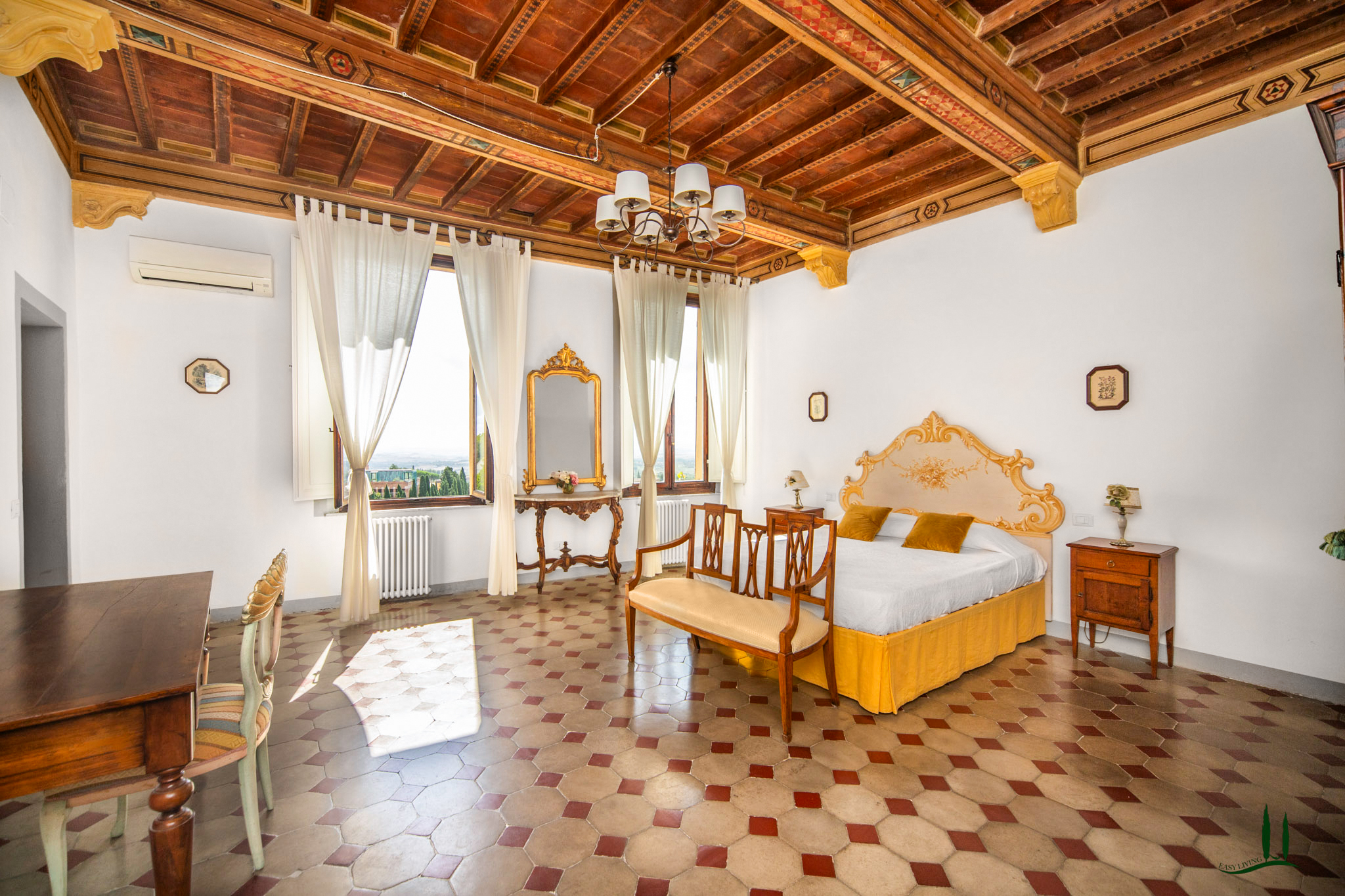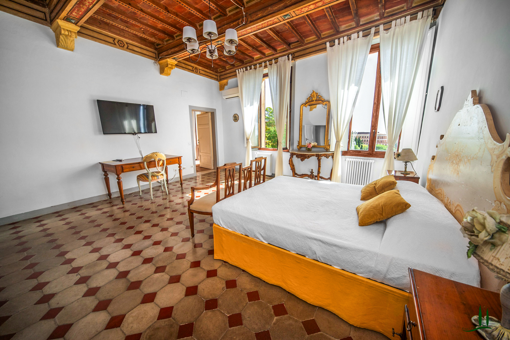 L'ingresso, attraverso una porta antica, trasporta immediatamente in un ambiente che sembra uscito da un film, emanando un'atmosfera aristocratica e lussuosa. Gli attuali proprietari hanno prestato particolare attenzione a preservare i dettagli storici della proprietà, come i pavimenti originali e gli affreschi sui soffitti, integrando sapientemente i comfort moderni, soprattutto nei bagni. L'appartamento vanta quattro spaziose camere da letto matrimoniali, ognuna con il proprio bagno privato, perfette per accogliere ospiti e familiari, rendendolo ideale come residenza primaria o casa per le vacanze.