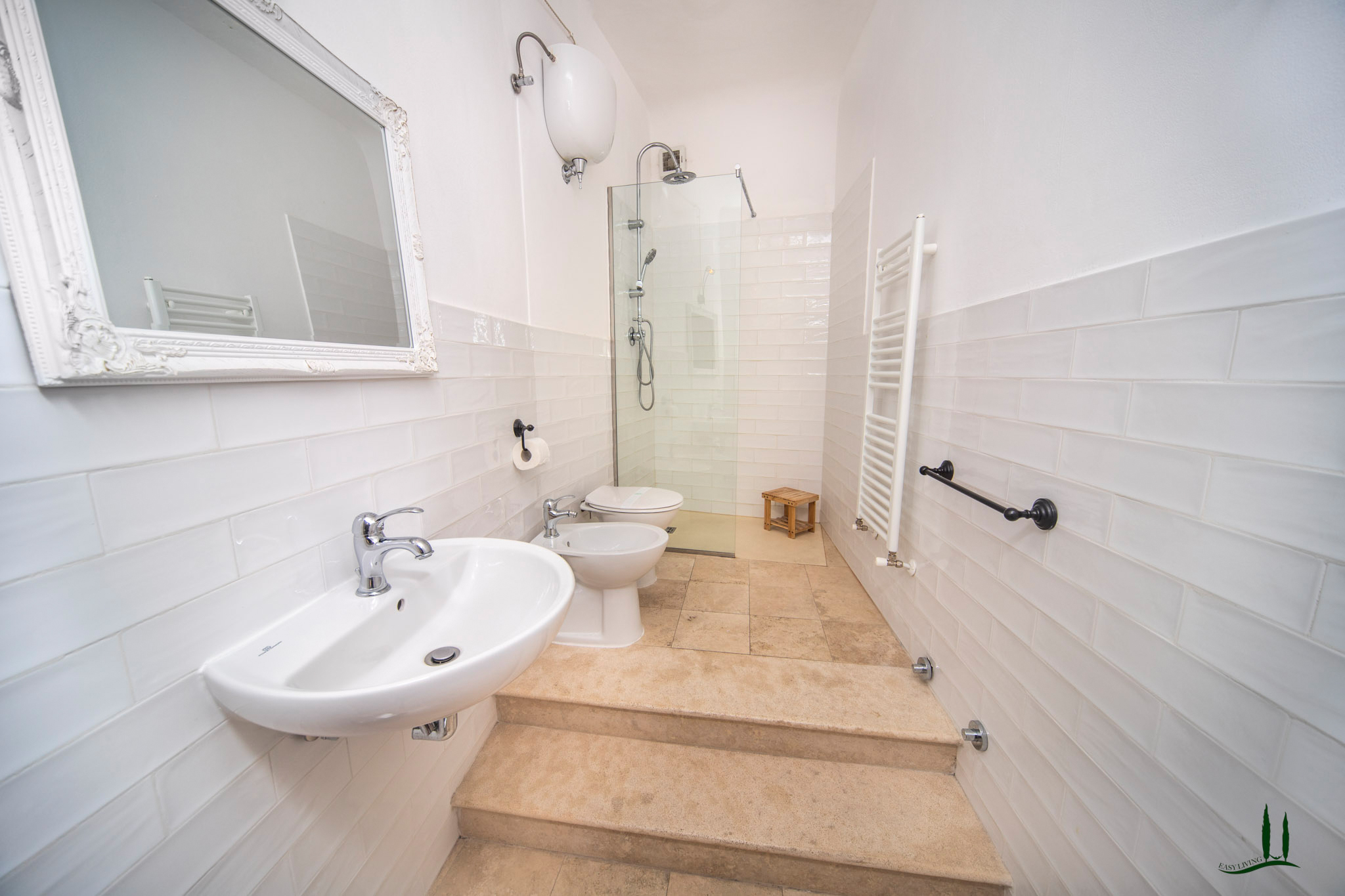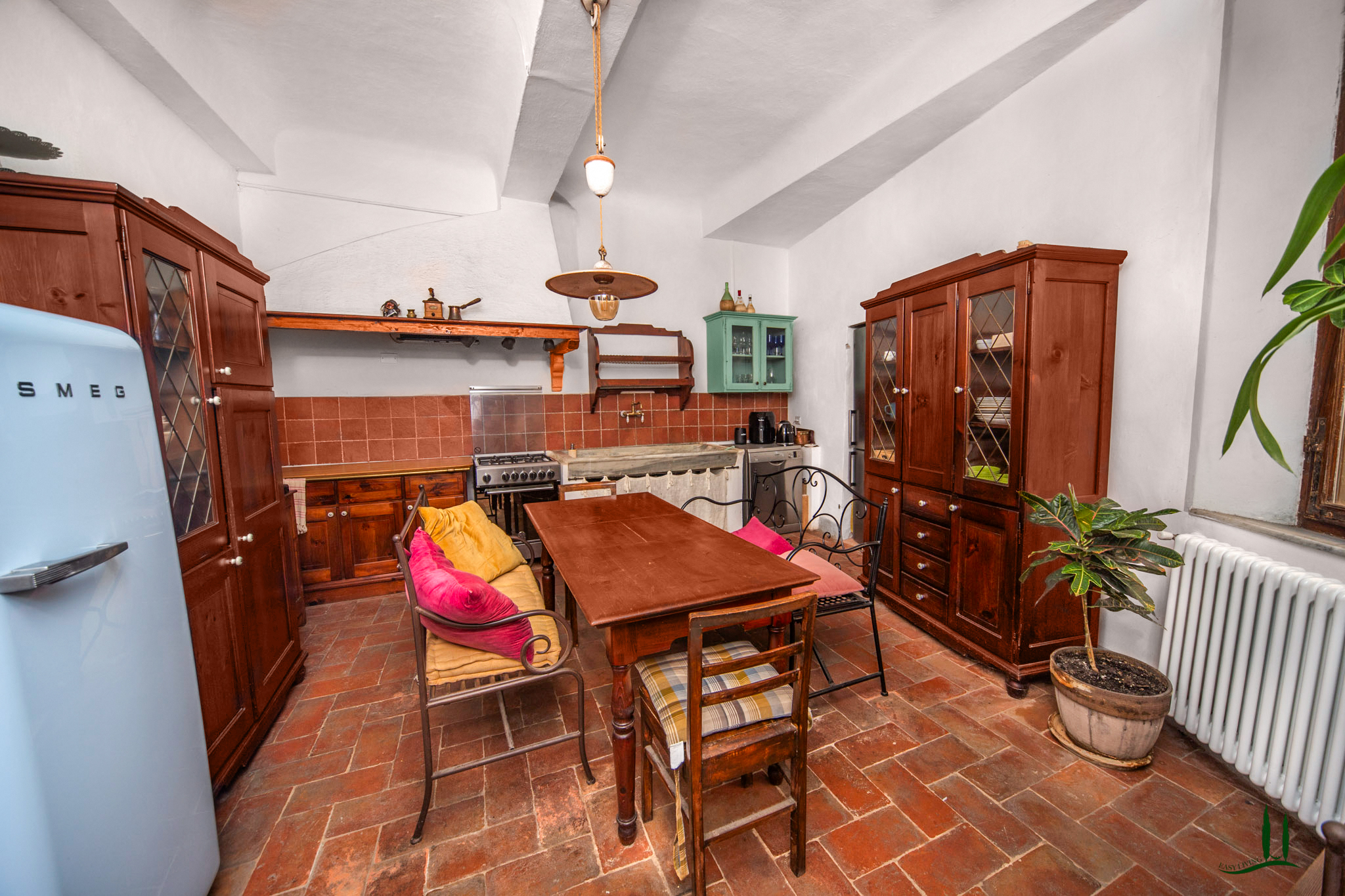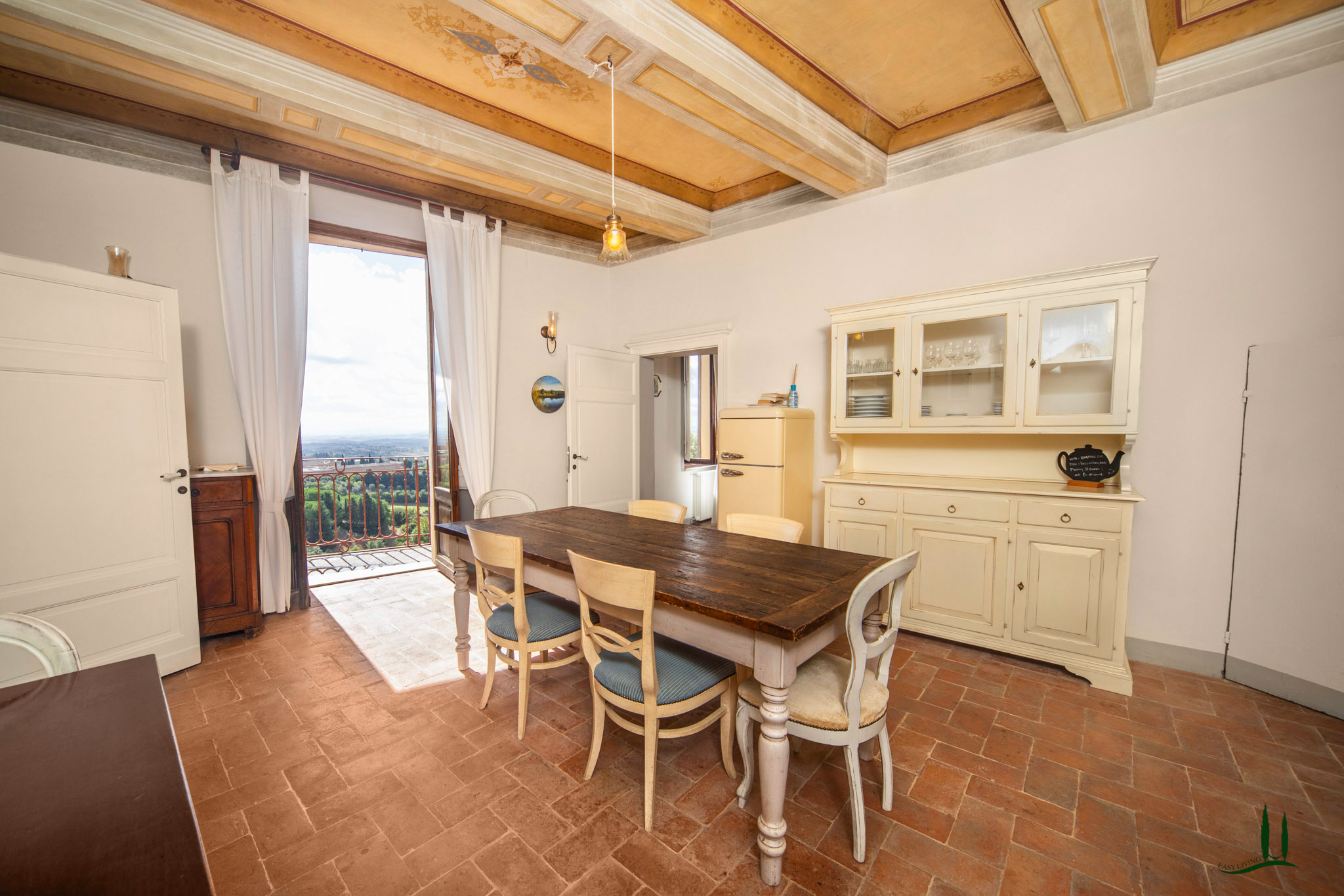 La zona giorno è elegante e invitante, con accesso diretto a un balcone che offre una vista panoramica sulle colline toscane, il luogo perfetto per gustare un bicchiere di vino o un caffè in totale relax. L'arredamento di alta qualità è incluso nel prezzo di vendita, ad eccezione di alcuni oggetti personali che verranno specificati durante la visita.