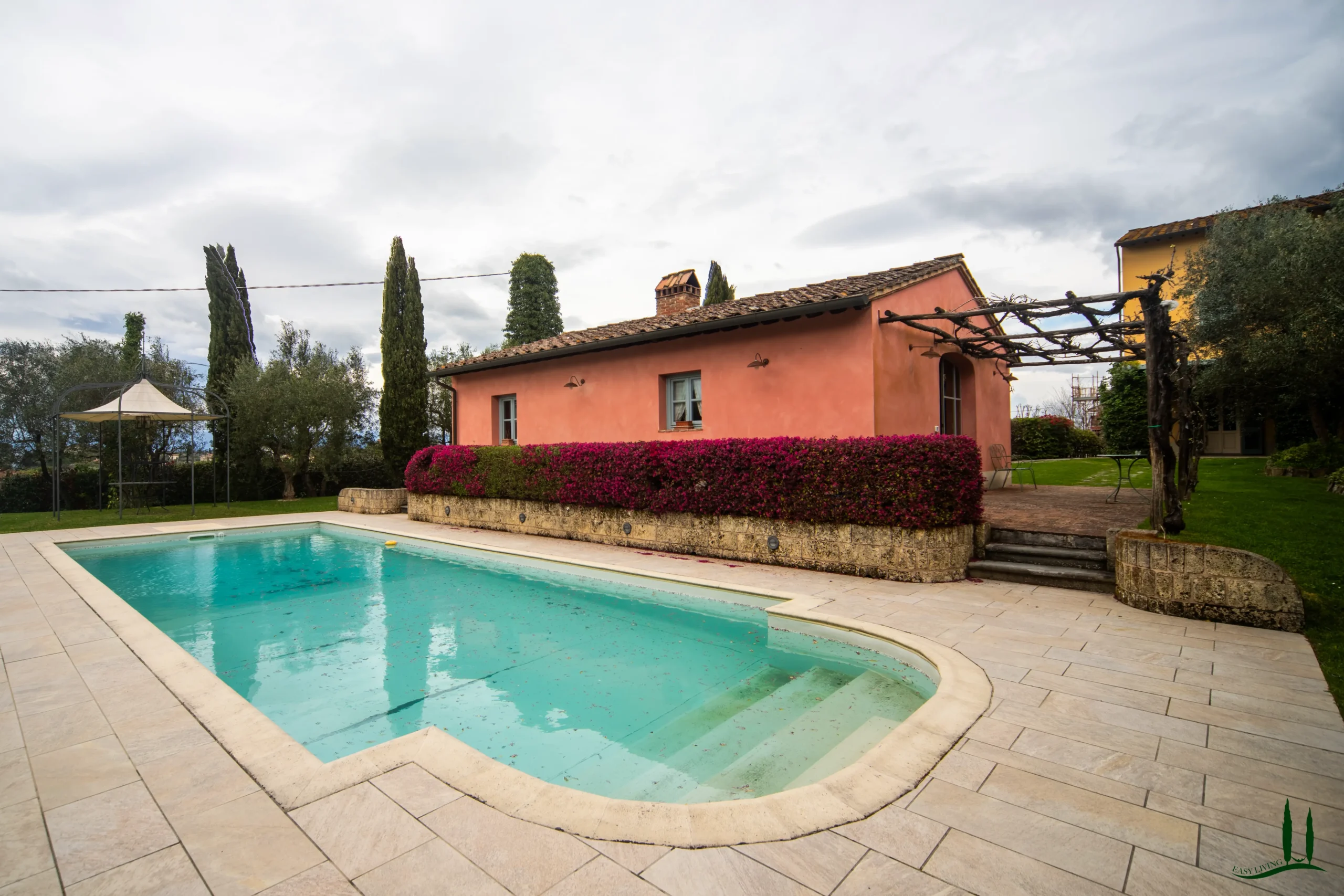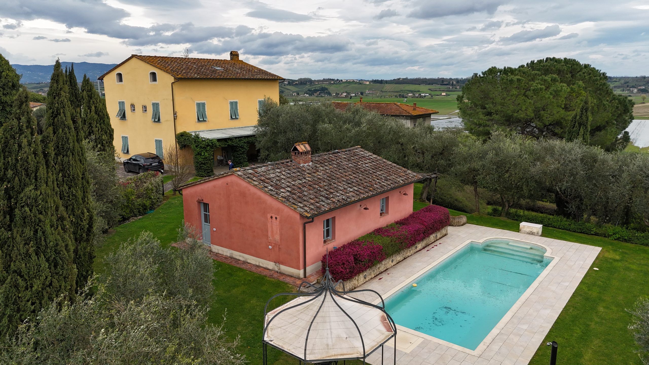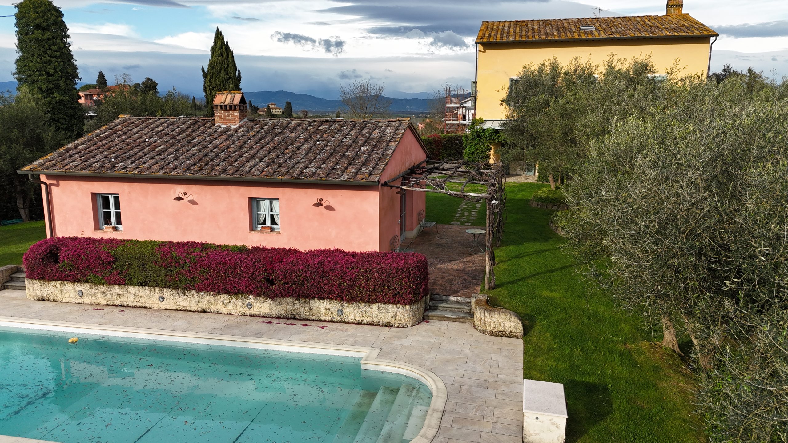 Immersa in una comunità serena ed esclusiva, questa splendida villa offre una rara combinazione di eleganza, comfort e privacy, il tutto in una posizione comoda a soli 30 minuti da Pisa, Firenze e Lucca. Immersa in un lussureggiante giardino di 3.000 mq, la proprietà è ornata da ulivi secolari, siepi curate, fiori vivaci e prati perfettamente curati, che creano un ambiente idilliaco di tranquillità e bellezza naturale.