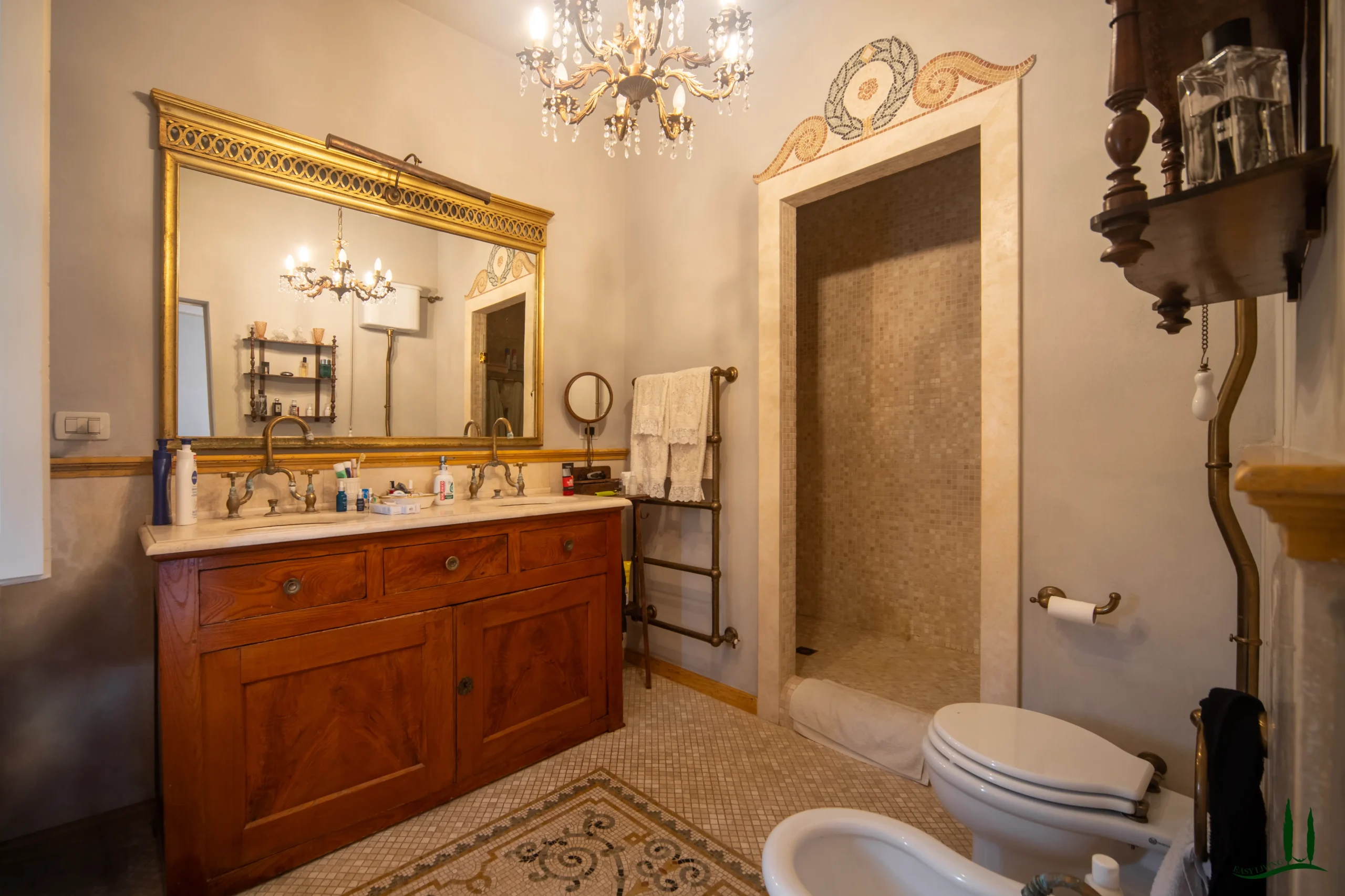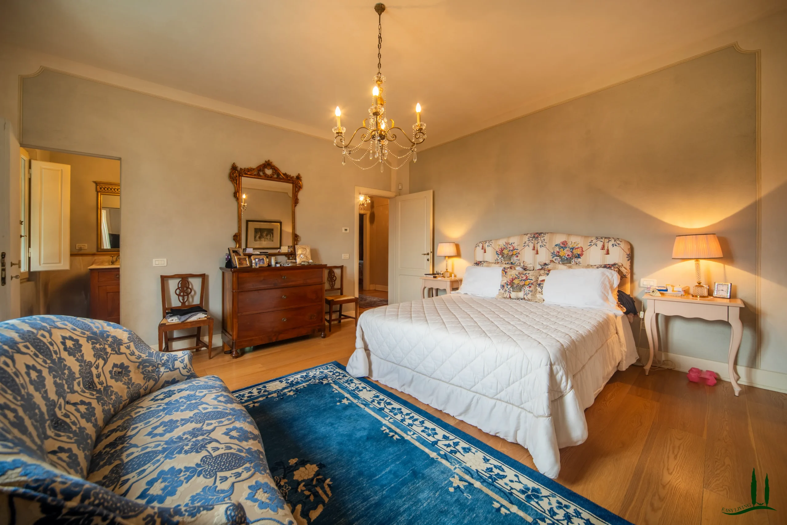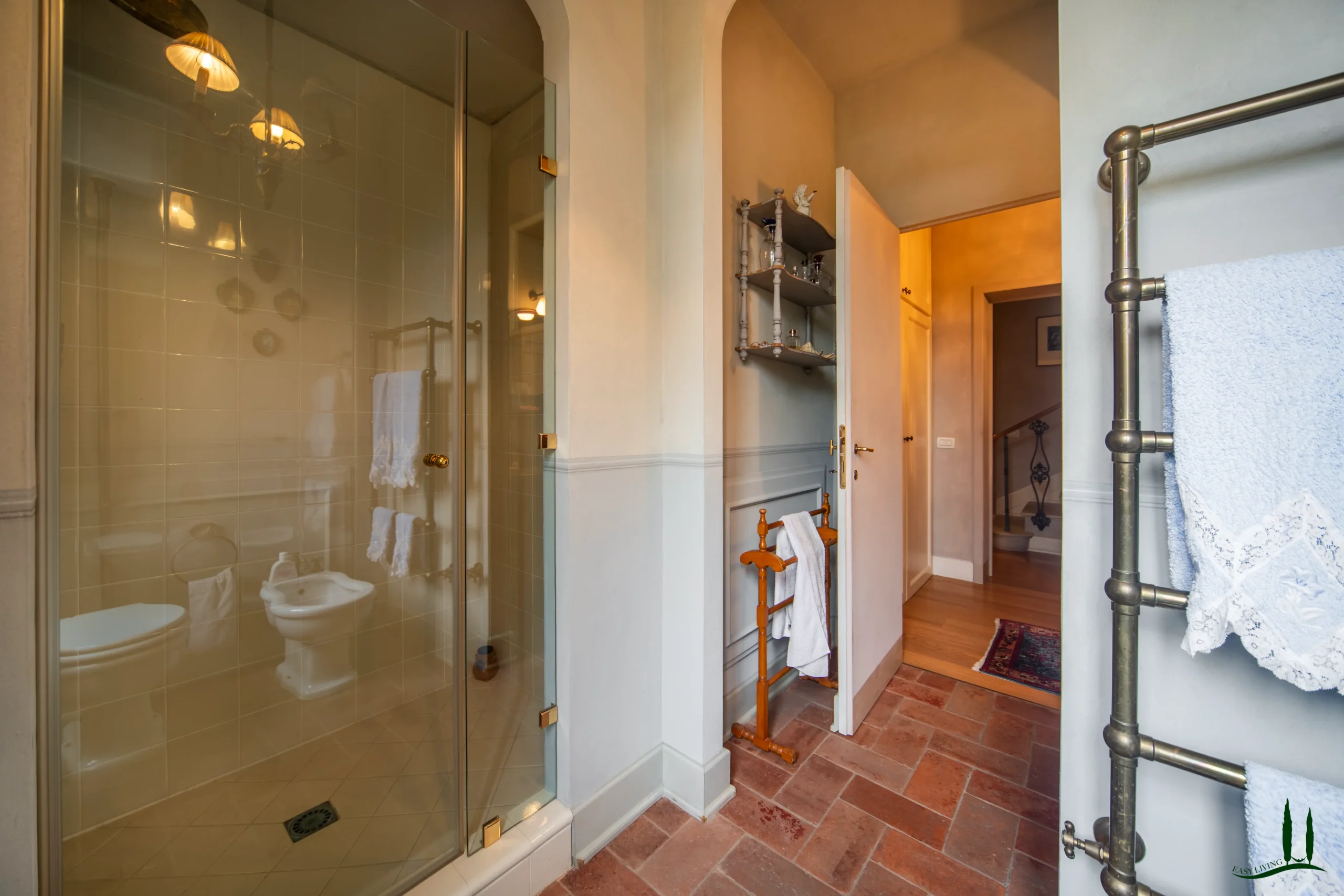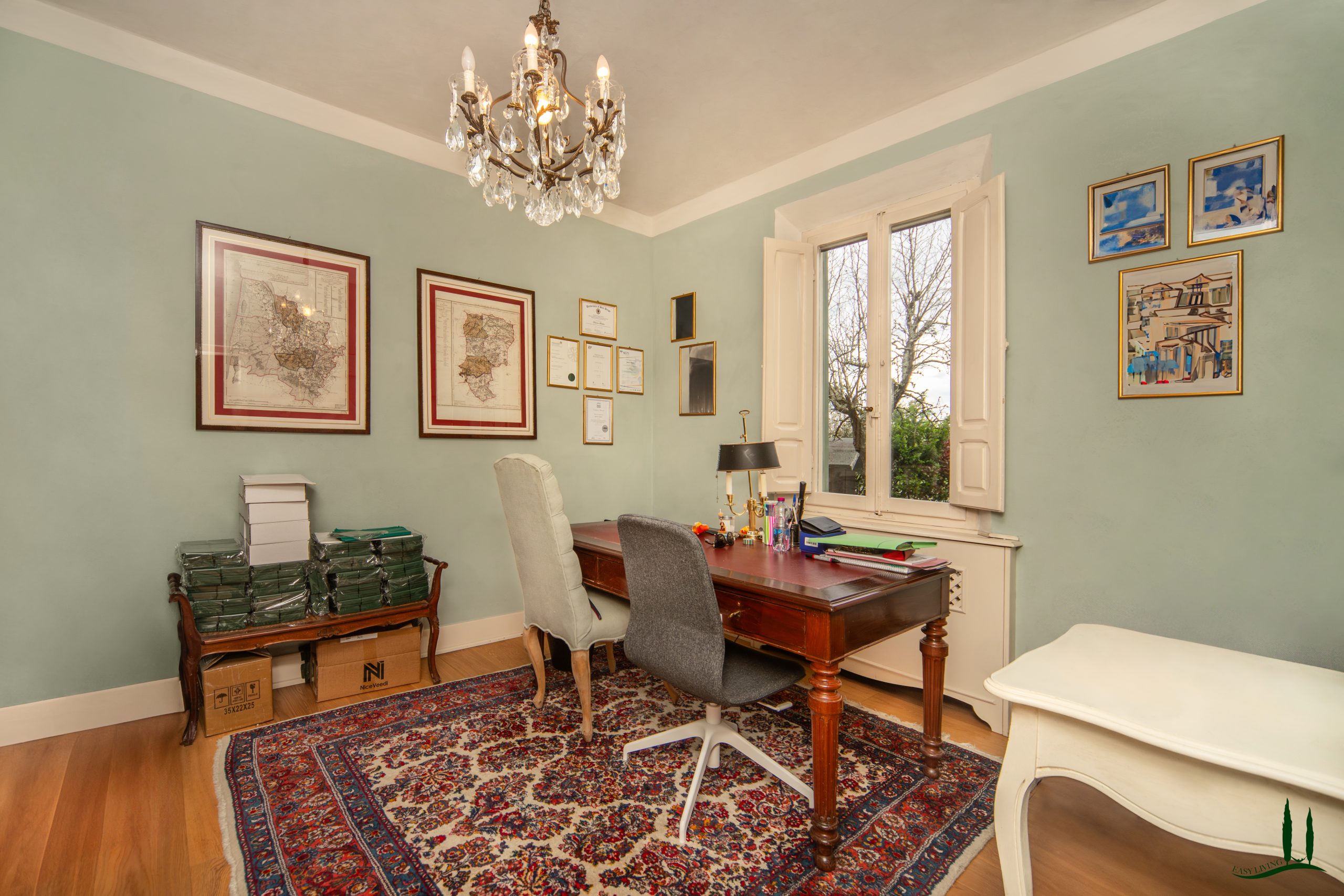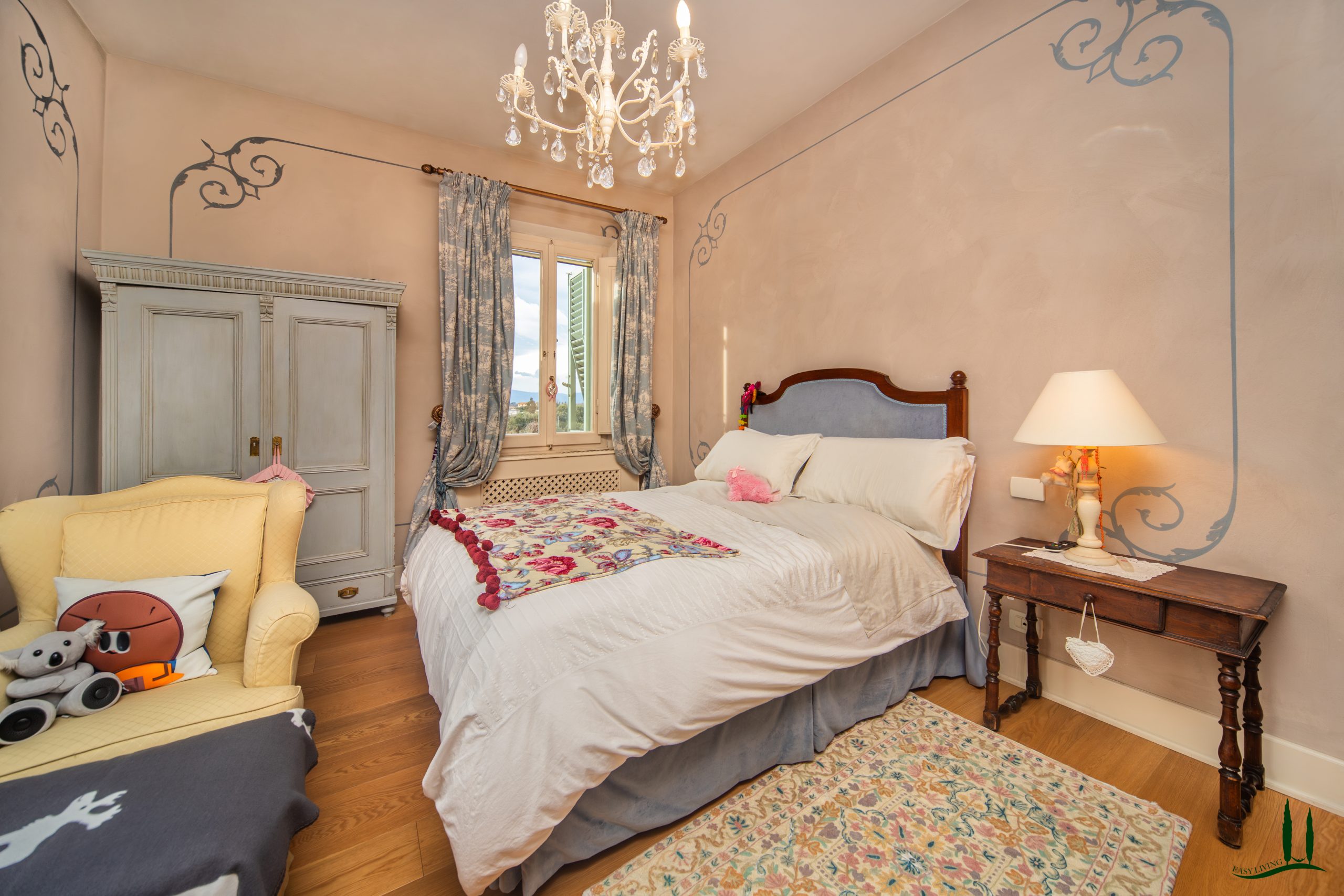 La villa si estende su un'impressionante superficie di 360 mq su tre livelli, con un design che mescola magnificamente eleganza Jugendstil e tocchi tradizionali toscani. Ogni dettaglio della casa è stato curato con attenzione dagli attuali proprietari, assicurando un interno unico e raffinato che è allo stesso tempo sofisticato e accogliente.