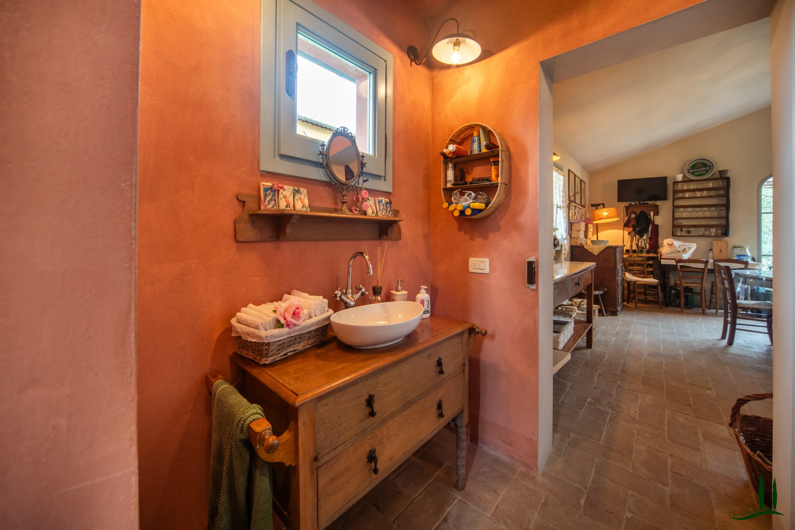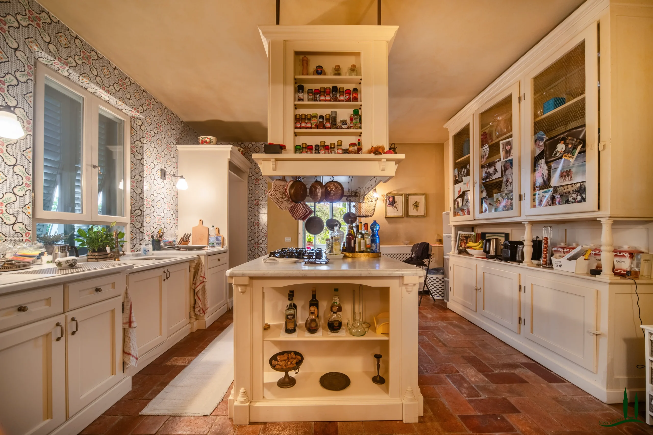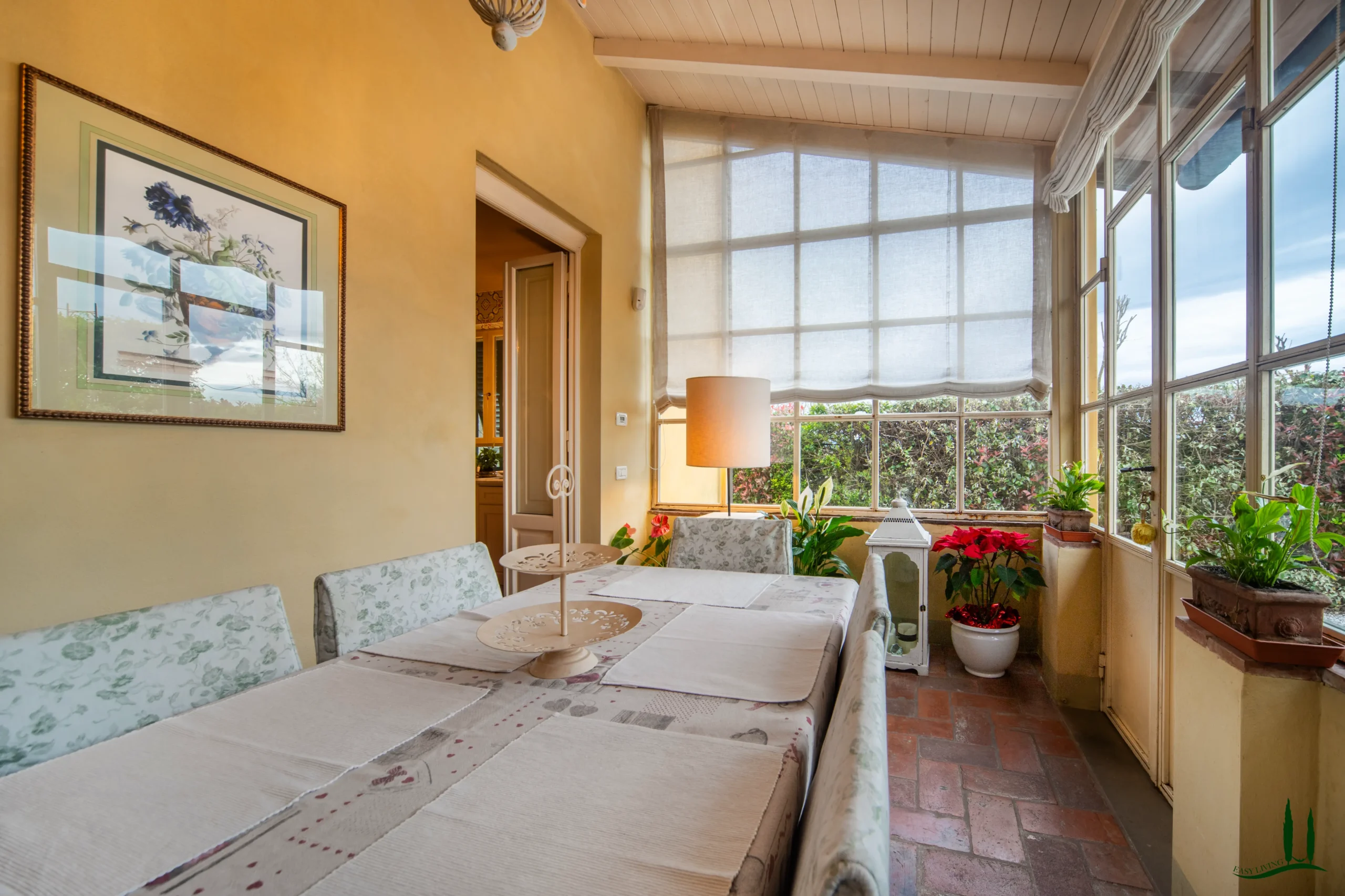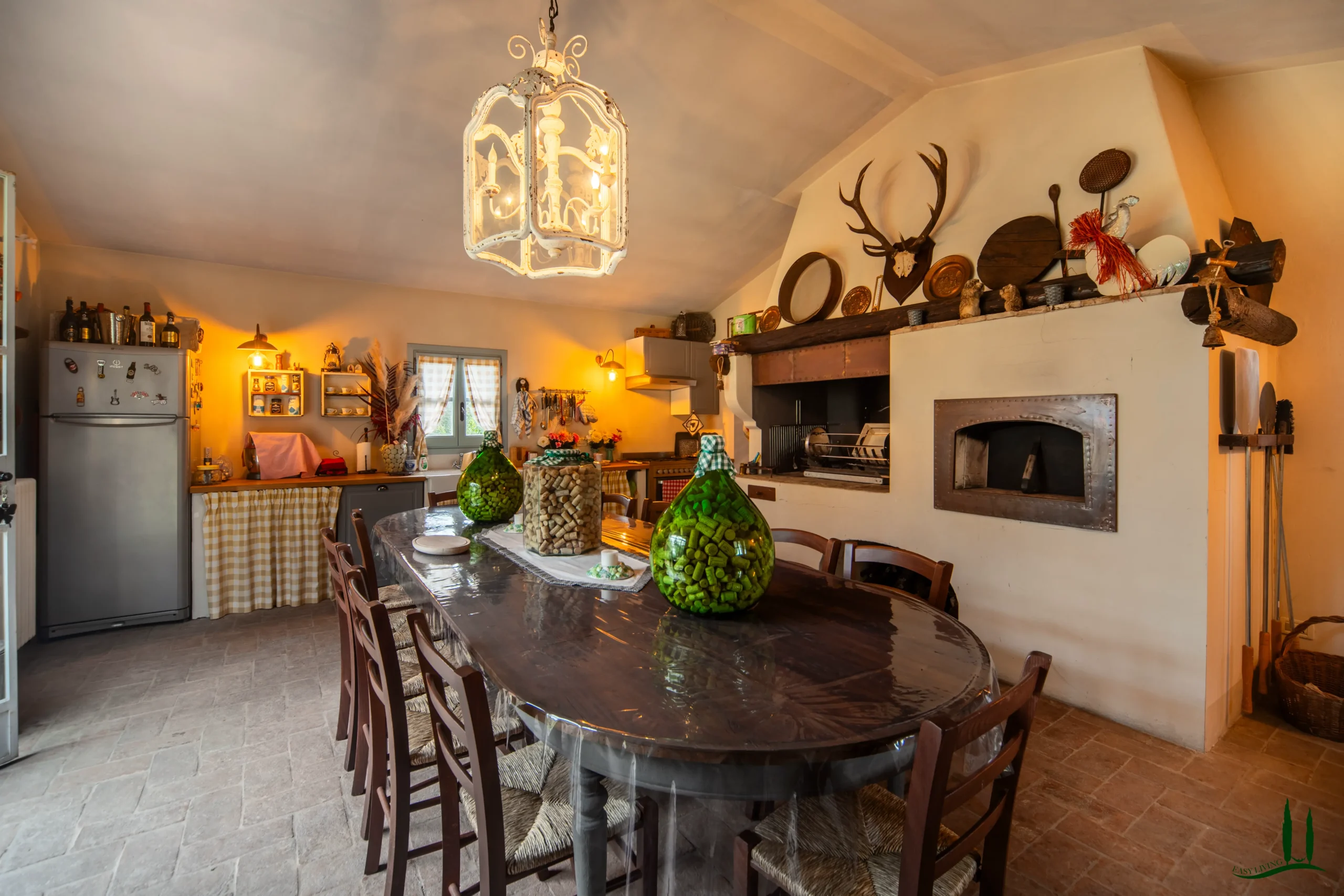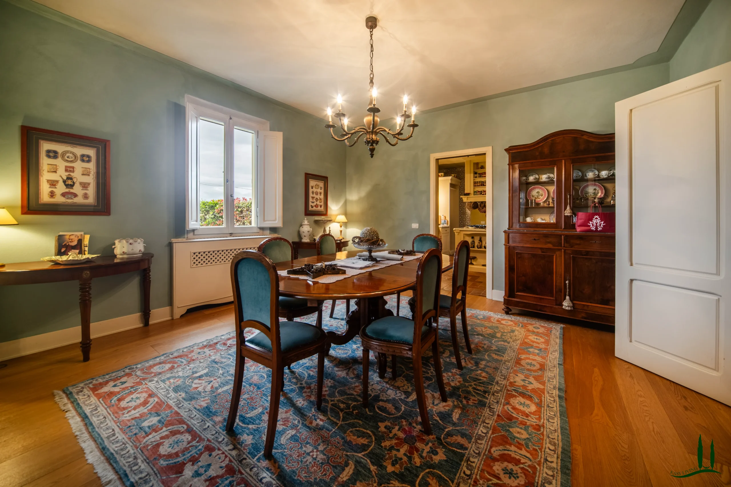 Entrando al piano terra, si viene accolti da un ampio soggiorno con un accogliente camino, perfetto per le riunioni di famiglia o per intrattenere gli ospiti. Adiacente si trova una spaziosa sala da pranzo, ideale per ospitare cene, e una grande cucina completamente attrezzata che integra perfettamente materiali classici italiani come marmo, terracotta e legno di provenienza locale per i mobili. La cucina si apre su un incantevole giardino d'inverno, che offre uno spazio invitante per il relax durante tutto l'anno. Inoltre, questo piano comprende un bagno per gli ospiti, un ufficio privato e una lavanderia per una maggiore comodità.