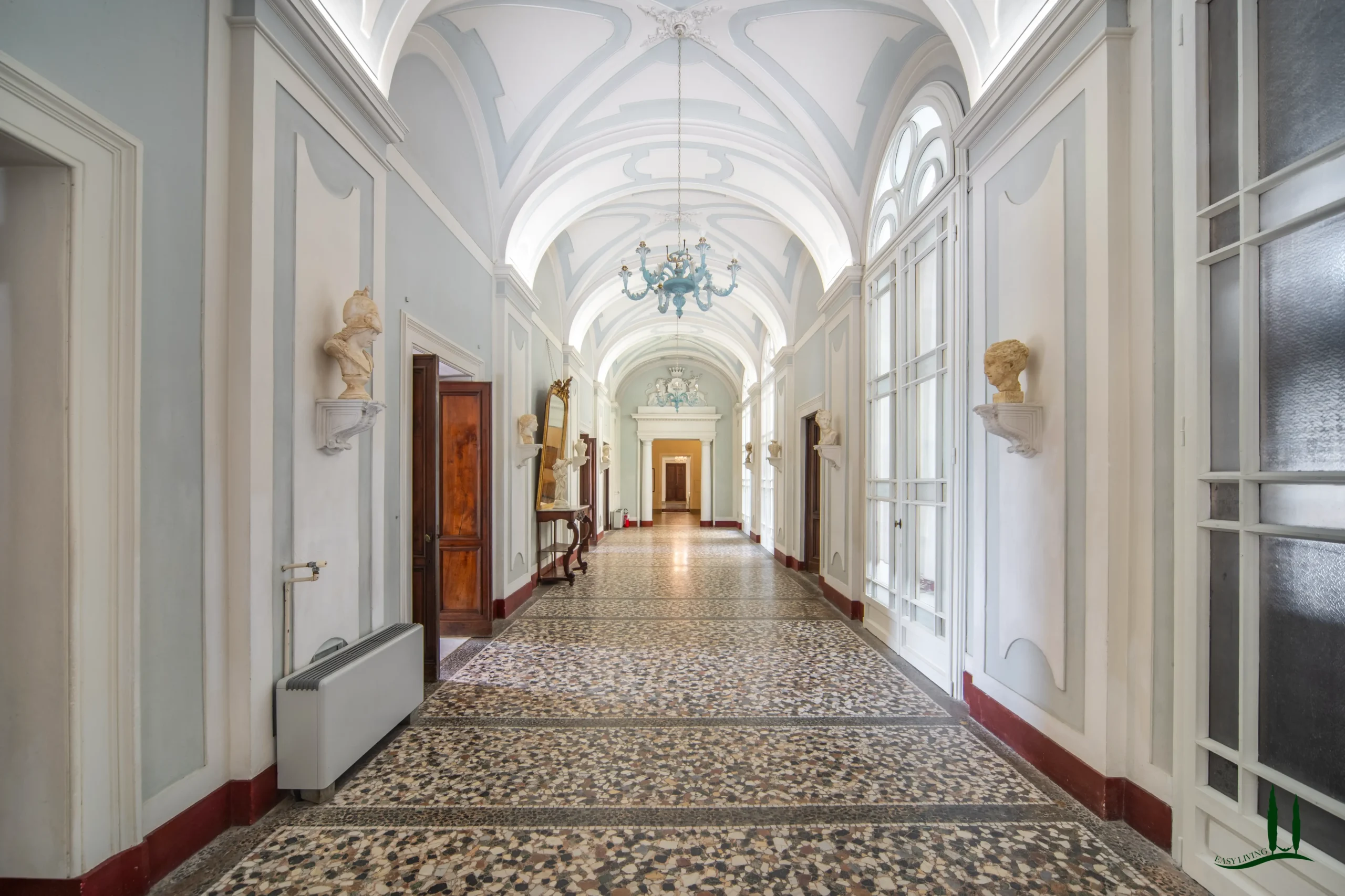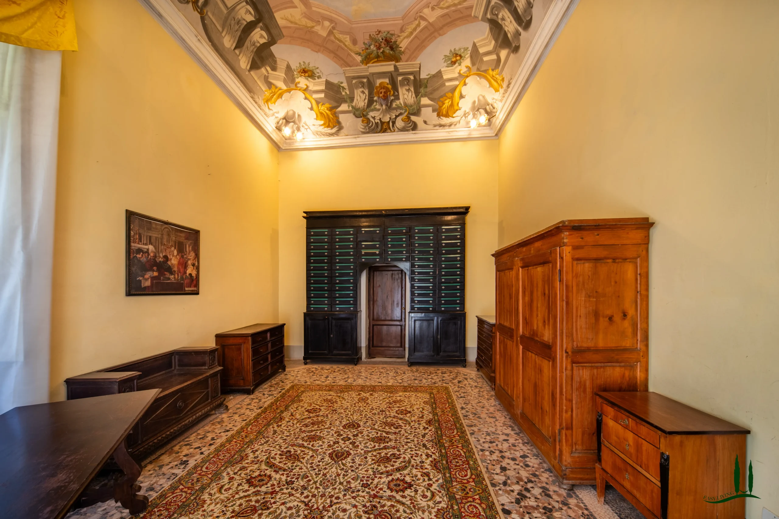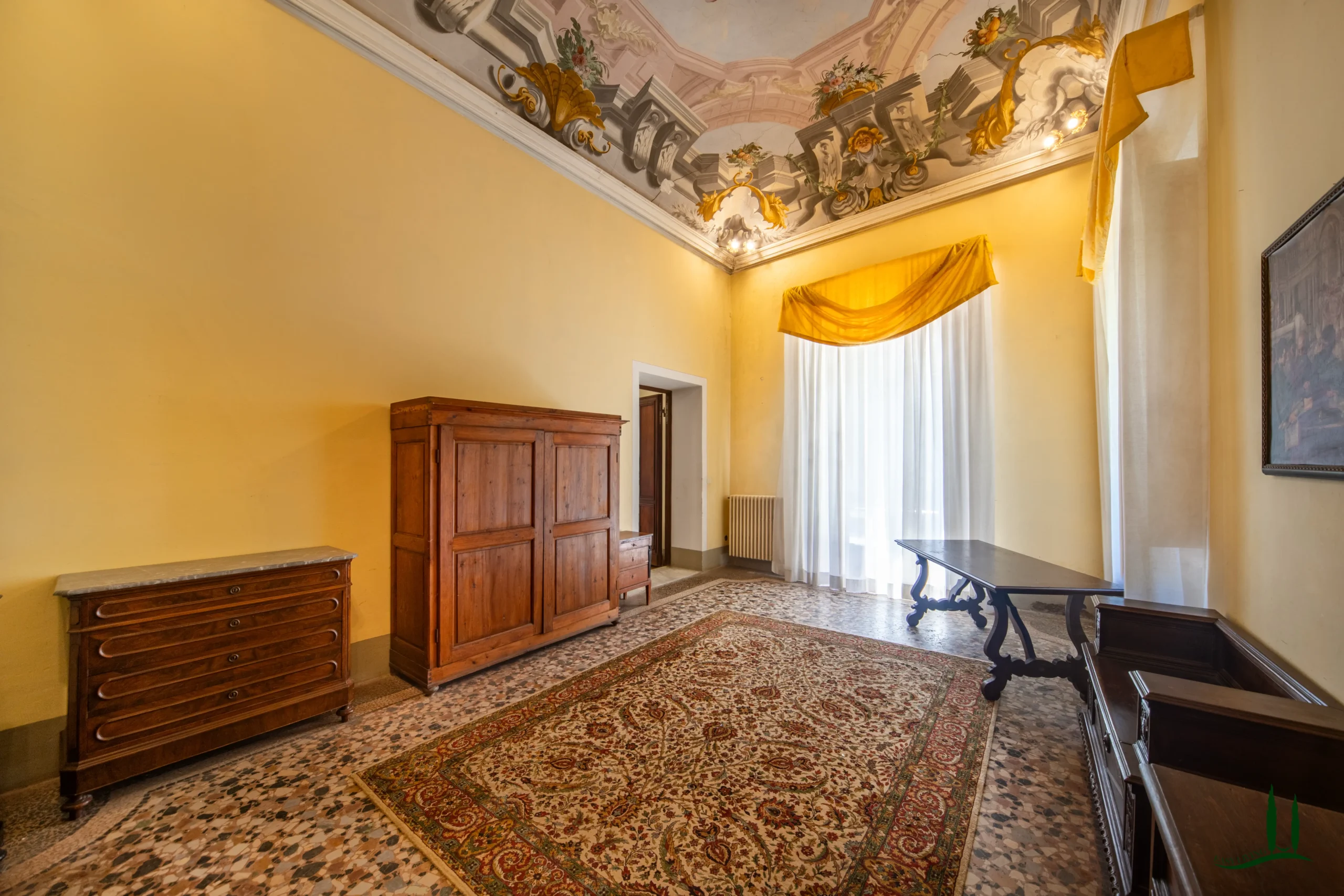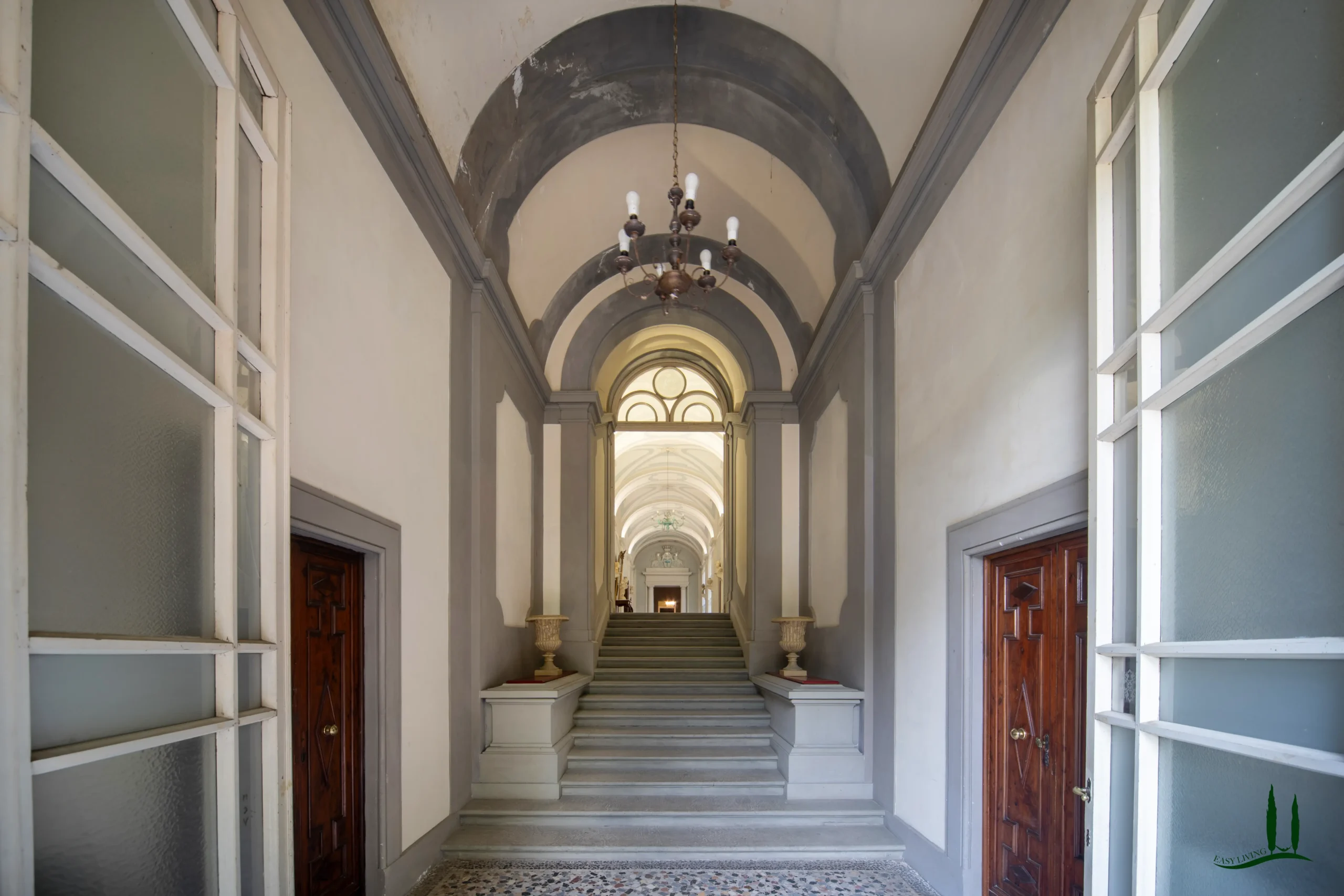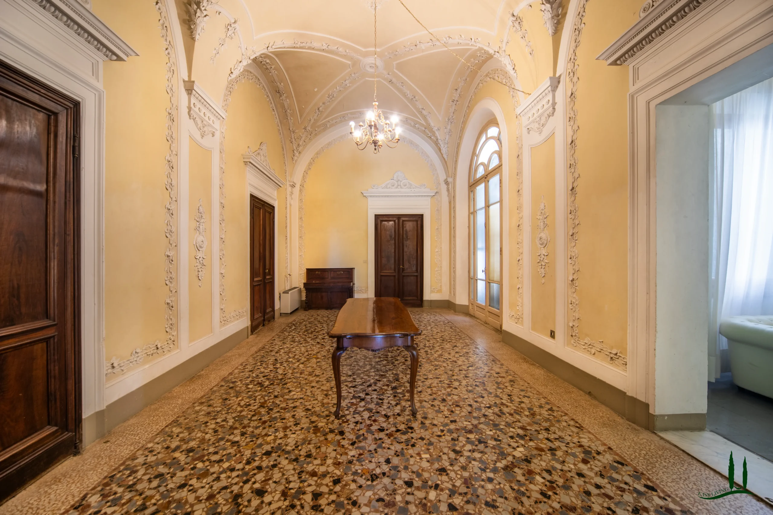 Una spazzata scala in ghisa e pietra conduce alla piano nobile, dove il prossimo proprietario può riprogettare il layout per creare suite di lusso, appartamenti privati o spazi di ospitalità. La flessibilità degli interni offre infinite possibilità: da una residenza privata di famiglia a una hotel boutique, rifugio culturale o sede di eventi esclusivi.