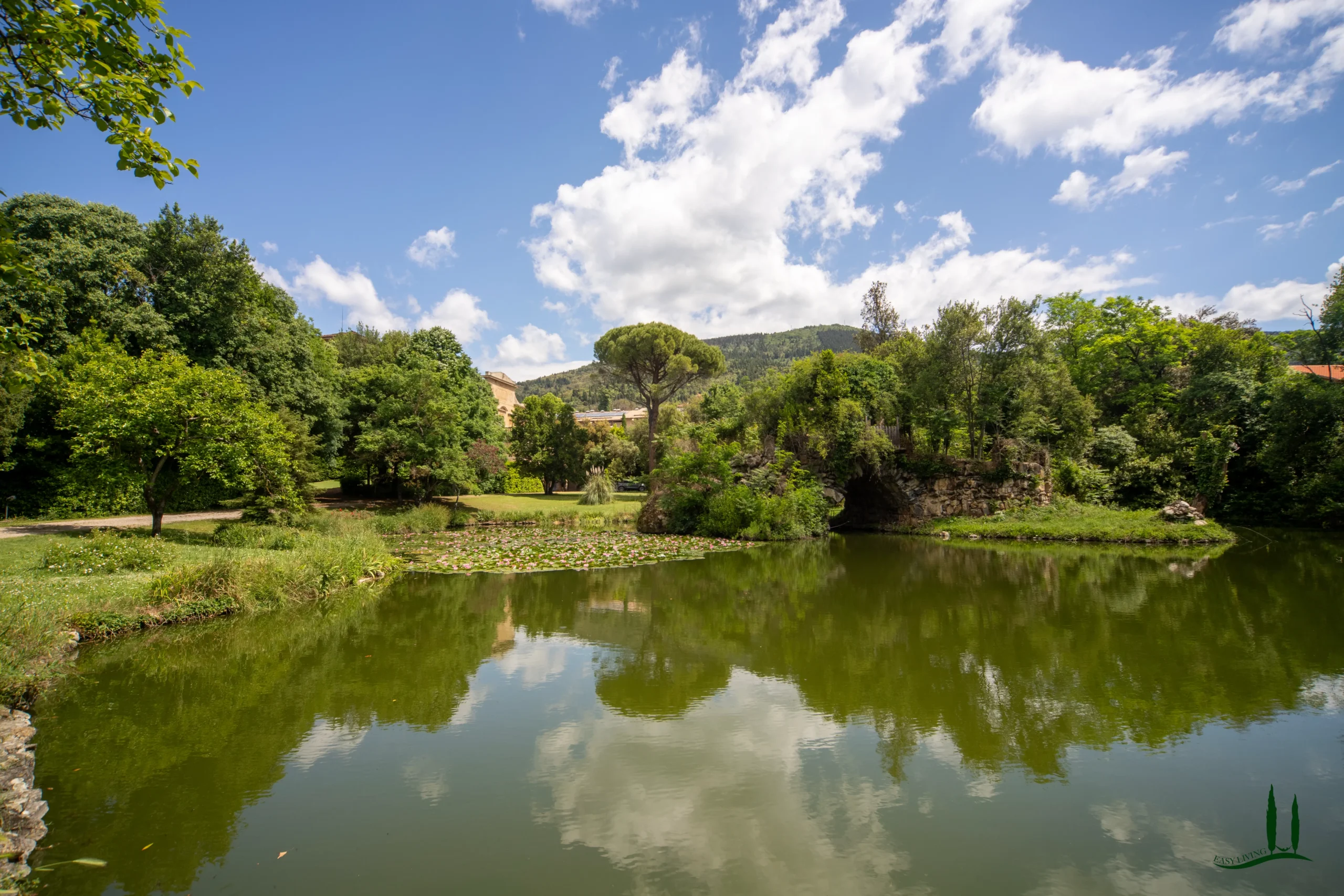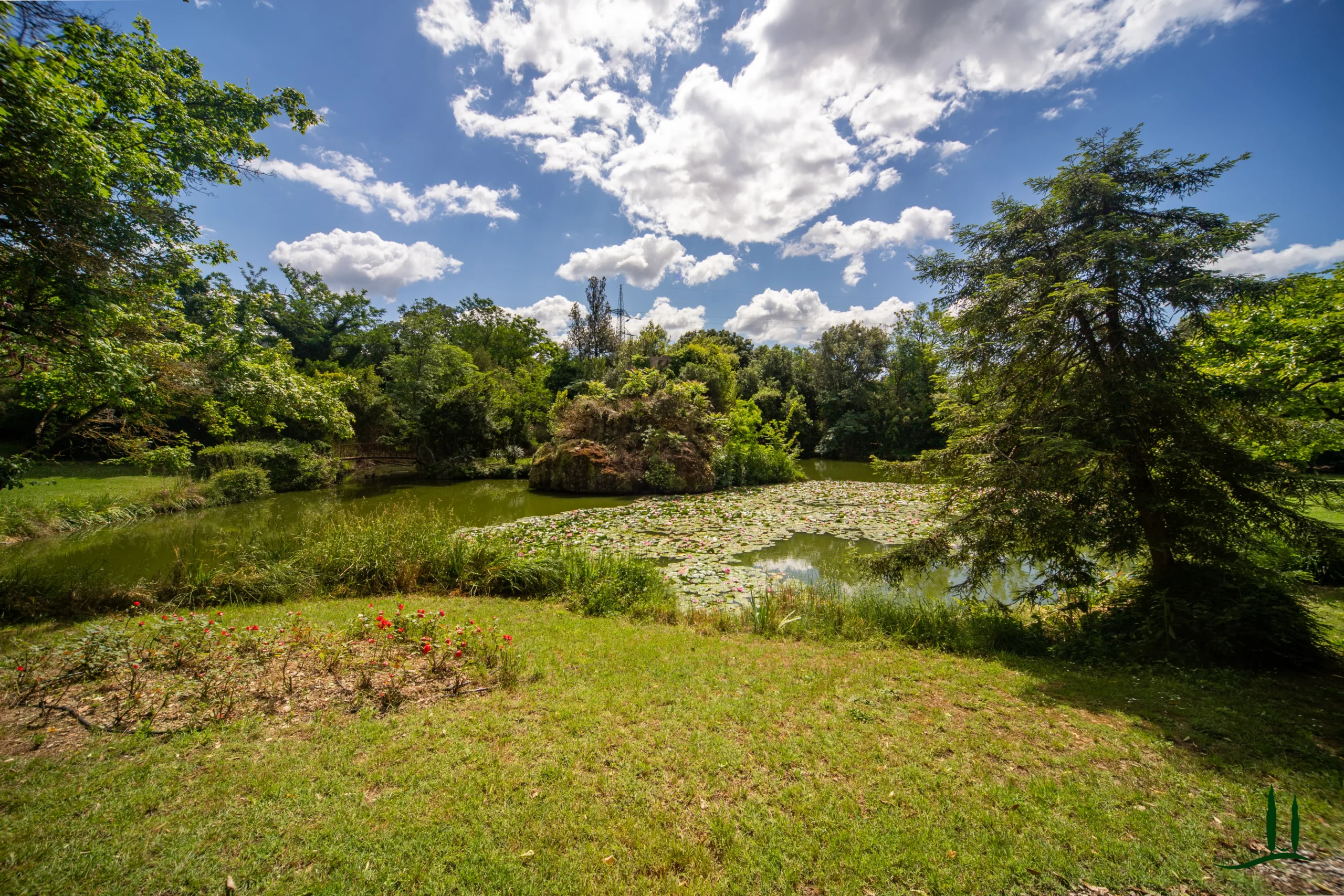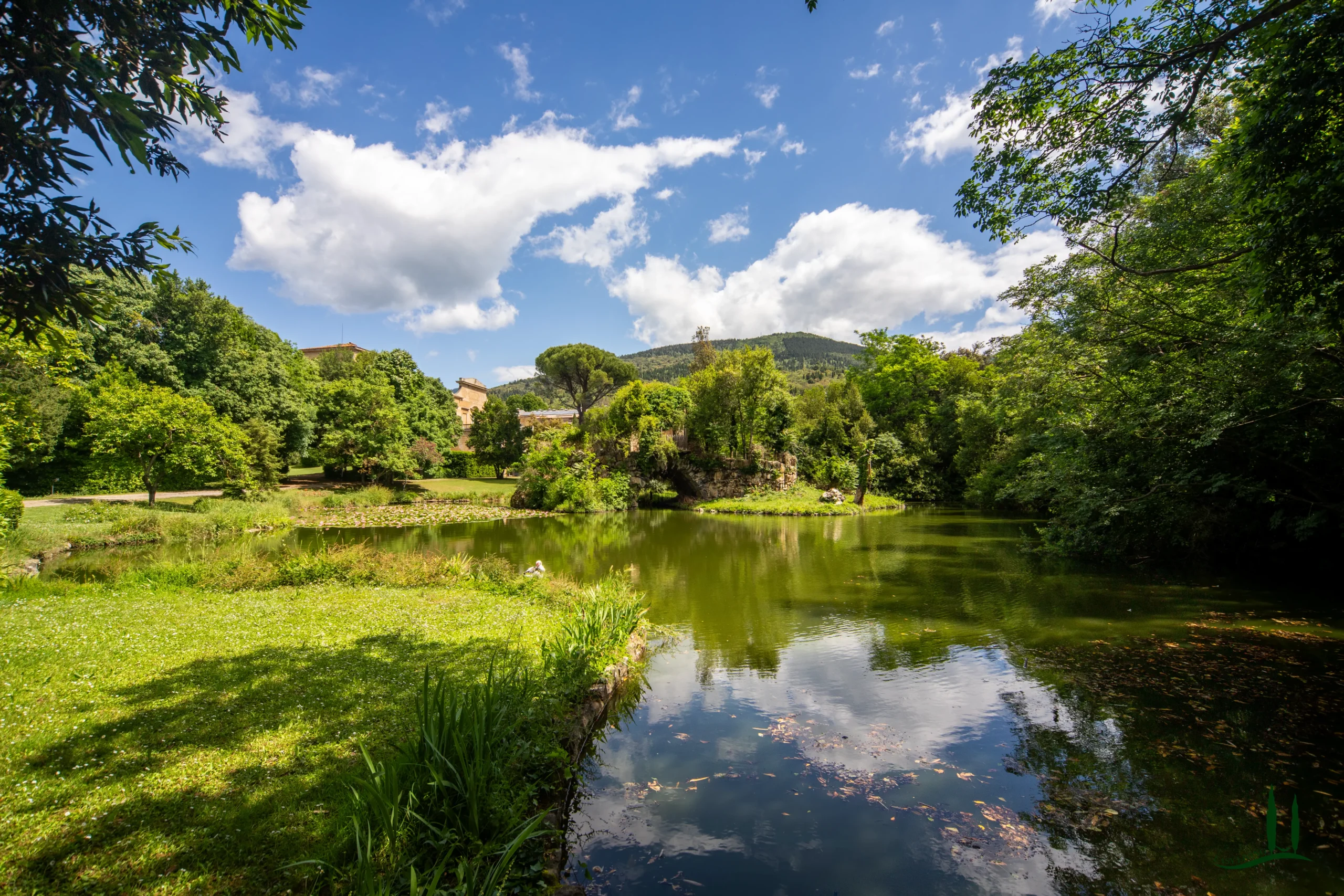 L'ambiente circostante parco paesaggistico incarna l'ideale romantico del XIX secolo: sentieri serpeggianti, punti di vista nascosti e alberi scultorei che incorniciano panorami mozzafiato. Una tranquilla lago con due piccole isole riflette la facciata della villa, mentre specie antiche come il tasso secolare e un maestoso cedro del Nepal conferiscono un senso di permanenza e grazia.