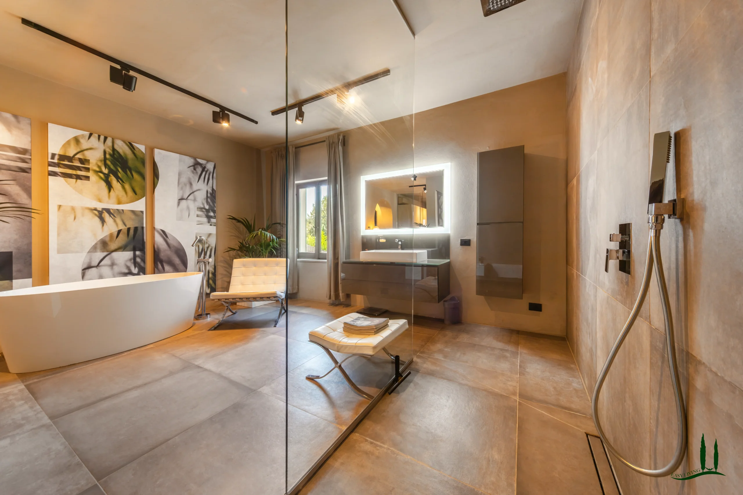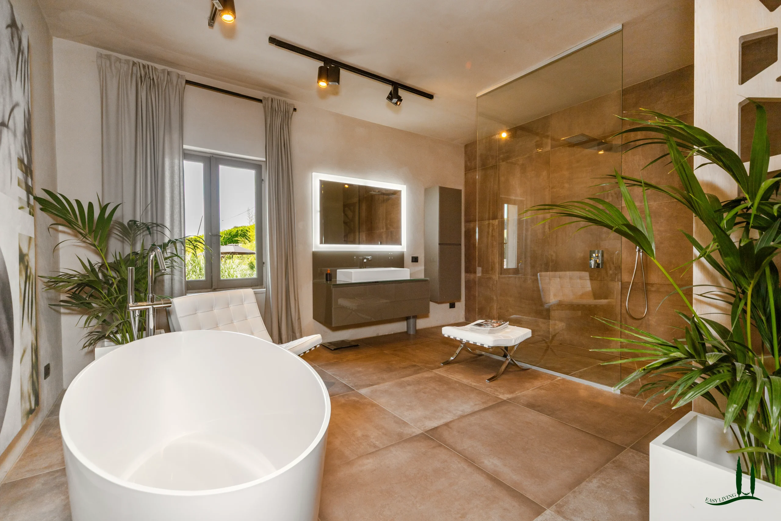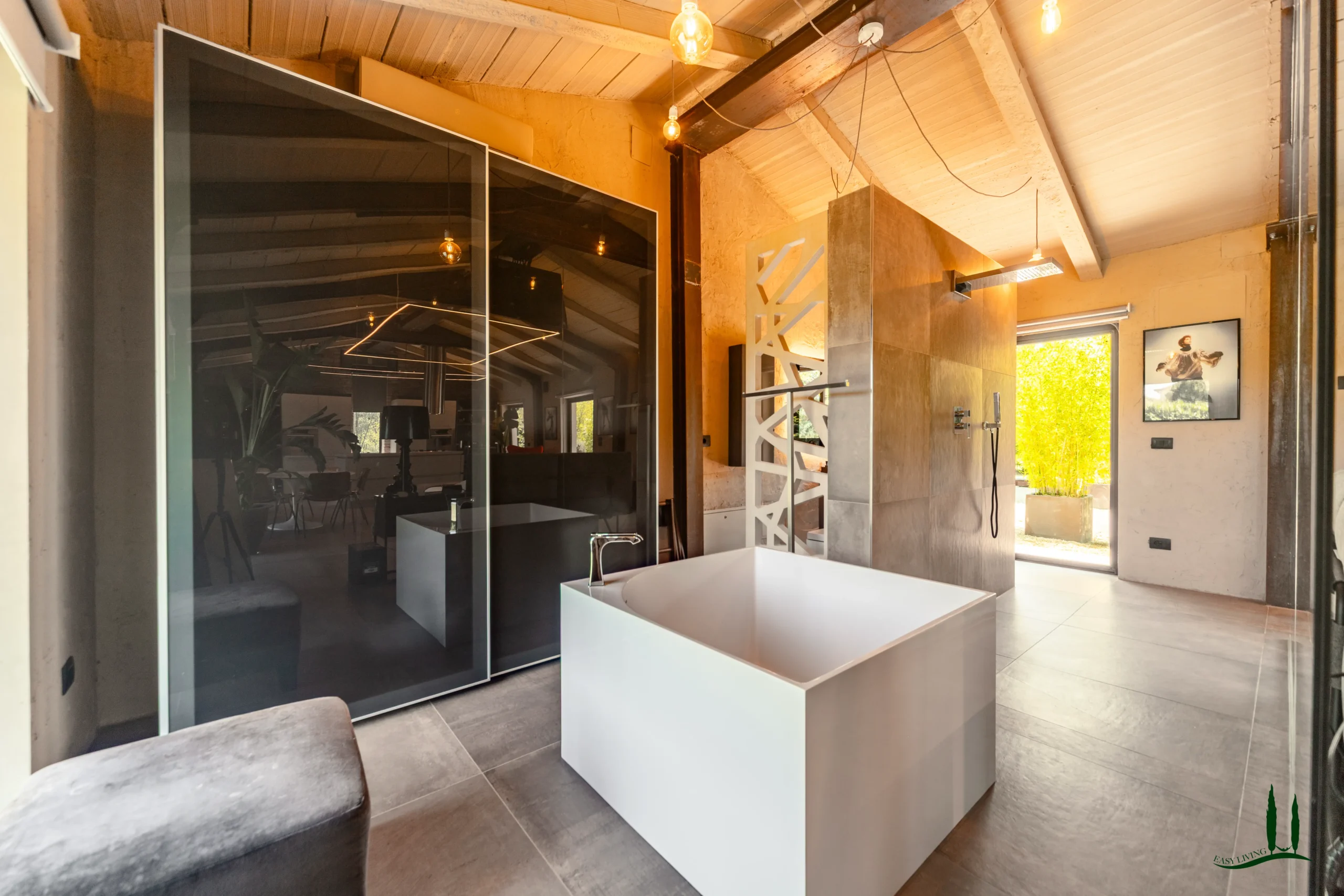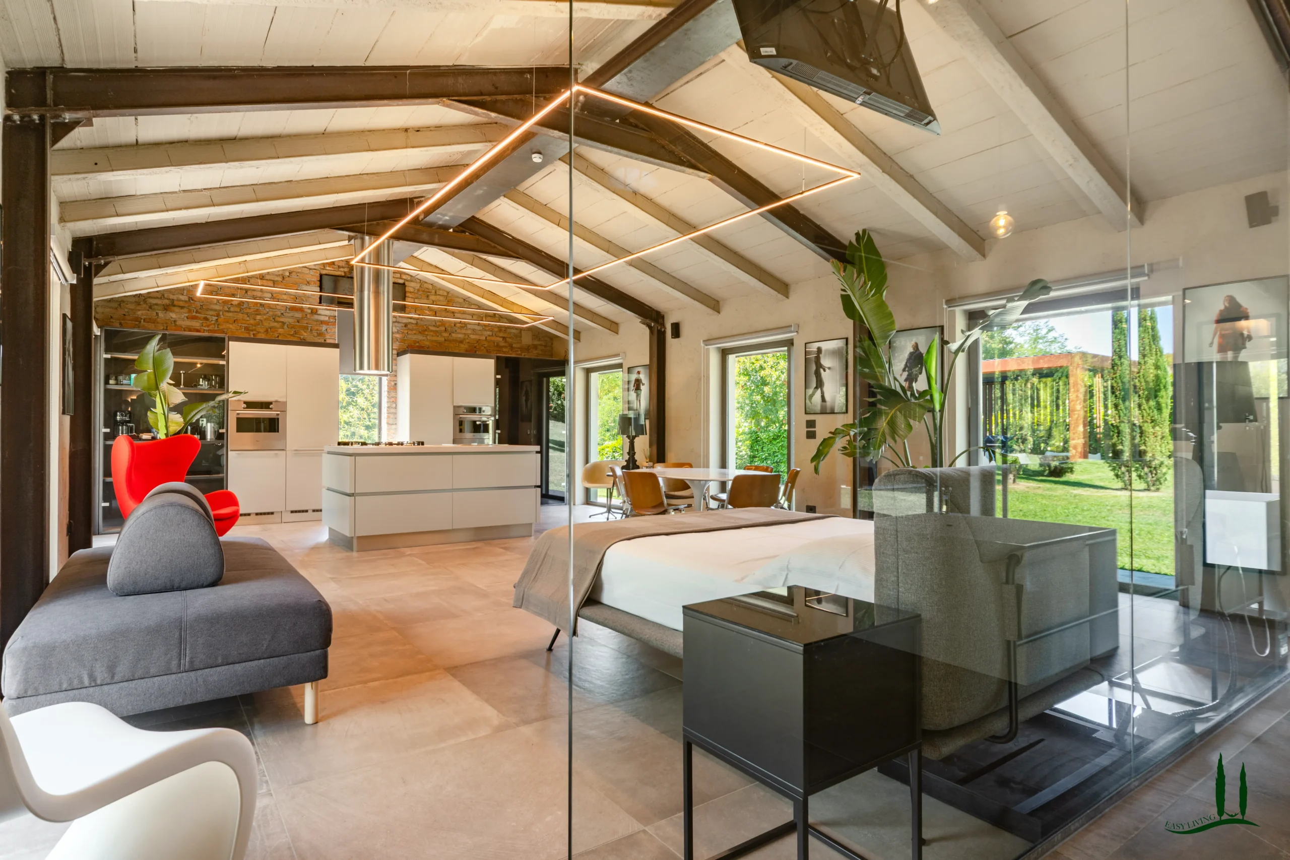 progettato con una meticolosa attenzione ai dettagli e ai materiali più pregiati. Due ingressi separati garantiscono la privacy sia dei proprietari che degli ospiti, rendendola una residenza ideale o un investimento per affitti di alto livello.