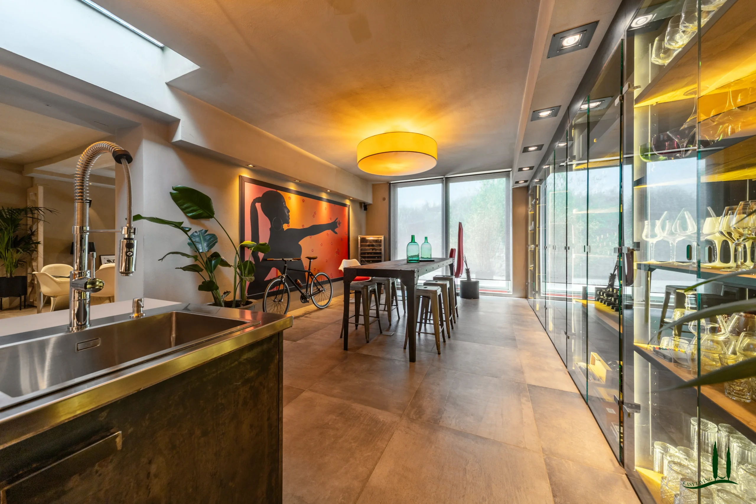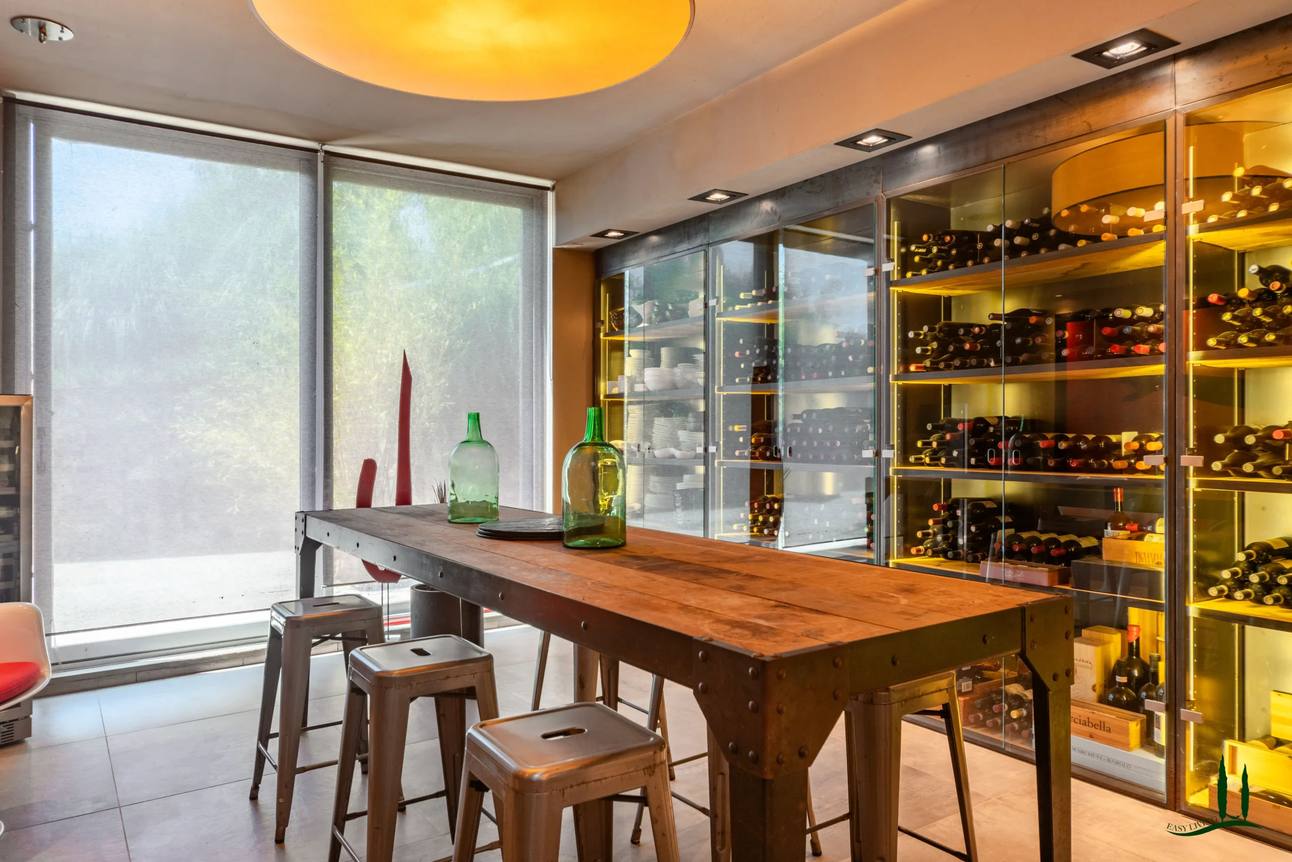 suggestiva cantina in vetro su misura (capienza: 2.000 bottiglie), perfetta per